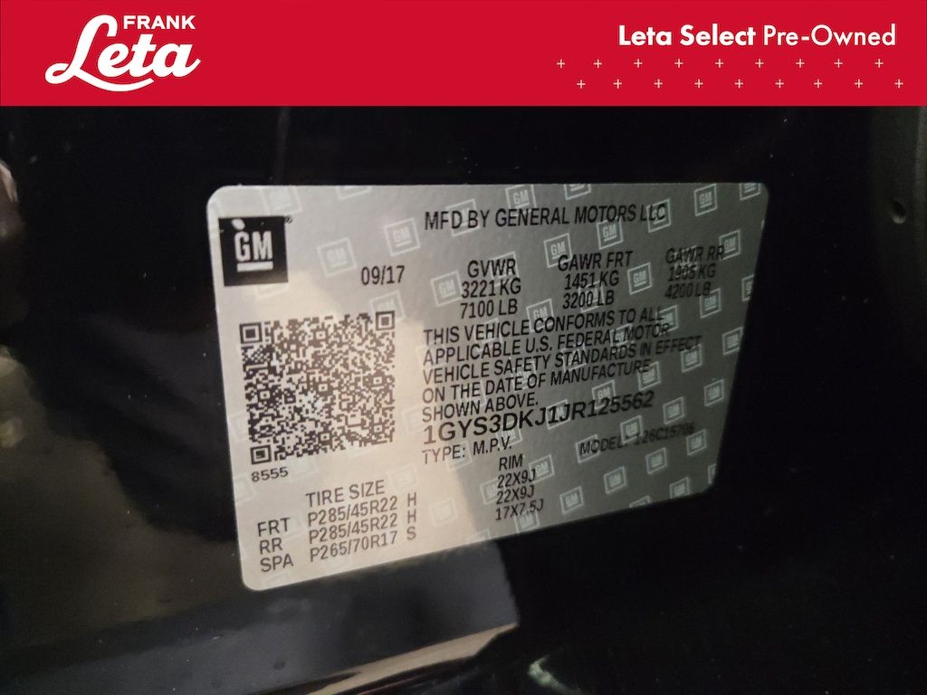 - VIN : 1GYS3DKJ1JR125562