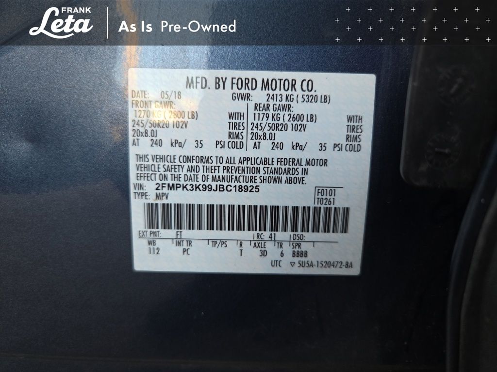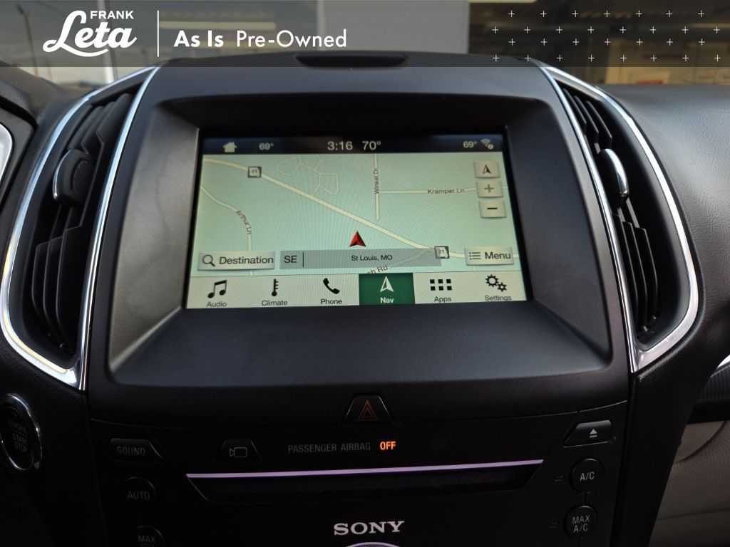 2018 Ford Edge Titanium Blue Metallic Edge Titanium, EcoBoost 2.0L I4 GTDi DOHC Turbocharged VCT, Blue Metallic, Ceramic w/Leather-Trimmed Heated Sport Bucket Seats, 12 Speakers, Adaptive Cruise Control & Fwd Collision Warning, Apple CarPlay/Android Auto, Auto-Dimming Driver's Sideview Mirror, Auto-dimming Rear-View mirror, BLIS Blind Spot Information System, Exterior Parking Camera Rear, Front dual zone A/C, Fully automatic headlights, Garage door transmitter, Heated front seats, Heated Rear-Seats, Heated Steering Wheel, Memory seat, Panoramic Vista Roof, Power Liftgate, Rear Parking Sensors, Remote Start System, SiriusXM Traffic & Travel Link, Voice-Activated Touchscreen Navigation System, Wheels: 20" Bright Machined Aluminum, 110V/150W AC Power Outlet, 2nd Row Outboard Inflatable Safety Belts, 3.36 Axle Ratio, 4-Wheel Disc Brakes, ABS brakes, Adaptive Steering, Air Conditioning, AM/FM radio: SiriusXM, AM/FM Stereo w/Single CD Player, Automatic temperature control, Brake assist, Bumpers: body-color, CD player, Cold Weather Package, Compass, Delay-off headlights, Driver door bin, Driver vanity mirror, Dual front impact airbags, Dual front side impact airbags, Electronic Stability Control, Emergency communication system: SYNC 3 911 Assist, Enhanced Active Park Assist, Equipment Group 302A, Four wheel independent suspension, Front & Rear Floor Liners, Front 180 Degree Camera, Front anti-roll bar, Front Bucket Seats, Front Center Armrest w/Storage, Front reading lights, Heated door mirrors, HID Projector-Style Headlamps w/Auto High Beams, Illuminated entry, Knee airbag, Lane-Keeping System, Leather Shift Knob, Leather Trimmed Heated/Cooled Bucket Seats, Leather-Trimmed Heated Sport Bucket Seats, Low tire pressure warning, Occupant sensing airbag, Outside temperature display, Overhead airbag, Overhead console, Panic alarm, Passenger door bin, Passenger vanity mirror, Power door mirrors, Power driver seat, Power passenger seat, Power steering, Power Tilt/Telescoping Steering Column w/Memory, Power windows, Premium audio system: Sony, Rain-Sensing Wipers, Rear anti-roll bar, Rear reading lights, Rear seat center armrest, Rear window defroster, Rear window wiper, Remote keyless entry, Security system, SiriusXM Radio, Speed control, Speed-Sensitive Wipers, Split folding rear seat, Spoiler, Steering wheel mounted audio controls, SYNC 3 Communications & Entertainment System, Tachometer, Telescoping steering wheel, Tilt steering wheel, Traction control, Trip computer, Turn signal indicator mirrors, Variably intermittent wipers, Windshield Wiper De-Icer, Edge Titanium, EcoBoost 2.0L I4 GTDi DOHC Turbocharged VCT, Blue Metallic, Ceramic w/Leather-Trimmed Heated Sport Bucket Seats, 12 Speakers, Adaptive Cruise Control & Fwd Collision Warning, Apple CarPlay/Android Auto, Auto-Dimming Driver's Sideview Mirror, Auto-dimming Rear-View mirror, BLIS Blind Spot Information System, Exterior Parking Camera Rear, Front dual zone A/C, Fully automatic headlights, Garage door transmitter, Heated front seats, Heated Rear-Seats, Heated Steering Wheel, Memory seat, Panoramic Vista Roof, Power Liftgate, Rear Parking Sensors, Remote Start System, SiriusXM Traffic & Travel Link, Voice-Activated Touchscreen Navigation System, Wheels: 20" Bright Machined Aluminum. EcoBoost 2.0L I4 GTDi DOHC Turbocharged VCT 6-Speed Automatic FWD 4D Sport Utility Odometer is 22976 miles below market average! 20/29 City/Highway MPG Awards: