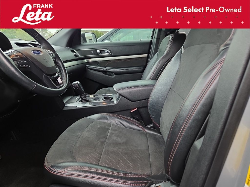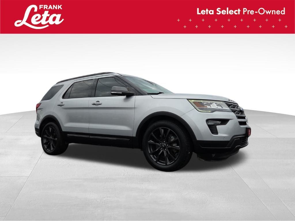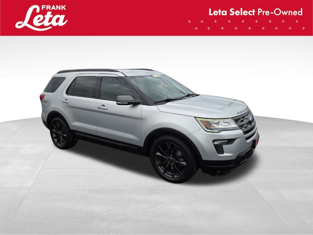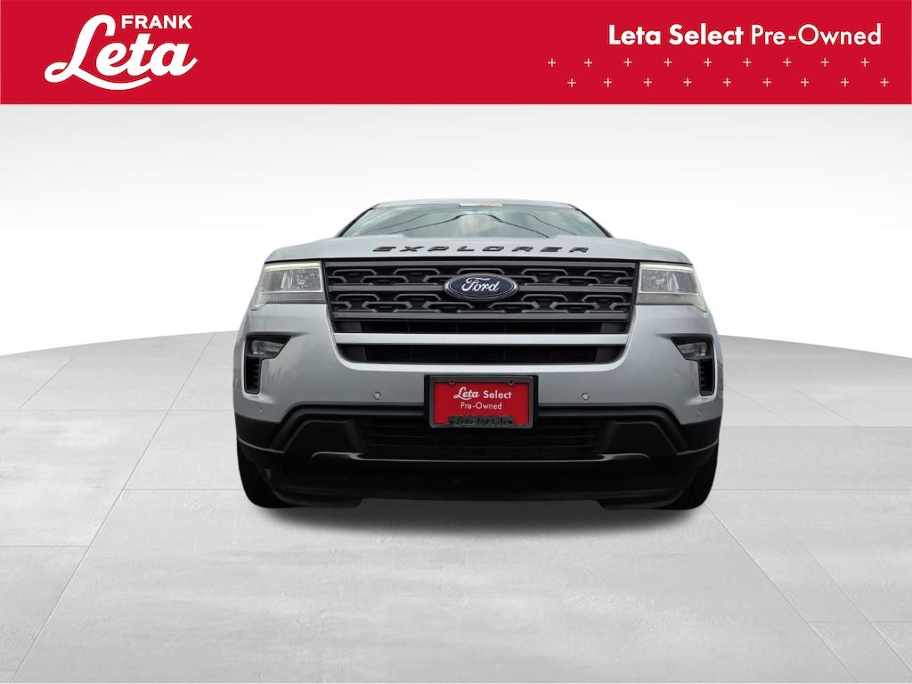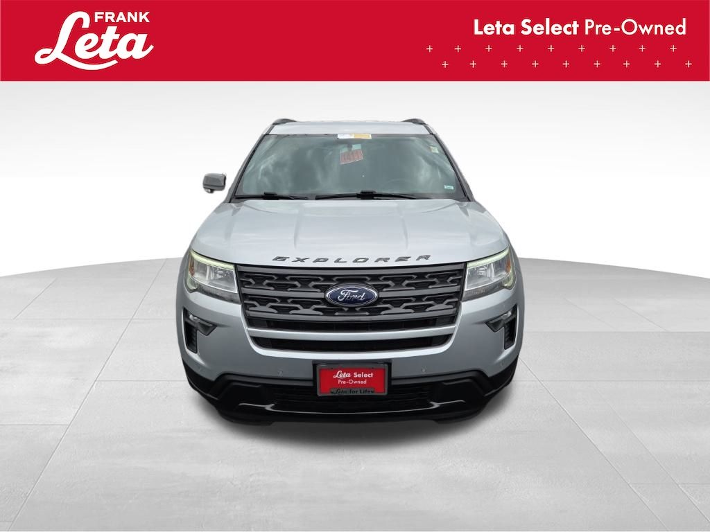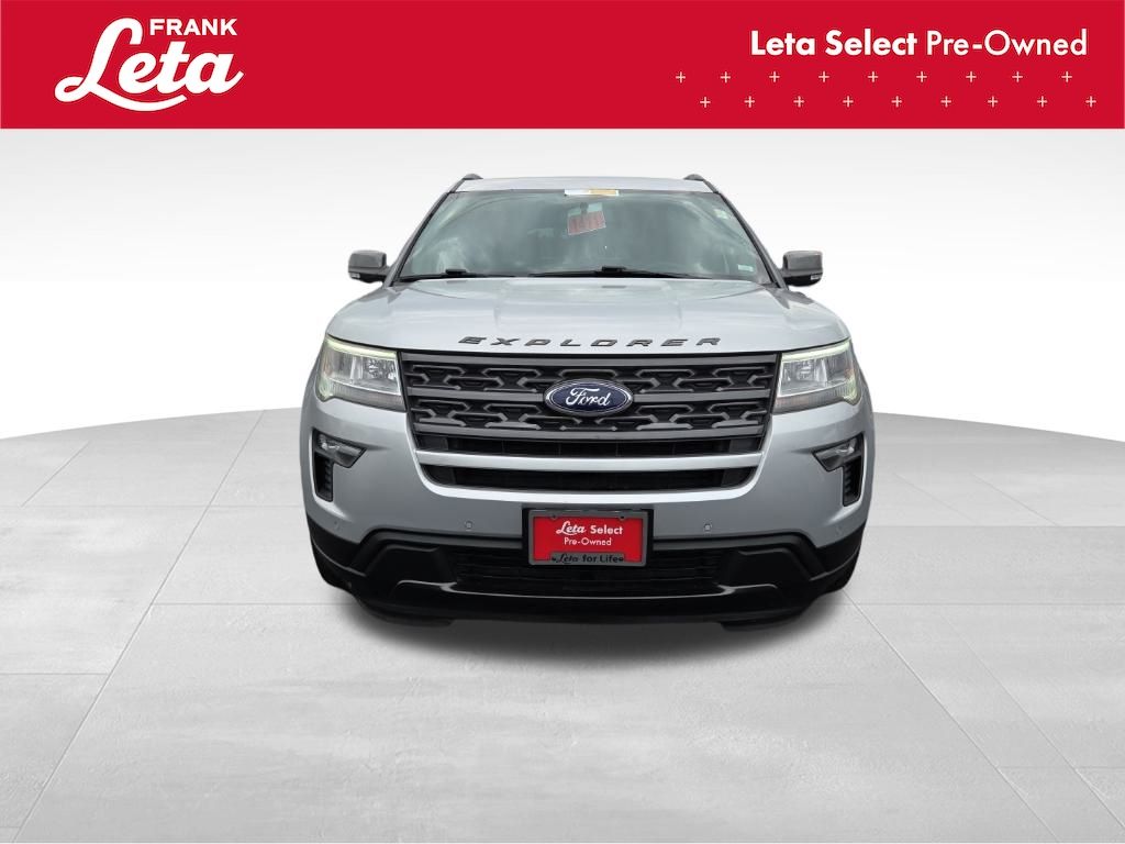 2018 Ford Explorer XLT Ingot Silver Explorer XLT, Frank Leta Select Certified, 3.5L 6-Cylinder SMPI DOHC, Ingot Silver, Ebony Black w/Fire Orange Stitiching w/Leather-Trimmed Bucket Seats, 3rd row seats: split-bench, Auto-Dimming Rear-View Mirror, Comfort Package, Driver Connect Package, Dual-Zone Electronic Automatic Temperature Ctrl, Equipment Group 202A, Exterior Parking Camera Rear, Forward Sensing System, Fully automatic headlights, Heated Steering Wheel, LED Fog Lamps, Power & Heated Glass Sideview Mirrors, Power Liftgate, Radio: AM/FM Stereo w/7 Speakers, Rear air conditioning, Rear Bumper Step Pad, Rear Parking Sensors, Remote Start System, Universal Garage Door Opener (UGDO), Voice-Activated Touchscreen Navigation System, Wheels: 20" x 8.5" Magnetic Met Painted 10-Spoke, 2 Driver Configurable 4.2" Color LCD Displays, 3.39 Non-Limited-Slip Axle Ratio, 4-Wheel Disc Brakes, 6 Speakers, ABS brakes, Air Conditioning, AM/FM radio: SiriusXM, AM/FM Stereo, Black Roof Rack Side Rails, Brake assist, Bumpers: body-color, Compass, Delay-off headlights, Driver door bin, Driver vanity mirror, Dual front impact airbags, Dual front side impact airbags, Ebony Black Unique Door-Trim Panel Insert, Electronic Stability Control, Emergency communication system: 911 Assist, EXPLORER Badge on Hood, Four wheel independent suspension, Front anti-roll bar, Front Bucket Seats, Front Center Armrest, Front License Plate Bracket, Front reading lights, Heated door mirrors, Illuminated entry, Knee airbag, Leather Heated Bucket Seats, Leather steering wheel, Leather-Trimmed Bucket Seats, Low tire pressure warning, Lower Bodyside Cladding Insert, Lower Door Trim, Lower Front & Rear Bumper Covers, Magnetic Met-Painted Grille Bars w/Mesh Insert, Occupant sensing airbag, Outside temperature display, Overhead airbag, Overhead console, Panic alarm, Passenger door bin, Passenger vanity mirror, Power door mirrors, Power driver seat, Power passenger seat, Power steering, Power windows, Rear anti-roll bar, Rear reading lights, Rear seat center armrest, Rear window defroster, Rear window wiper, Remote keyless entry, Roof rack: rails only, Security system, Sideview Mirror Caps, Single-CD Player, Speed control, Speed-sensing steering, Speed-Sensitive Wipers, Split folding rear seat, Spoiler, Steering wheel mounted audio controls, SYNC Communication & Entertainment System, SYNC Connect, Tachometer, Telescoping steering wheel, Tilt steering wheel, Traction control, Trip computer, Variably intermittent wipers, XLT Appearance Package, XLT Technology Feature Bundle, Explorer XLT, 3.5L 6-Cylinder SMPI DOHC, Ingot Silver, Ebony Black w/Fire Orange Stitiching w/Leather-Trimmed Bucket Seats, 3rd row seats: split-bench, Auto-Dimming Rear-View Mirror, Comfort Package, Driver Connect Package, Dual-Zone Electronic Automatic Temperature Ctrl, Equipment Group 202A, Exterior Parking Camera Rear, Forward Sensing System, Fully automatic headlights, Heated Steering Wheel, LED Fog Lamps, Power & Heated Glass Sideview Mirrors, Power Liftgate, Radio: AM/FM Stereo w/7 Speakers, Rear air conditioning, Rear Bumper Step Pad, Rear Parking Sensors, Remote Start System, Universal Garage Door Opener (UGDO), Voice-Activated Touchscreen Navigation System, Wheels: 20" x 8.5" Magnetic Met Painted 10-Spoke. 3.5L 6-Cylinder SMPI DOHC 6-Speed Automatic with Select-Shift FWD 4D Sport Utility Odometer is 6964 miles below market average! Awards: