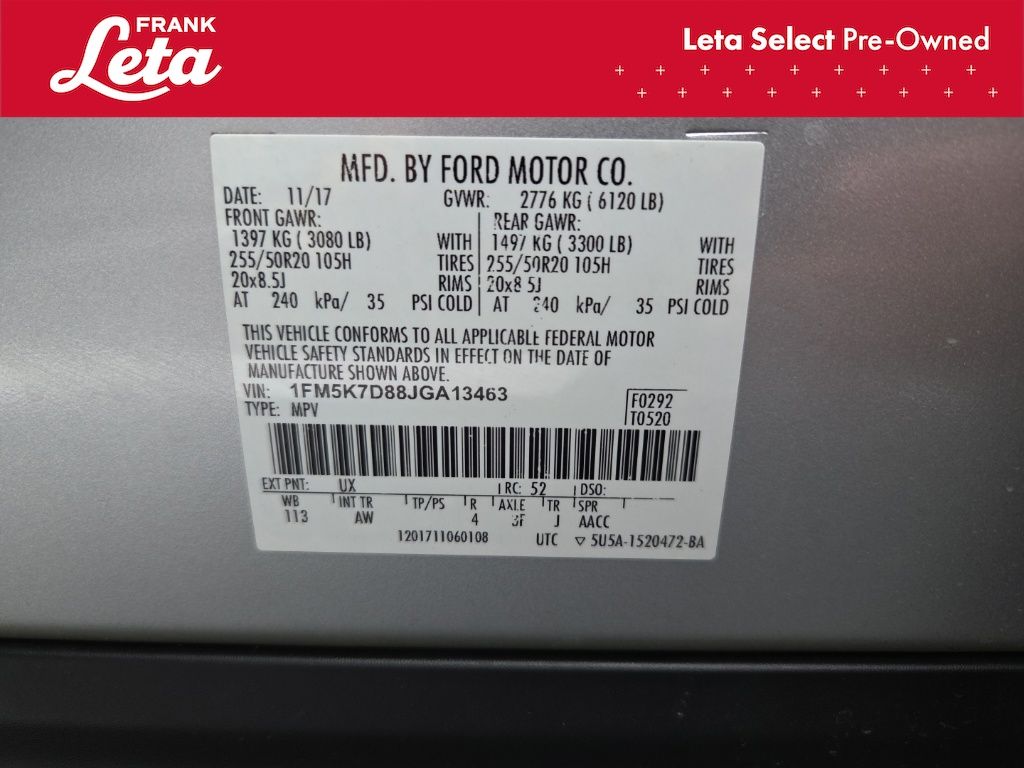 - VIN : 1FM5K7D88JGA13463