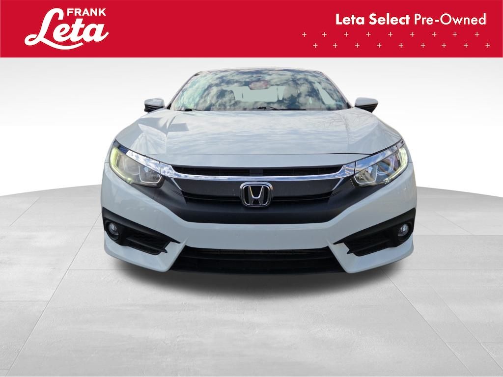 2018 Honda Civic EX-T Taffeta White Civic EX-T, Frank Leta Select Certified, 1.5L I-4 DI DOHC Turbocharged, Taffeta White, Black w/Cloth Seat Trim, 10 Speakers, 17" Alloy Wheels, Apple CarPlay/Android Auto, Exterior Parking Camera Rear, Front dual zone A/C, Front fog lights, Fully automatic headlights, Heated door mirrors, Heated front seats, Power moonroof, 4-Wheel Disc Brakes, ABS brakes, Air Conditioning, AM/FM radio: SiriusXM, Automatic temperature control, Brake assist, Bumpers: body-color, Cloth Seat Trim, Compass, Delay-off headlights, Driver door bin, Driver vanity mirror, Dual front impact airbags, Dual front side impact airbags, Electronic Stability Control, Emergency communication system: HondaLink, Four wheel independent suspension, Front anti-roll bar, Front Bucket Seats, Front Center Armrest, Front reading lights, Illuminated entry, Low tire pressure warning, Occupant sensing airbag, Outside temperature display, Overhead airbag, Panic alarm, Passenger door bin, Passenger vanity mirror, Power door mirrors, Power steering, Power windows, Radio data system, Radio: 450-Watt AM/FM/HD/SiriusXM Audio System, Rear anti-roll bar, Rear window defroster, Reclining Heated Front Bucket Seats, Remote keyless entry, Security system, Speed control, Speed-sensing steering, Speed-Sensitive Wipers, Split folding rear seat, Steering wheel mounted audio controls, Tachometer, Telescoping steering wheel, Tilt steering wheel, Traction control, Trip computer, Variably intermittent wipers, Civic EX-T, 1.5L I-4 DI DOHC Turbocharged, Taffeta White, Black w/Cloth Seat Trim, 10 Speakers, 17" Alloy Wheels, Apple CarPlay/Android Auto, Exterior Parking Camera Rear, Front dual zone A/C, Front fog lights, Fully automatic headlights, Heated door mirrors, Heated front seats, Power moonroof. 1.5L I-4 DI DOHC Turbocharged CVT FWD 2D Coupe Odometer is 10213 miles below market average! 31/40 City/Highway MPG Awards: