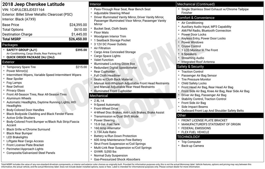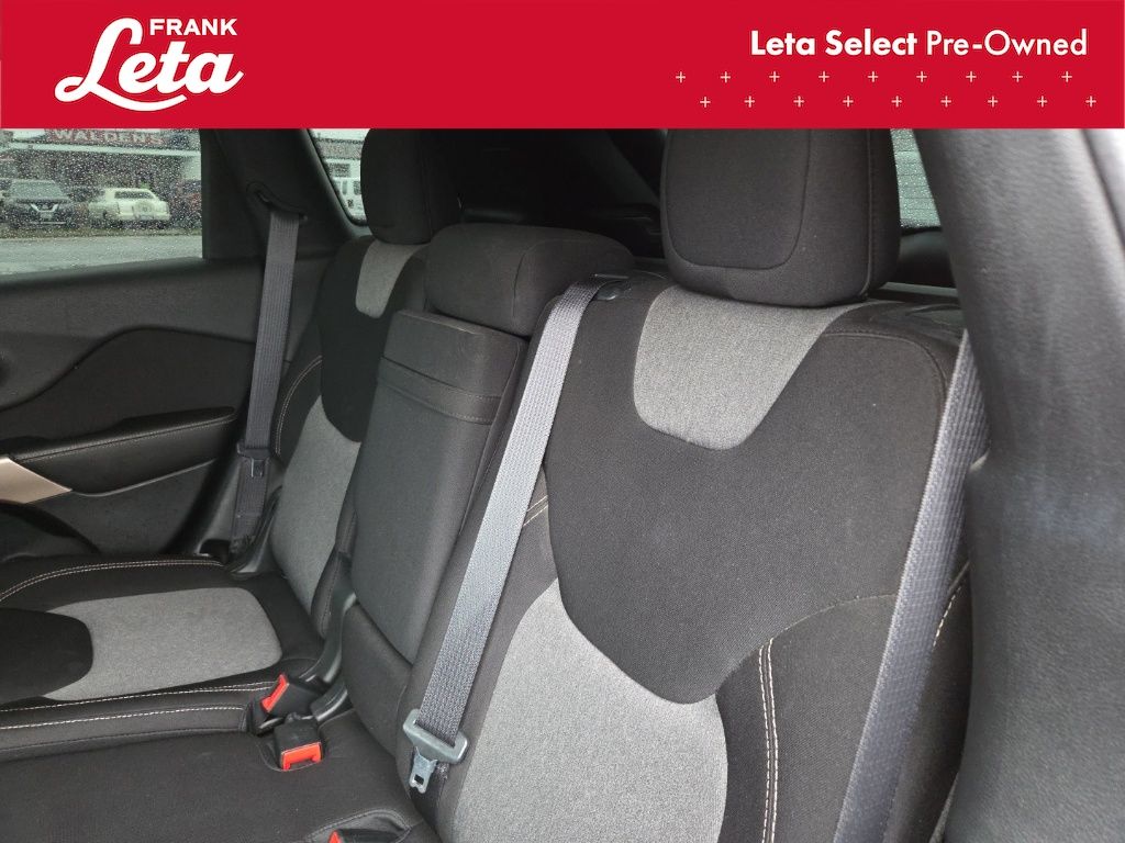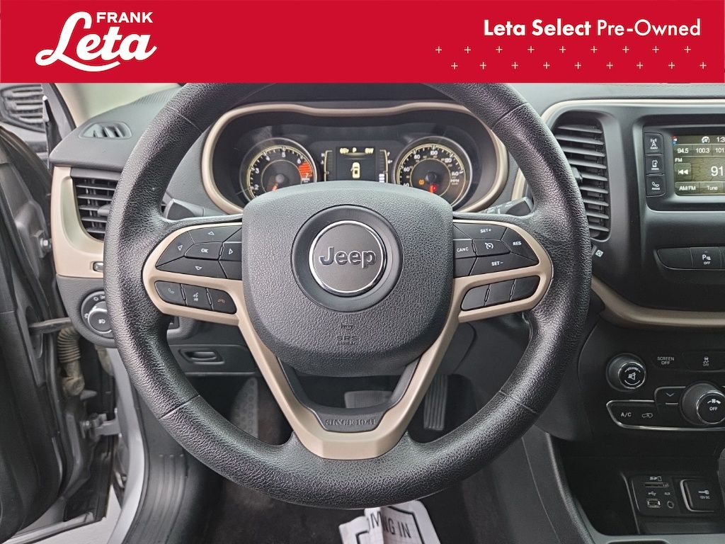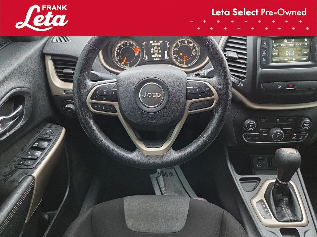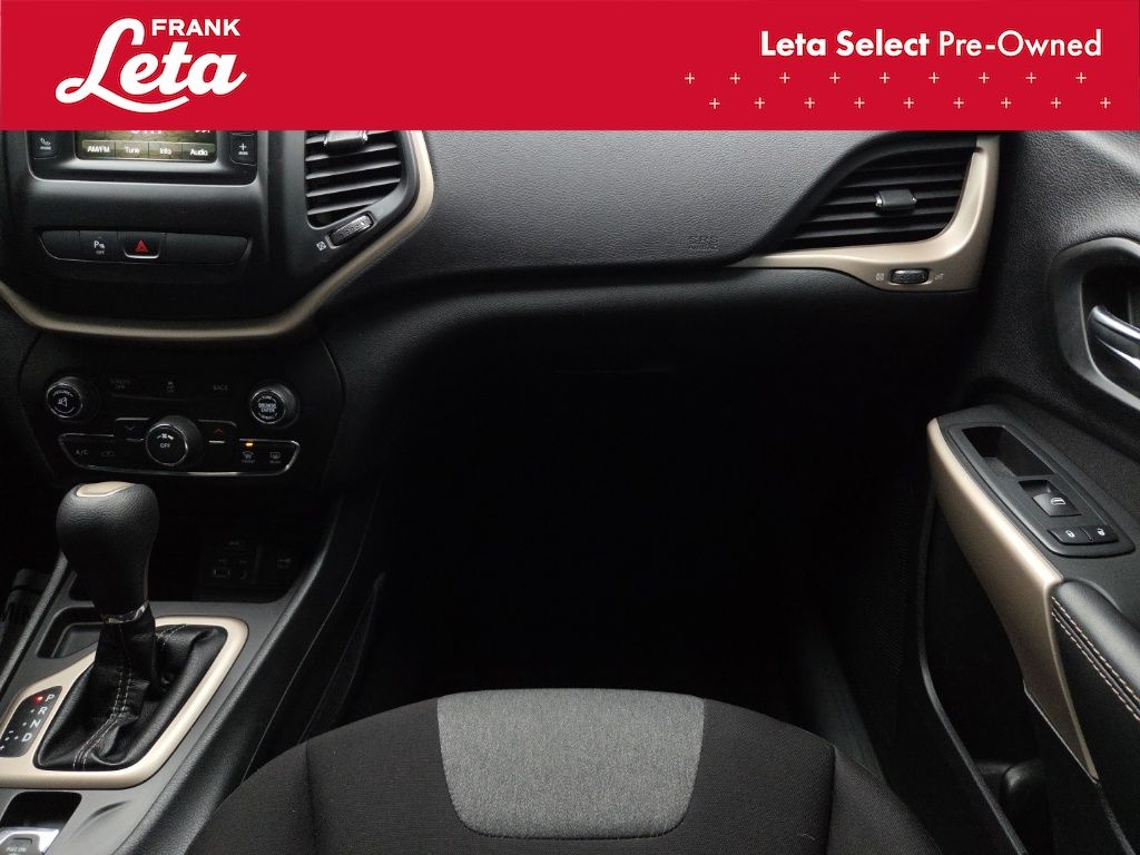 CARFAX One-Owner. 2018 Jeep Cherokee Latitude Billet Silver Metallic Clearcoat Cherokee Latitude, Frank Leta Select Certified, 2.4L I4, Billet Silver Metallic Clearcoat, Black w/Cloth/Leather/Vinyl Bucket Seats or Premium Leather Trimmed Bucket Seats, 17" x 7" Aluminum Wheels, Front fog lights, Fully automatic headlights, High intensity discharge headlights: Bi-Xenon, ParkView Rear Back-Up Camera, Quick Order Package 24J, 3.734 Axle Ratio, 4-Wheel Disc Brakes, 6 Speakers, 600 Amp Maintenance Free Battery, ABS brakes, Active Grille Shutters, AM/FM radio, Anti-whiplash front head restraints, Brake assist, Bumpers: body-color, Cloth Low-Back Bucket Seats, Compass, Delay-off headlights, Driver door bin, Driver vanity mirror, Dual front impact airbags, Dual front side impact airbags, Electronic Stability Control, Engine Oil Cooler, Flex Fuel Vehicle, Four wheel independent suspension, Front anti-roll bar, Front Bucket Seats, Front Center Armrest, Front License Plate Bracket, Front reading lights, Illuminated entry, Knee airbag, Low tire pressure warning, Manufacturer's Statement of Origin, Normal Duty Suspension, Occupant sensing airbag, Outside temperature display, Overhead airbag, Overhead console, Panic alarm, Passenger door bin, Passenger vanity mirror, Power door mirrors, Power steering, Power windows, Radio data system, Radio: Uconnect 3 w/5" Display, Rear anti-roll bar, Rear reading lights, Rear seat center armrest, Rear side impact airbag, Rear window defroster, Rear window wiper, Remote keyless entry, Roof rack: rails only, Speed control, Speed-sensing steering, Split folding rear seat, Spoiler, Tachometer, Telescoping steering wheel, Tilt steering wheel, Traction control, Trip computer, Variably intermittent wipers, Voltmeter, Cherokee Latitude, 2.4L I4, Billet Silver Metallic Clearcoat, Black w/Cloth/Leather/Vinyl Bucket Seats or Premium Leather Trimmed Bucket Seats, 17" x 7" Aluminum Wheels, Front fog lights, Fully automatic headlights, High intensity discharge headlights: Bi-Xenon, ParkView Rear Back-Up Camera, Quick Order Package 24J. 2.4L I4 9-Speed 948TE Automatic FWD 4D Sport Utility Odometer is 21188 miles below market average! 21/30 City/Highway MPG Awards: