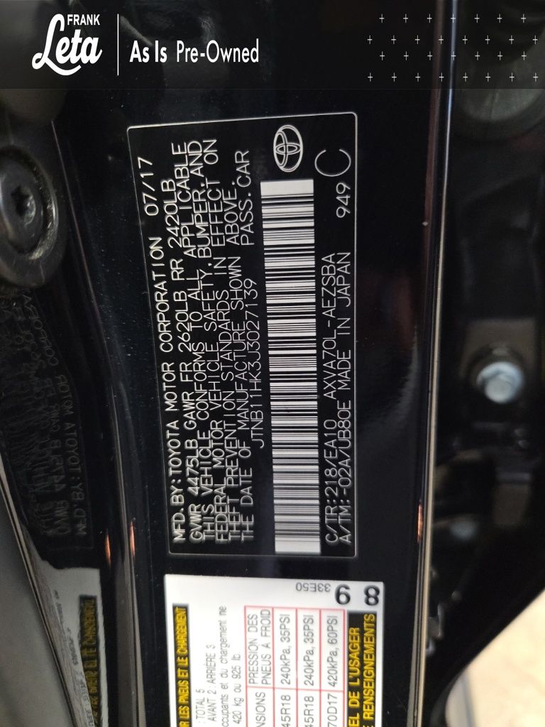 - VIN : JTNB11HK3J3027139