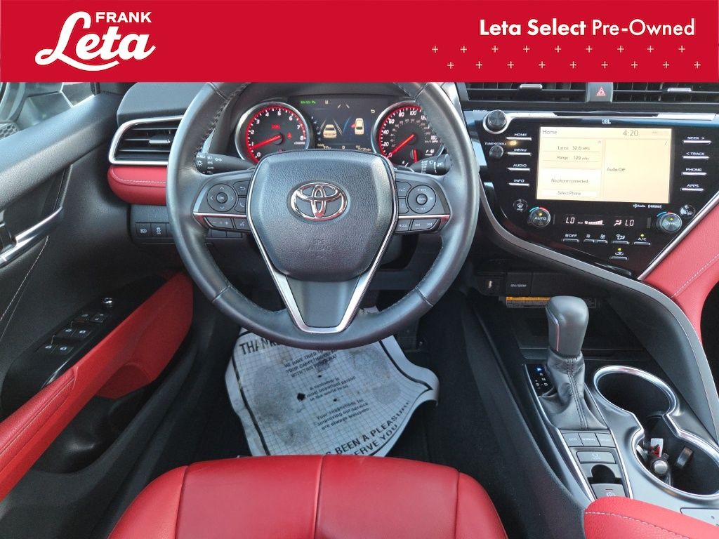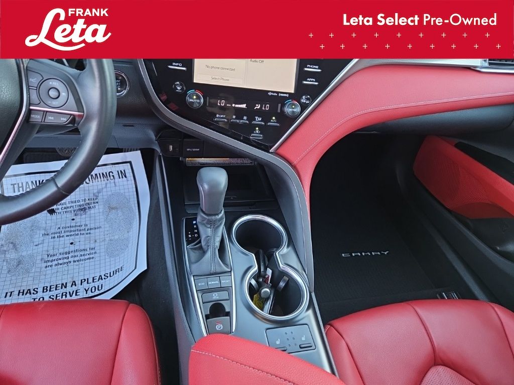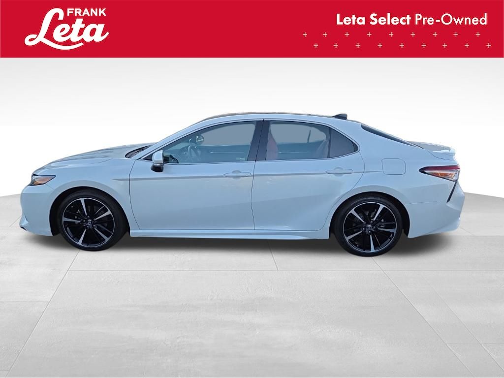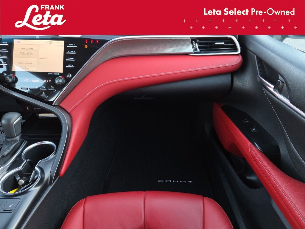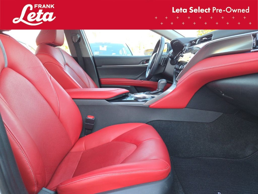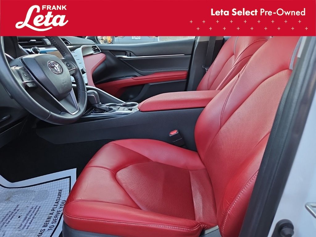 2018 Toyota Camry XSE Super White Camry XSE, Frank Leta Select Certified, 2.5L I4 DOHC 16V, Super White, Cockpit Red w/Perforated Leather Seat Trim, Auto-dimming Rear-View mirror, Exterior Parking Camera Rear, Front dual zone A/C, Fully automatic headlights, Garage door transmitter: HomeLink, Heated front seats, Multi-Stage Heated Front Bucket Seats, Wheels: 8.0J x 19" Black Machined-Finish Alloy, 4-Wheel Disc Brakes, 6 Speakers, ABS brakes, Air Conditioning, Auto High-beam Headlights, Automatic temperature control, Brake assist, Bumpers: body-color, Compass, Delay-off headlights, Driver door bin, Driver vanity mirror, Dual front impact airbags, Dual front side impact airbags, Electronic Stability Control, Four wheel independent suspension, Front anti-roll bar, Front Bucket Seats, Front Center Armrest, Front reading lights, Heated door mirrors, Illuminated entry, Knee airbag, Leather Shift Knob, Low tire pressure warning, Occupant sensing airbag, Outside temperature display, Overhead airbag, Overhead console, Panic alarm, Passenger door bin, Passenger vanity mirror, Perforated Leather Seat Trim, Power door mirrors, Power driver seat, Power passenger seat, Power steering, Power windows, Radio data system, Radio: Entune 3.0 Audio, Rear anti-roll bar, Rear reading lights, Rear seat center armrest, Rear side impact airbag, Rear window defroster, Remote keyless entry, Security system, Speed control, Speed-sensing steering, Split folding rear seat, Spoiler, Sport steering wheel, Steering wheel mounted audio controls, Tachometer, Telescoping steering wheel, Tilt steering wheel, Traction control, Trip computer, Turn signal indicator mirrors, Variably intermittent wipers, Camry XSE, 2.5L I4 DOHC 16V, Super White, Cockpit Red w/Perforated Leather Seat Trim, Auto-dimming Rear-View mirror, Exterior Parking Camera Rear, Front dual zone A/C, Fully automatic headlights, Garage door transmitter: HomeLink, Heated front seats, Multi-Stage Heated Front Bucket Seats, Wheels: 8.0J x 19" Black Machined-Finish Alloy. 2.5L I4 DOHC 16V 8-Speed Automatic FWD 4D Sedan Odometer is 20368 miles below market average! 28/39 City/Highway MPG Awards: