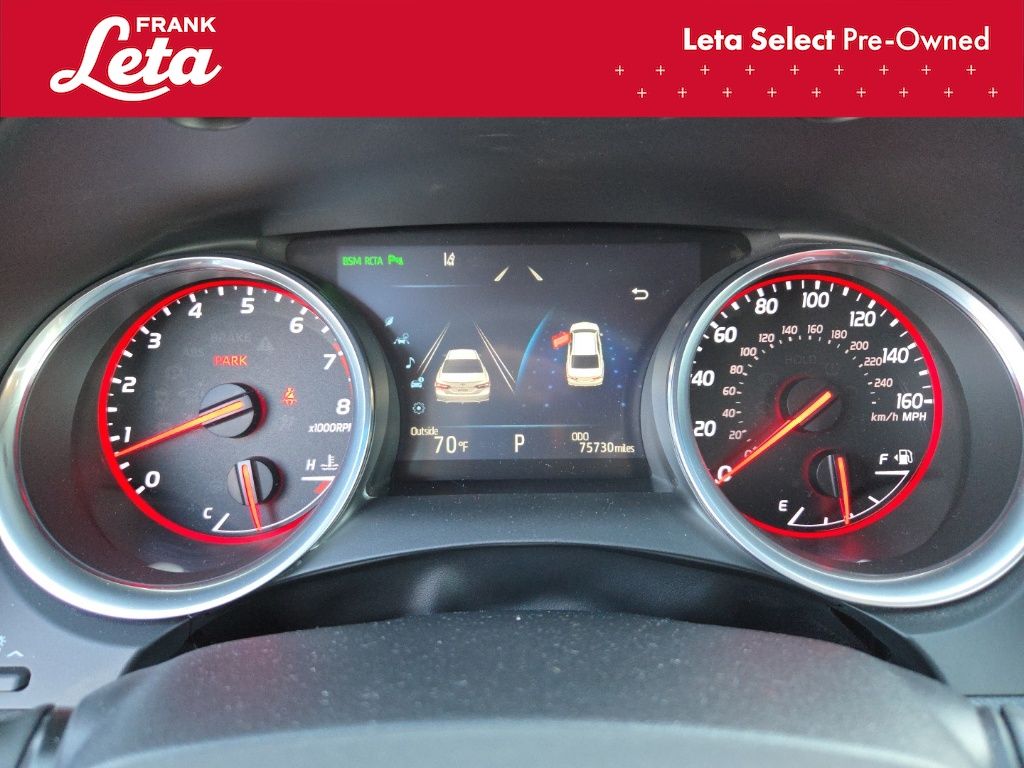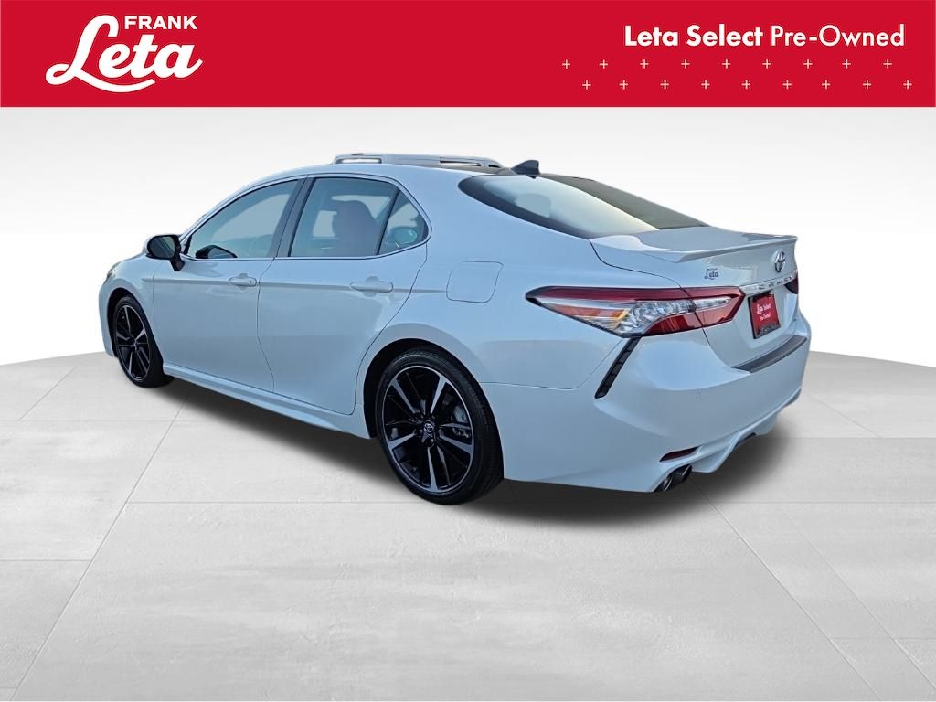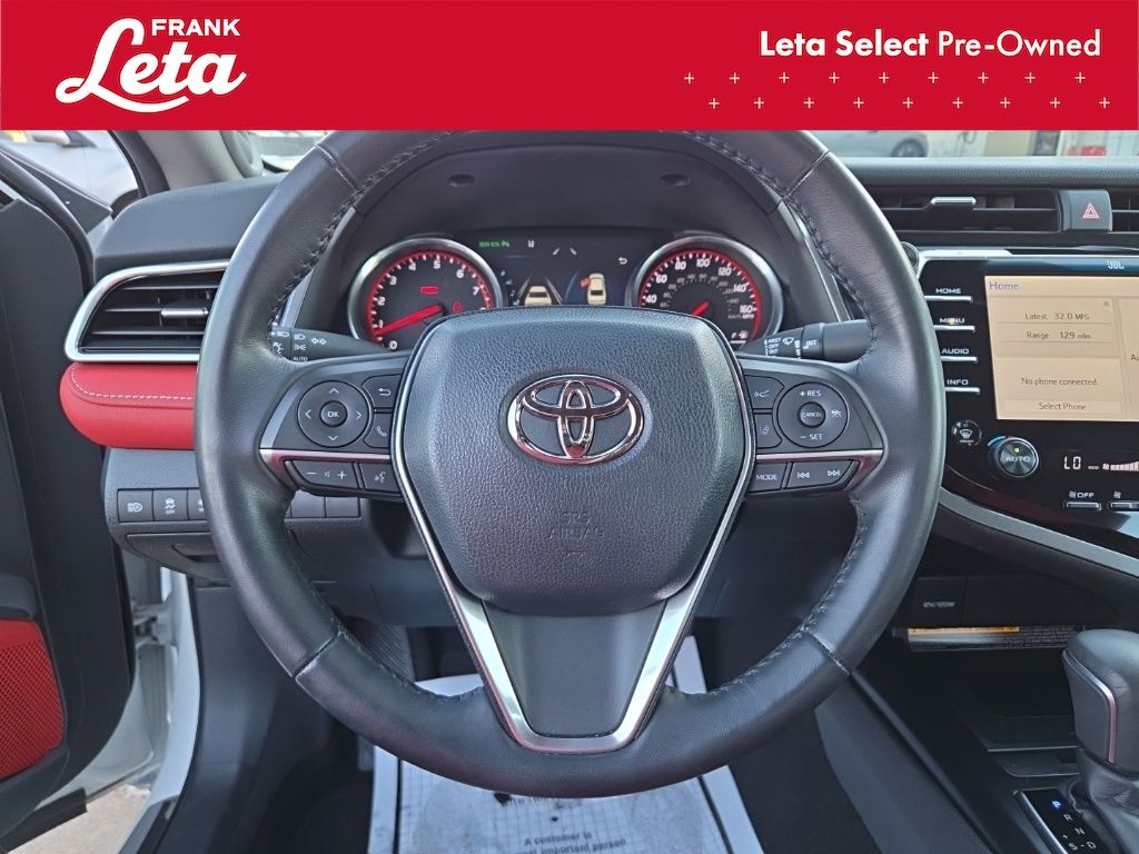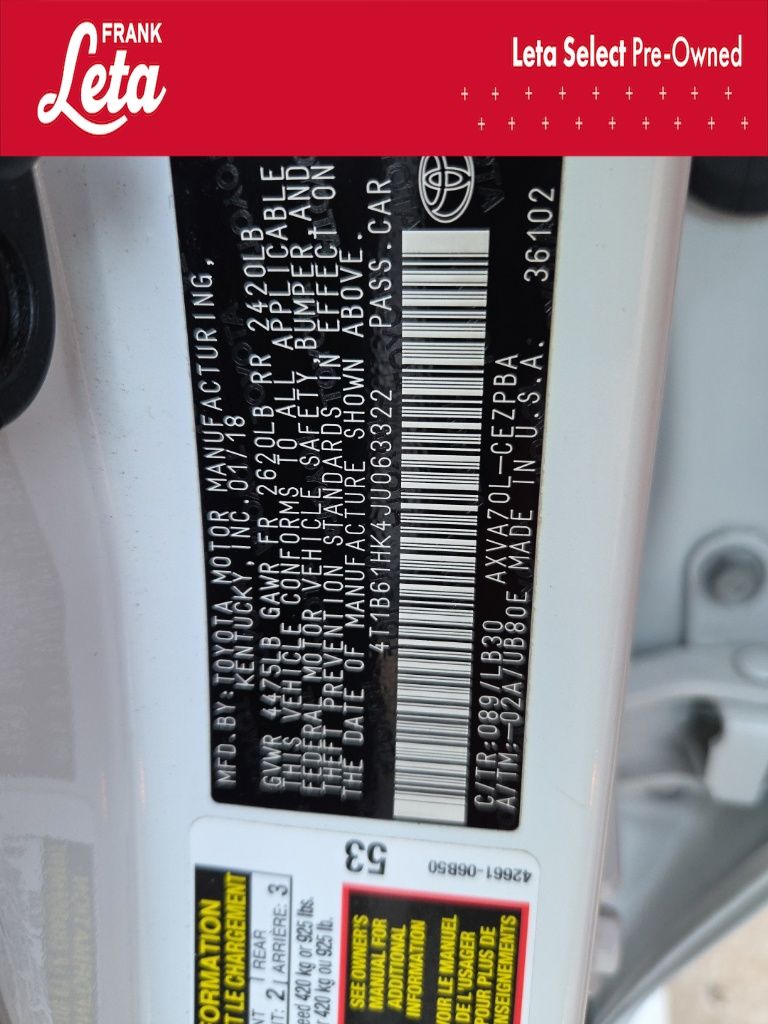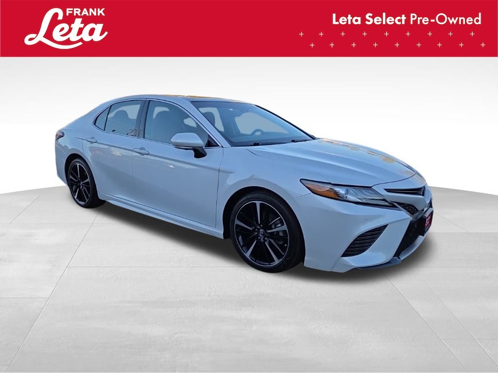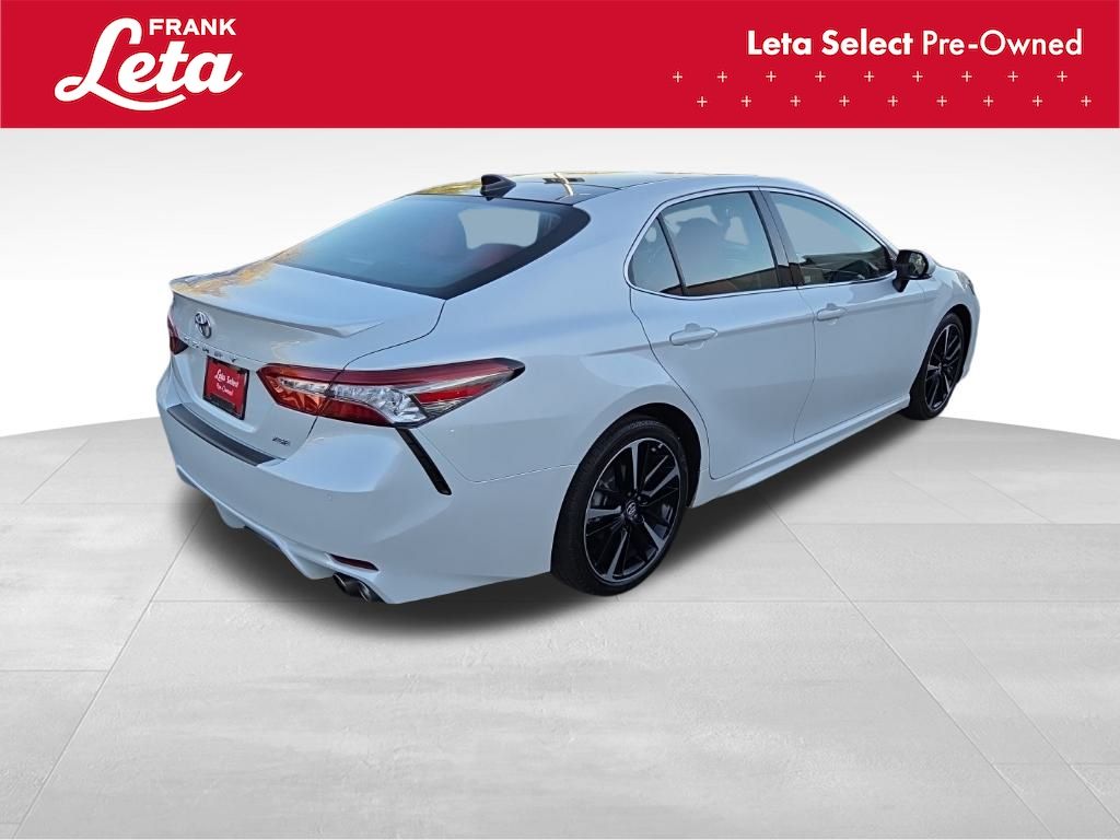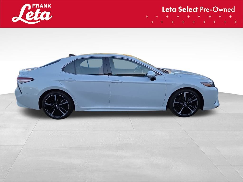 2018 Toyota Camry XSE Super White Camry XSE, Frank Leta Select Certified, 2.5L I4 DOHC 16V, Super White, Cockpit Red w/Perforated Leather Seat Trim, Auto-dimming Rear-View mirror, Exterior Parking Camera Rear, Front dual zone A/C, Fully automatic headlights, Garage door transmitter: HomeLink, Heated front seats, Multi-Stage Heated Front Bucket Seats, Wheels: 8.0J x 19" Black Machined-Finish Alloy, 4-Wheel Disc Brakes, 6 Speakers, ABS brakes, Air Conditioning, Auto High-beam Headlights, Automatic temperature control, Brake assist, Bumpers: body-color, Compass, Delay-off headlights, Driver door bin, Driver vanity mirror, Dual front impact airbags, Dual front side impact airbags, Electronic Stability Control, Four wheel independent suspension, Front anti-roll bar, Front Bucket Seats, Front Center Armrest, Front reading lights, Heated door mirrors, Illuminated entry, Knee airbag, Leather Shift Knob, Low tire pressure warning, Occupant sensing airbag, Outside temperature display, Overhead airbag, Overhead console, Panic alarm, Passenger door bin, Passenger vanity mirror, Perforated Leather Seat Trim, Power door mirrors, Power driver seat, Power passenger seat, Power steering, Power windows, Radio data system, Radio: Entune 3.0 Audio, Rear anti-roll bar, Rear reading lights, Rear seat center armrest, Rear side impact airbag, Rear window defroster, Remote keyless entry, Security system, Speed control, Speed-sensing steering, Split folding rear seat, Spoiler, Sport steering wheel, Steering wheel mounted audio controls, Tachometer, Telescoping steering wheel, Tilt steering wheel, Traction control, Trip computer, Turn signal indicator mirrors, Variably intermittent wipers, Camry XSE, 2.5L I4 DOHC 16V, Super White, Cockpit Red w/Perforated Leather Seat Trim, Auto-dimming Rear-View mirror, Exterior Parking Camera Rear, Front dual zone A/C, Fully automatic headlights, Garage door transmitter: HomeLink, Heated front seats, Multi-Stage Heated Front Bucket Seats, Wheels: 8.0J x 19" Black Machined-Finish Alloy. 2.5L I4 DOHC 16V 8-Speed Automatic FWD 4D Sedan Odometer is 20368 miles below market average! 28/39 City/Highway MPG Awards: