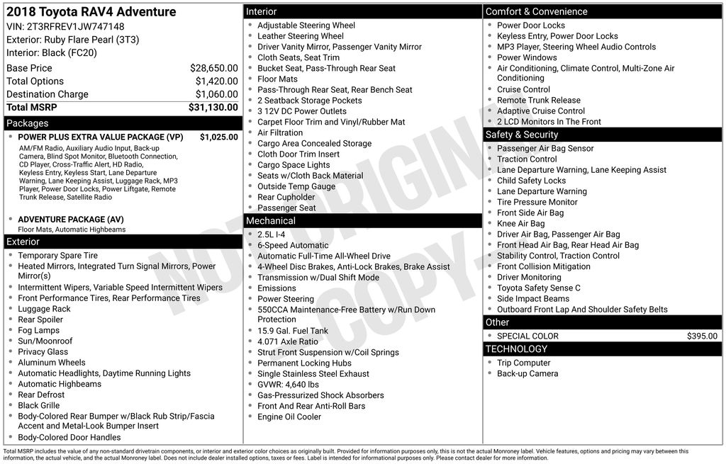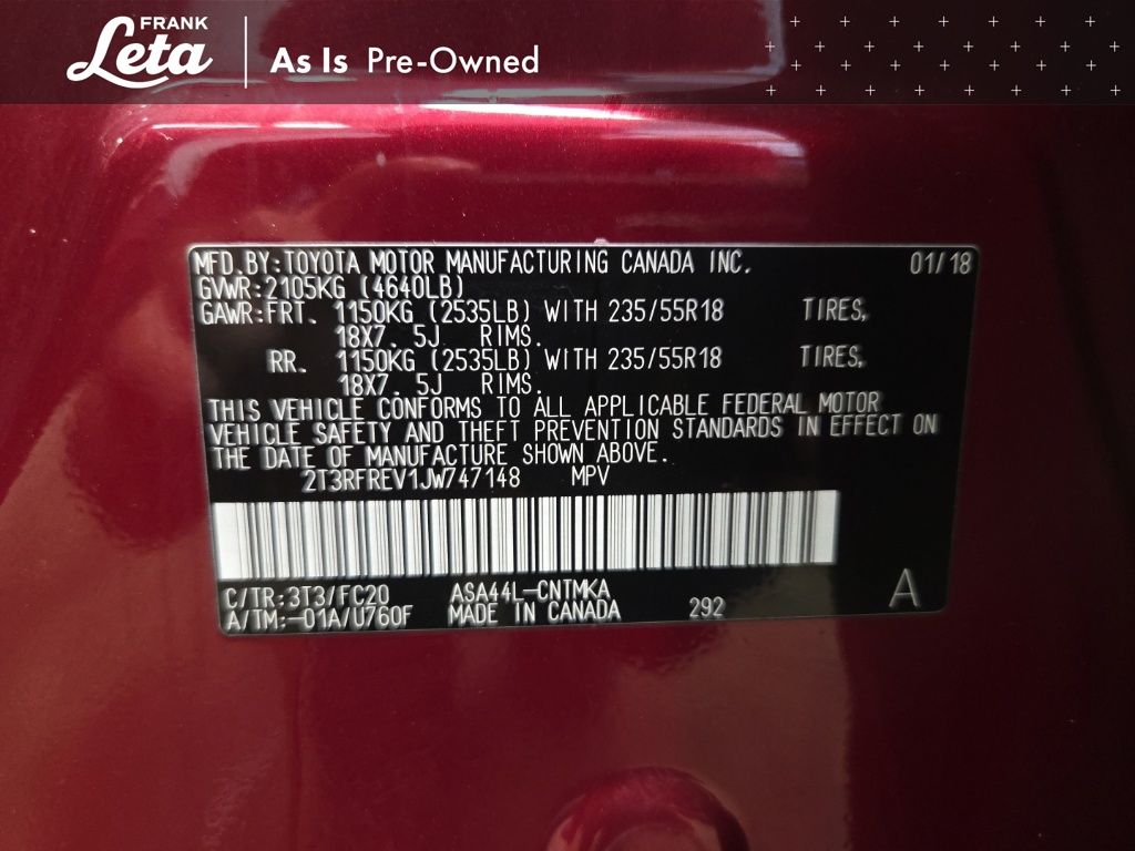 - VIN : 2T3RFREV1JW747148