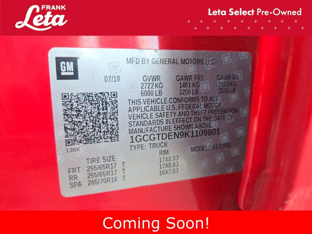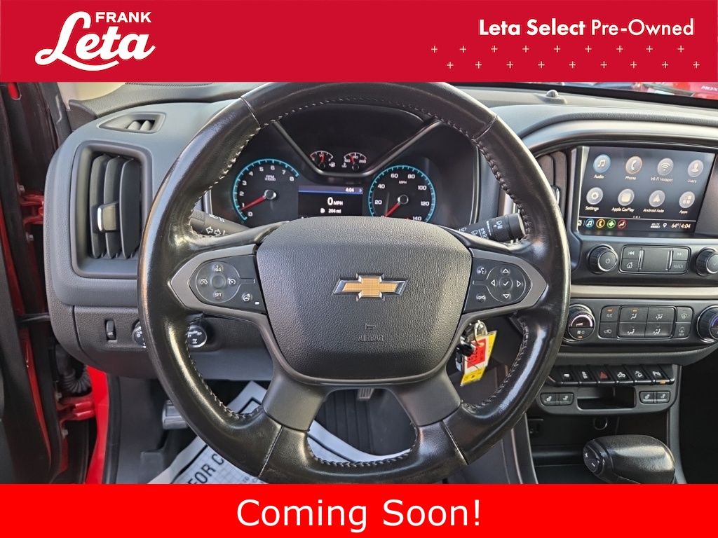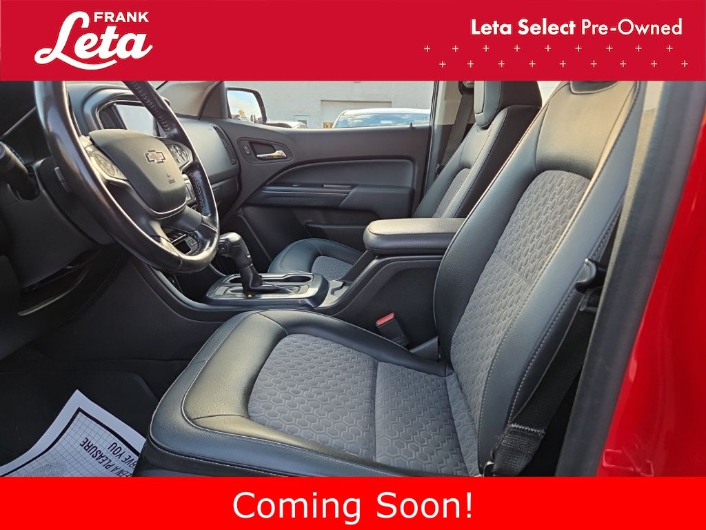2019 Chevrolet Colorado Z71 Red Hot Colorado Z71, Frank Leta Select Certified, V6, 4WD, Red Hot, Jet Black w/Cloth Seat Trim, Apple CarPlay, Auto-dimming Rear-View mirror, Black Spray-On Bedliner w/Chevrolet Logo, Exterior Parking Camera Rear, Front fog lights, Fully automatic headlights, Heated door mirrors, Heated front seats, Heated steering wheel, Integrated Trailer Brake Controller, UltraSonic Rear Park Assist, Wheels: 17" x 8" Dark Argent Metallic Cast Alloy, 3.42 Rear Axle Ratio, 4-Way Power Front Passenger Seat Adjuster, 4-Wheel Disc Brakes, 6 Speakers, 6-Speaker Audio System Feature, ABS brakes, Air Conditioning, AM/FM radio: SiriusXM, Automatic temperature control, Bumpers: body-color, Cloth/Leatherette Seat Trim, Compass, Delay-off headlights, Driver 6-Way Power Seat Adjuster, Driver door bin, Driver vanity mirror, Dual front impact airbags, Dual front side impact airbags, Electronic Stability Control, Front anti-roll bar, Front Bucket Seats, Front Center Armrest, Front License Plate Kit, Front reading lights, Front wheel independent suspension, HD Radio, Heated Driver & Front Passenger Seats, Heavy-Duty Trailering Package, Illuminated entry, Low tire pressure warning, Occupant sensing airbag, Outside temperature display, Overhead airbag, Overhead console, Panic alarm, Passenger door bin, Passenger vanity mirror, Power door mirrors, Power Driver Lumbar Control Seat Adjuster, Power driver seat, Power Passenger Lumbar Control Seat Adjuster, Power passenger seat, Power steering, Power windows, Preferred Equipment Group 4Z7, Premium audio system: Chevrolet Infotainment System, Radio data system, Radio: Chevrolet Infotainment 3 Plus System, Rear reading lights, Rear seat center armrest, Rear step bumper, Rear window defroster, Remote keyless entry, Security system, SiriusXM Radio, Speed control, Speed-sensing steering, Steering wheel mounted audio controls, Tachometer, Telescoping steering wheel, Tilt steering wheel, Tow/Haul Mode, Traction control, Trip computer, Variably intermittent wipers, Colorado Z71, V6, 4WD, Red Hot, Jet Black w/Cloth Seat Trim, Apple CarPlay, Auto-dimming Rear-View mirror, Black Spray-On Bedliner w/Chevrolet Logo, Exterior Parking Camera Rear, Front fog lights, Fully automatic headlights, Heated door mirrors, Heated front seats, Heated steering wheel, Integrated Trailer Brake Controller, UltraSonic Rear Park Assist, Wheels: 17" x 8" Dark Argent Metallic Cast Alloy. V6 8-Speed Automatic 4WD 4D Crew Cab Odometer is 4254 miles below market average! Awards: