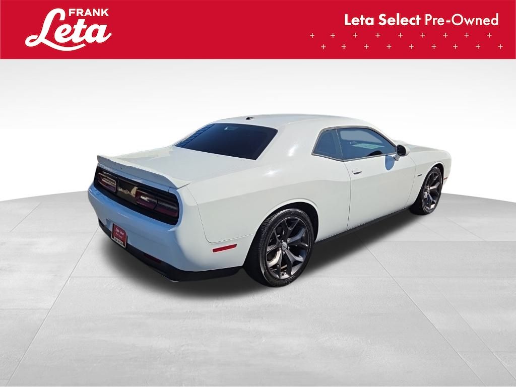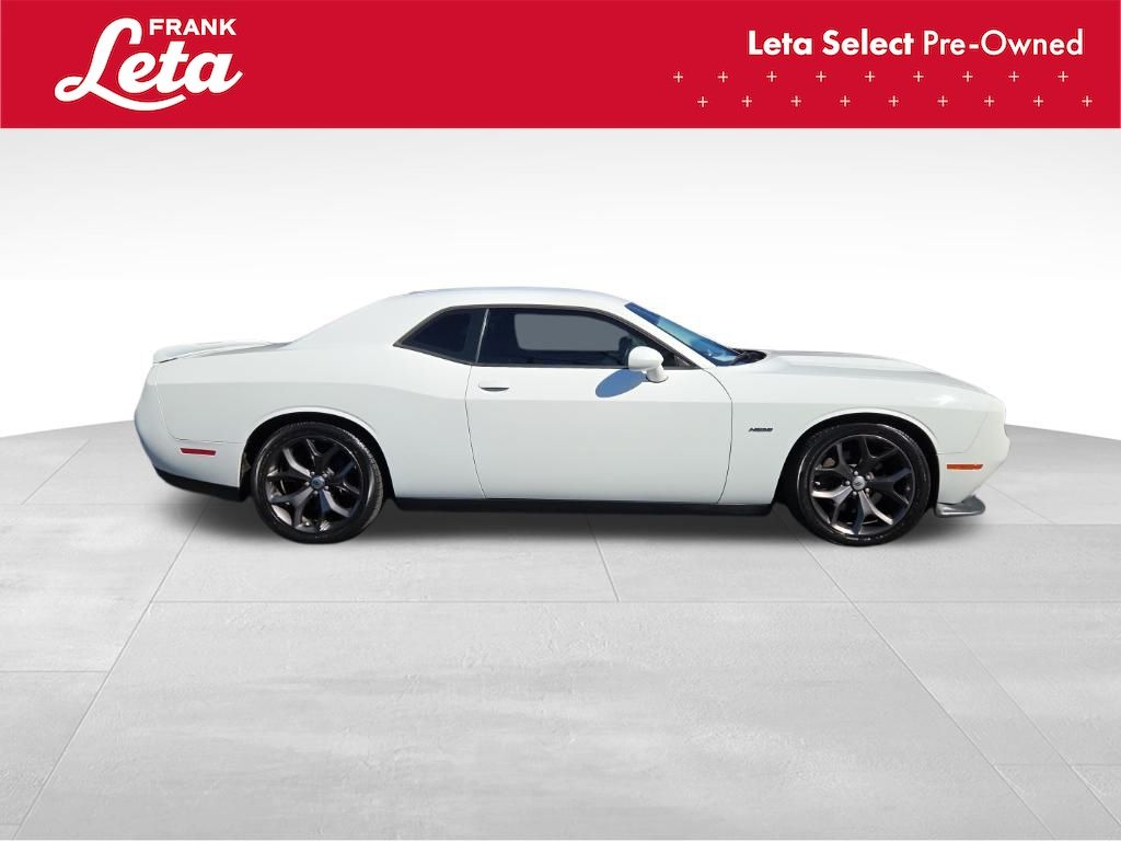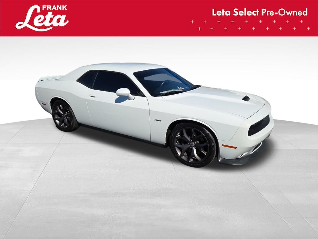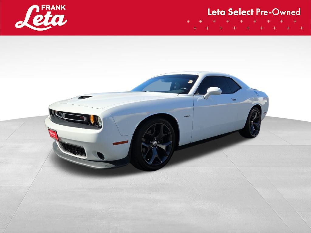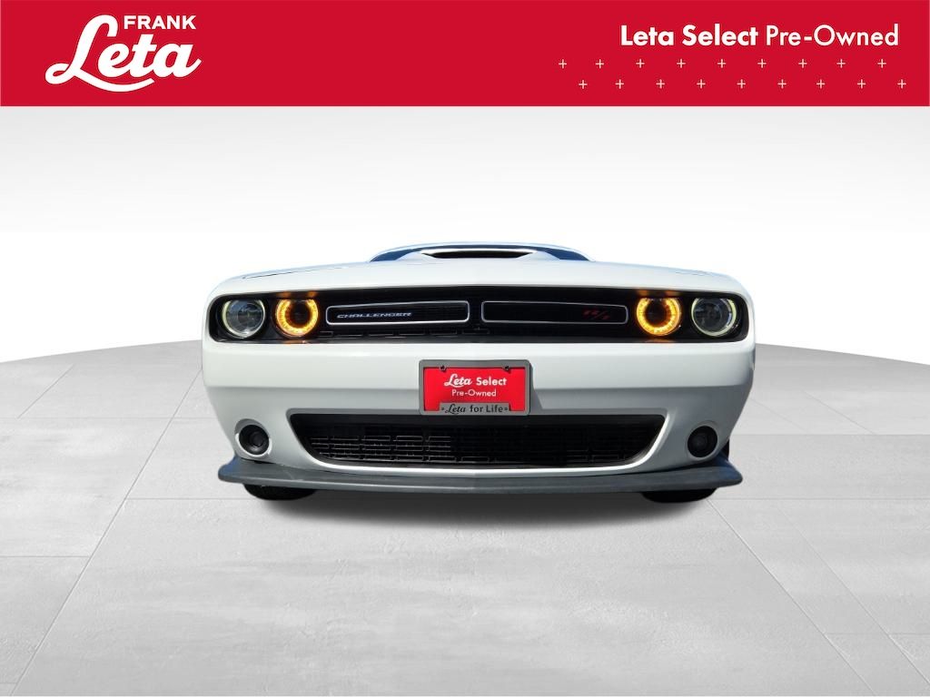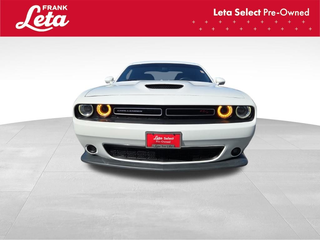 2019 Dodge Challenger R/T White Knuckle Clearcoat Challenger R/T, Frank Leta Select Certified, HEMI 5.7L V8 Multi Displacement VVT, White Knuckle Clearcoat, Black Cloth, Apple CarPlay/Android Auto, Auto-dimming Rear-View mirror, Front dual zone A/C, Fully automatic headlights, Garage door transmitter, ParkView Rear Back-Up Camera, Wheels: 20" x 8.0" Granite Crystal Aluminum, 4-Wheel Disc Brakes, 6 Speakers, ABS brakes, Air Conditioning, AM/FM radio, Anti-whiplash front head restraints, Apple CarPlay, Automatic temperature control, Brake assist, Bumpers: body-color, Compass, Delay-off headlights, Driver door bin, Driver vanity mirror, Dual front impact airbags, Dual front side impact airbags, Electronic Stability Control, Four wheel independent suspension, Front anti-roll bar, Front Bucket Seats, Front Center Armrest, Front fog lights, Front reading lights, Google Android Auto, GPS Antenna Input, Heated door mirrors, Houndstooth Cloth Performance Seats, Illuminated entry, Integrated Voice Command w/Bluetooth, Leather Shift Knob, Low tire pressure warning, Media Hub (2 USB, AUX), Outside temperature display, Overhead airbag, Overhead console, Panic alarm, Passenger door bin, Passenger vanity mirror, Power door mirrors, Power driver seat, Power steering, Power windows, Quick Order Package 28H R/T, Radio data system, Radio: Uconnect 4 w/7" Display, Rear anti-roll bar, Rear reading lights, Rear seat center armrest, Rear window defroster, Remote keyless entry, Security system, Speed control, Speed-sensing steering, Split folding rear seat, Spoiler, Sport steering wheel, Steering wheel mounted audio controls, Tachometer, Telescoping steering wheel, Tilt steering wheel, Traction control, Trip computer, USB Host Flip, Variably intermittent wipers, Challenger R/T, HEMI 5.7L V8 Multi Displacement VVT, White Knuckle Clearcoat, Black Cloth, Apple CarPlay/Android Auto, Auto-dimming Rear-View mirror, Front dual zone A/C, Fully automatic headlights, Garage door transmitter, ParkView Rear Back-Up Camera, Wheels: 20" x 8.0" Granite Crystal Aluminum. HEMI 5.7L V8 Multi Displacement VVT 8-Speed Automatic RWD 2D Coupe Awards: