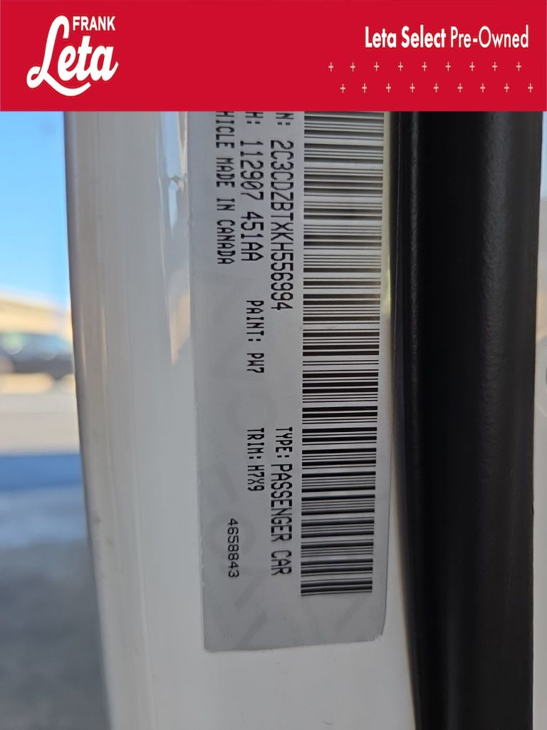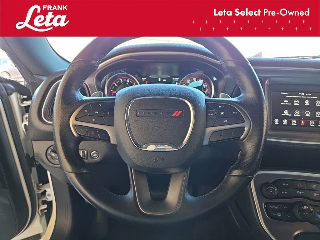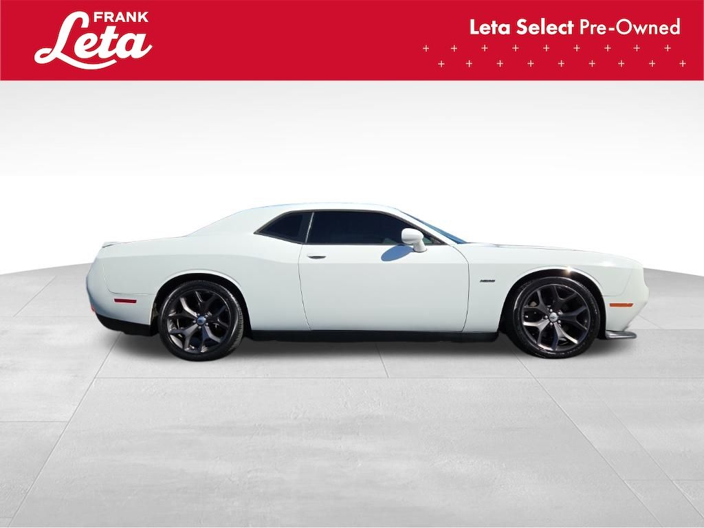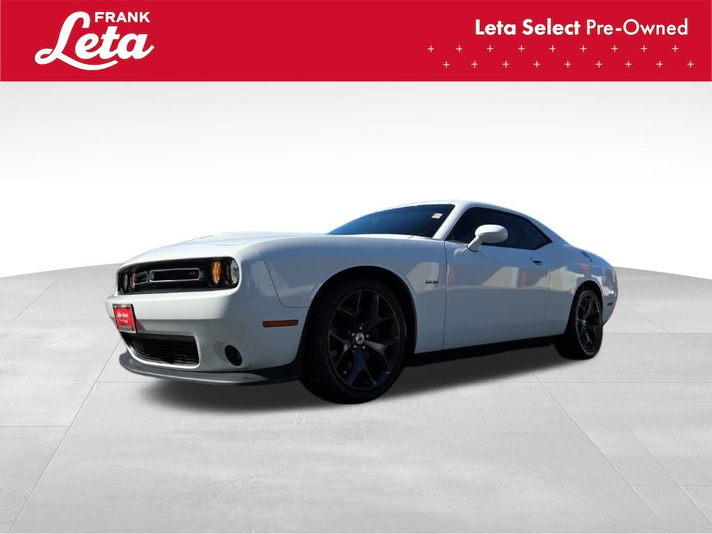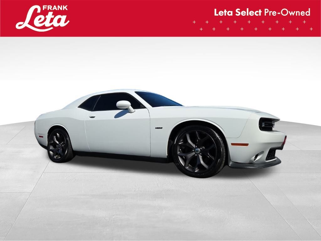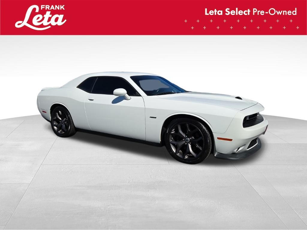 2019 Dodge Challenger R/T White Knuckle Clearcoat Challenger R/T, Frank Leta Select Certified, HEMI 5.7L V8 Multi Displacement VVT, White Knuckle Clearcoat, Black Cloth, Apple CarPlay/Android Auto, Auto-dimming Rear-View mirror, Front dual zone A/C, Fully automatic headlights, Garage door transmitter, ParkView Rear Back-Up Camera, Wheels: 20" x 8.0" Granite Crystal Aluminum, 4-Wheel Disc Brakes, 6 Speakers, ABS brakes, Air Conditioning, AM/FM radio, Anti-whiplash front head restraints, Apple CarPlay, Automatic temperature control, Brake assist, Bumpers: body-color, Compass, Delay-off headlights, Driver door bin, Driver vanity mirror, Dual front impact airbags, Dual front side impact airbags, Electronic Stability Control, Four wheel independent suspension, Front anti-roll bar, Front Bucket Seats, Front Center Armrest, Front fog lights, Front reading lights, Google Android Auto, GPS Antenna Input, Heated door mirrors, Houndstooth Cloth Performance Seats, Illuminated entry, Integrated Voice Command w/Bluetooth, Leather Shift Knob, Low tire pressure warning, Media Hub (2 USB, AUX), Outside temperature display, Overhead airbag, Overhead console, Panic alarm, Passenger door bin, Passenger vanity mirror, Power door mirrors, Power driver seat, Power steering, Power windows, Quick Order Package 28H R/T, Radio data system, Radio: Uconnect 4 w/7" Display, Rear anti-roll bar, Rear reading lights, Rear seat center armrest, Rear window defroster, Remote keyless entry, Security system, Speed control, Speed-sensing steering, Split folding rear seat, Spoiler, Sport steering wheel, Steering wheel mounted audio controls, Tachometer, Telescoping steering wheel, Tilt steering wheel, Traction control, Trip computer, USB Host Flip, Variably intermittent wipers, Challenger R/T, HEMI 5.7L V8 Multi Displacement VVT, White Knuckle Clearcoat, Black Cloth, Apple CarPlay/Android Auto, Auto-dimming Rear-View mirror, Front dual zone A/C, Fully automatic headlights, Garage door transmitter, ParkView Rear Back-Up Camera, Wheels: 20" x 8.0" Granite Crystal Aluminum. HEMI 5.7L V8 Multi Displacement VVT 8-Speed Automatic RWD 2D Coupe Awards: