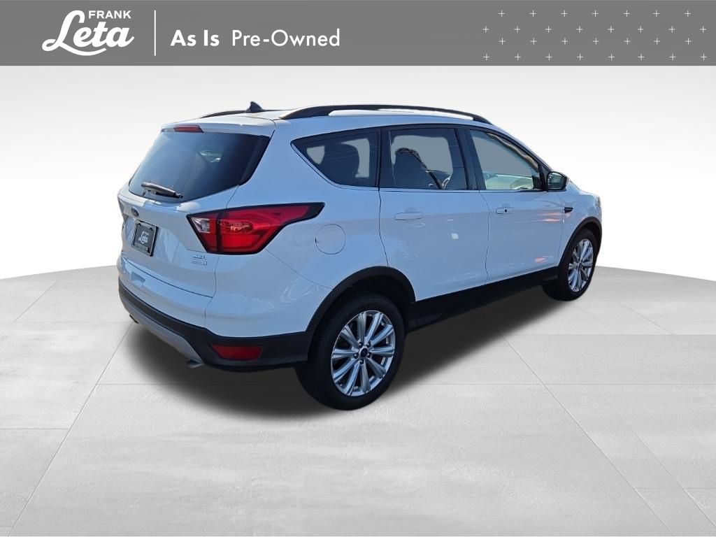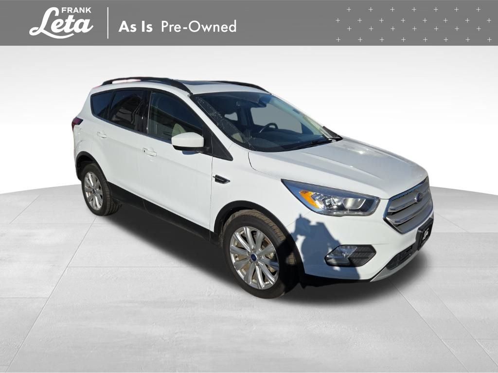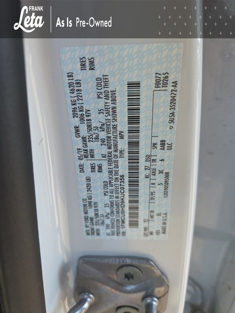 2019 Ford Escape SEL Oxford White Escape SEL, 1.5L EcoBoost, Oxford White, Medium Light Stone w/Heated ActiveX-Trimmed Front Bucket Seats, Adaptive Cruise Control & Fwd Collision Warning, AppLink/Apple CarPlay and Android Auto, Auto-Dimming Rear-View Mirror, Blind Spot Info System w/Cross-Traffic Alert, Exterior Parking Camera Rear, Front dual zone A/C, Front fog lights, Fully automatic headlights, Heated front seats, Lane-Keeping System, Panoramic Vista Roof, Power Liftgate, Rear Parking Sensors, Wheels: 18" Sparkle Silver Painted Aluminum, 3.21 Axle Ratio, 4-Wheel Disc Brakes, 6 Speakers, ABS brakes, Air Conditioning, AM/FM radio: SiriusXM, Auto High-Beam Headlamps, Automatic temperature control, Brake assist, Bumpers: body-color, Compass, Delay-off headlights, Driver door bin, Driver vanity mirror, Dual front impact airbags, Dual front side impact airbags, Electronic Stability Control, Emergency communication system: SYNC 3 911 Assist, Equipment Group 300A, Ford Safe & Smart Package, FordPass Connect, Four wheel independent suspension, Front anti-roll bar, Front Bucket Seats, Front Center Armrest, Front License Plate Bracket, Front reading lights, Heated door mirrors, Illuminated entry, Knee airbag, Leather Shift Knob, Low tire pressure warning, Occupant sensing airbag, Outside temperature display, Overhead airbag, Overhead console, Panic alarm, Passenger door bin, Passenger vanity mirror, Power door mirrors, Power driver seat, Power steering, Power windows, Radio data system, Radio: AM/FM Stereo w/MP3 Capable, Rain-Sensing Wipers, Rear anti-roll bar, Rear seat center armrest, Rear window defroster, Rear window wiper, Remote keyless entry, Roof rack: rails only, Security system, Speed control, Speed-sensing steering, Split folding rear seat, Steering wheel mounted audio controls, Sun & Style Package, SYNC 3 Communications & Entertainment System, Tachometer, Telescoping steering wheel, Tilt steering wheel, Traction control, Trip computer, Variably intermittent wipers, Windshield Wiper De-Icer, Escape SEL, 1.5L EcoBoost, Oxford White, Medium Light Stone w/Heated ActiveX-Trimmed Front Bucket Seats, Adaptive Cruise Control & Fwd Collision Warning, AppLink/Apple CarPlay and Android Auto, Auto-Dimming Rear-View Mirror, Blind Spot Info System w/Cross-Traffic Alert, Exterior Parking Camera Rear, Front dual zone A/C, Front fog lights, Fully automatic headlights, Heated front seats, Lane-Keeping System, Panoramic Vista Roof, Power Liftgate, Rear Parking Sensors, Wheels: 18" Sparkle Silver Painted Aluminum. 1.5L EcoBoost 6-Speed Automatic FWD 4D Sport Utility 23/30 City/Highway MPG