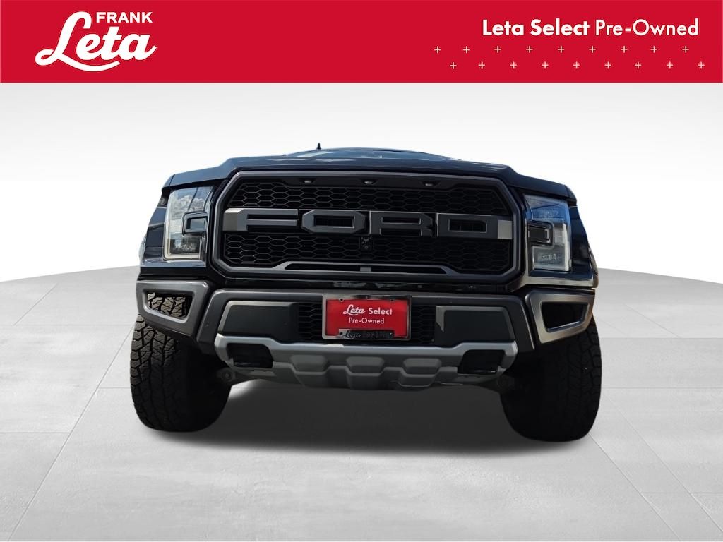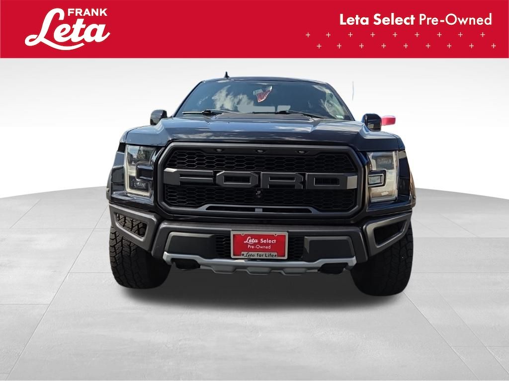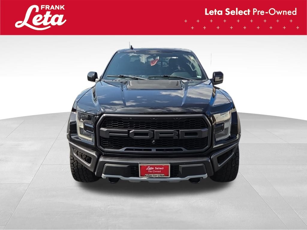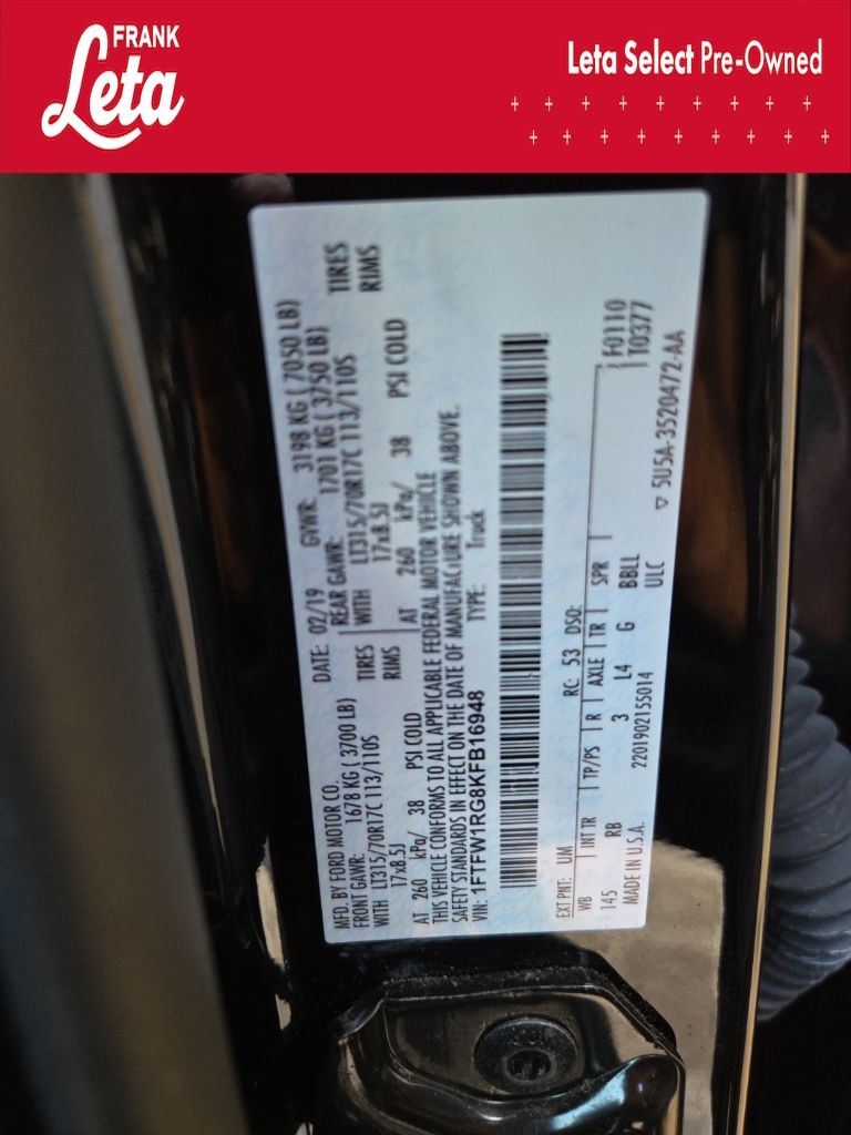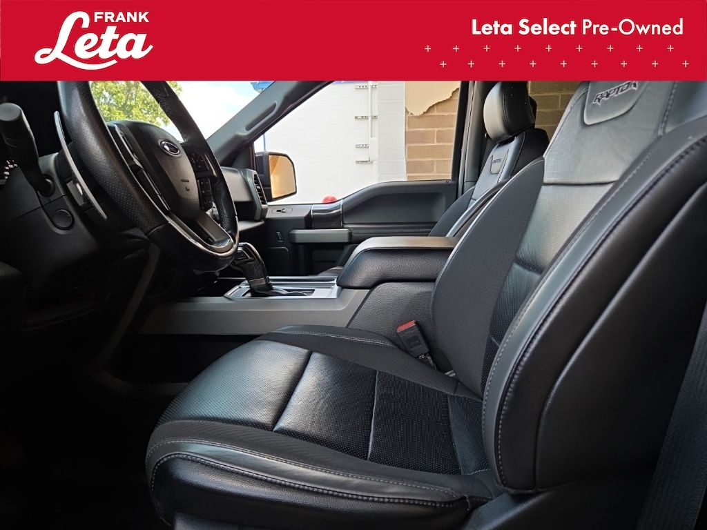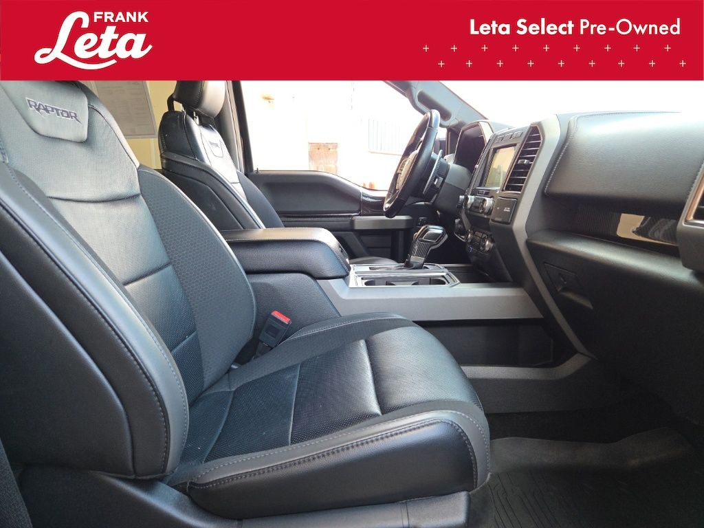2019 Ford F-150 Raptor Agate Black Metallic F-150 Raptor, Frank Leta Select Certified, 3.5L V6 EcoBoost, 4WD, Agate Black Metallic, Black w/Leather-Trimmed Bucket Seats, 10-Way Power Driver & Passenger Seats, 360 Degree Camera, 4.10 Front Axle w/Torsen Differential, AppLink/Apple CarPlay and Android Auto, Auto-dimming Rear-View mirror, BLIS Blind Spot Information System, Dual-Zone Electronic Automatic Temperature Control, Exterior Parking Camera Rear, Fully automatic headlights, Heated Leather 40/Console/40 Front Seats, Integrated Trailer Brake Controller, Memory System (Seat, Pedal, Exterior Mirror), Pro Trailer Backup Assist, Radio: B&O Sound System by Bang & Olufsen, Rear Parking Sensors, Remote Start System w/Remote Tailgate Release, SYNC 3, Tachometer, Universal Garage Door Opener, Voice-Activated Touchscreen Navigation, 17" Forged Aluminum Bead-Lock Capable Wheels, 4-Wheel Disc Brakes, 7 Speakers, 8" Productivity Screen, ABS brakes, Advanced Security Pack, Air Conditioning, AM/FM radio: SiriusXM, Ambient Lighting - Ice Blue Color Only, Auto High-beam Headlights, Brake assist, Compass, Delay-off headlights, Driver door bin, Driver vanity mirror, Dual front impact airbags, Dual front side impact airbags, Electronic Locking w/4.10 Axle Ratio, Electronic Stability Control, Emergency communication system: SYNC 3 911 Assist, Equipment Group 802A Luxury, Front anti-roll bar, Front Bucket Seats, Front Center Armrest, Front reading lights, Front wheel independent suspension, GVWR: 7,050 lbs Payload Package, Heated Steering Wheel, Illuminated entry, Inflatable Rear Safety Belts, Intelligent Access w/Push-Button Start, Leather steering wheel, LED Box Lighting, LED Sideview Mirror Spotlights, Low tire pressure warning, Occupant sensing airbag, Outside temperature display, Overhead airbag, Overhead console, Panic alarm, Passenger door bin, Passenger vanity mirror, Power door mirrors, Power driver seat, Power Glass Heated Sideview Mirrors, Power steering, Power Tilt/Telescoping Steering Column w/Memory, Power windows, Power-Adjustable Pedals, Power-Sliding Rear Window, Radio data system, Radio: SiriusXM w/7 Speakers, Raptor Carbon Fiber Package, Rear reading lights, Rear step bumper, Rear window defroster, Remote keyless entry, Security system, Speed control, Speed-sensing steering, Split folding rear seat, Steering wheel mounted audio controls, Tailgate Applique FORD, Tailgate Step w/Tailgate Lift Assist, Telescoping steering wheel, Tilt steering wheel, Traction control, Trip computer, Unique High Gloss Black Carbon Fiber Shift Knob, Variably intermittent wipers, F-150 Raptor, 3.5L V6 EcoBoost, 4WD, Agate Black Metallic, Black w/Leather-Trimmed Bucket Seats, 10-Way Power Driver & Passenger Seats, 360 Degree Camera, 4.10 Front Axle w/Torsen Differential, AppLink/Apple CarPlay and Android Auto, Auto-dimming Rear-View mirror, BLIS Blind Spot Information System, Dual-Zone Electronic Automatic Temperature Control, Exterior Parking Camera Rear, Fully automatic headlights, Heated Leather 40/Console/40 Front Seats, Integrated Trailer Brake Controller, Memory System (Seat, Pedal, Exterior Mirror), Pro Trailer Backup Assist, Radio: B&O Sound System by Bang & Olufsen, Rear Parking Sensors, Remote Start System w/Remote Tailgate Release, SYNC 3, Tachometer, Universal Garage Door Opener, Voice-Activated Touchscreen Navigation. 3.5L V6 EcoBoost 10-Speed Automatic 4WD 4D SuperCrew Awards: