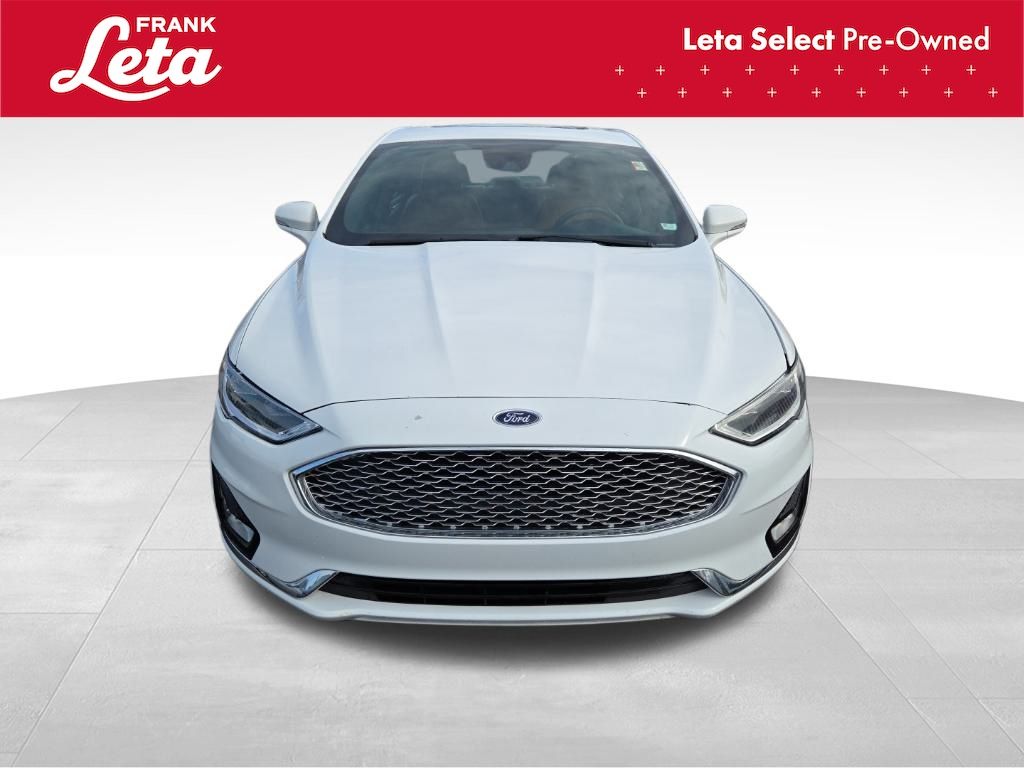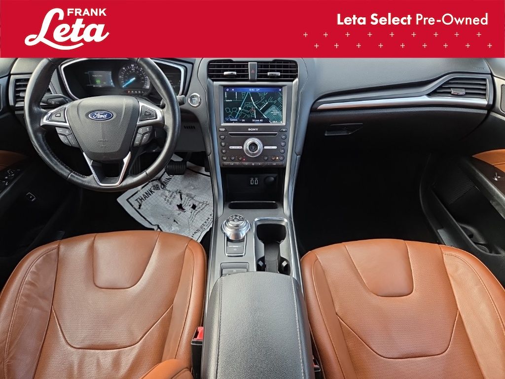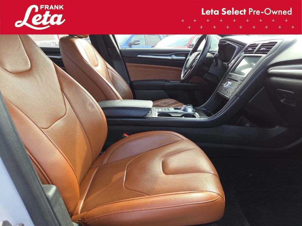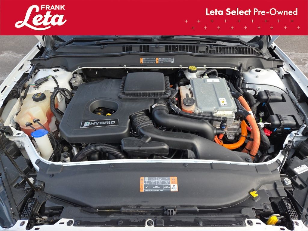 2019 Ford Fusion Hybrid Titanium Oxford White Fusion Hybrid Titanium, Frank Leta Select Certified, I4 Hybrid, Oxford White, Russet Leather, 12 Speakers, Auto-dimming door mirrors, Auto-dimming Rear-View mirror, Exterior Parking Camera Rear, Front dual zone A/C, Front fog lights, Fully automatic headlights, Garage door transmitter, Heated door mirrors, Heated front seats, Heated steering wheel, Lane Departure Warning System, Memory seat, Navigation System, Power moonroof, Rear Parking Sensors, Ventilated front seats, Wheels: 18" Premium-Painted Aluminum, 4-Wheel Disc Brakes, ABS brakes, Air Conditioning, AM/FM radio: SiriusXM, Auto High-beam Headlights, Automatic temperature control, Brake assist, Bumpers: body-color, CD player, Compass, Delay-off headlights, Driver door bin, Driver vanity mirror, Dual front impact airbags, Dual front side impact airbags, Electronic Stability Control, Emergency communication system: SYNC 3 911 Assist, Equipment Group 650A, Four wheel independent suspension, Front anti-roll bar, Front Bucket Seats, Front Center Armrest, Front reading lights, Illuminated entry, Knee airbag, Leather Heated/Cooled Sport Bucket Seats, Low tire pressure warning, Occupant sensing airbag, Outside temperature display, Overhead airbag, Overhead console, Panic alarm, Passenger door bin, Passenger vanity mirror, Power door mirrors, Power driver seat, Power passenger seat, Power steering, Power windows, Radio data system, Radio: AM/FM Stereo w/MP3/Single-CD Player, Rain sensing wipers, Rear anti-roll bar, Rear reading lights, Rear seat center armrest, Rear window defroster, Remote keyless entry, Security system, Speed control, Speed-sensing steering, Speed-Sensitive Wipers, Split folding rear seat, Spoiler, Steering wheel mounted audio controls, SYNC 3 Communications & Entertainment System, Tachometer, Telescoping steering wheel, Tilt steering wheel, Traction control, Trip computer, Turn signal indicator mirrors, Variably intermittent wipers, Fusion Hybrid Titanium, I4 Hybrid, Oxford White, Russet Leather, 12 Speakers, Auto-dimming door mirrors, Auto-dimming Rear-View mirror, Exterior Parking Camera Rear, Front dual zone A/C, Front fog lights, Fully automatic headlights, Garage door transmitter, Heated door mirrors, Heated front seats, Heated steering wheel, Lane Departure Warning System, Memory seat, Navigation System, Power moonroof, Rear Parking Sensors, Ventilated front seats, Wheels: 18" Premium-Painted Aluminum. I4 Hybrid eCVT FWD 4D Sedan 43/41 City/Highway MPG