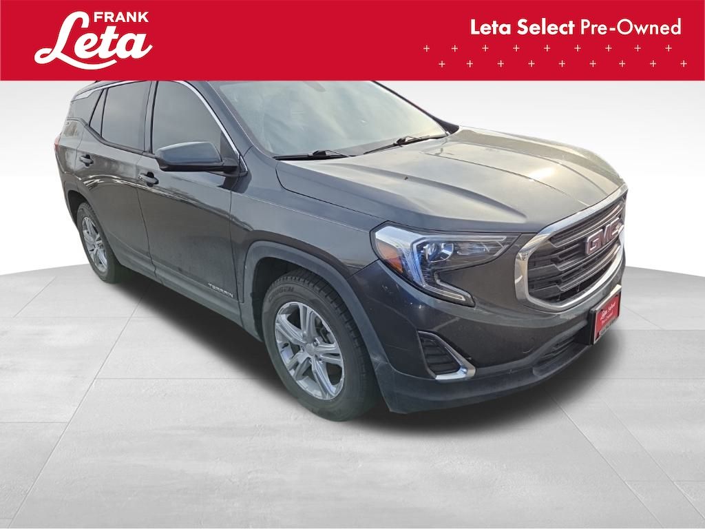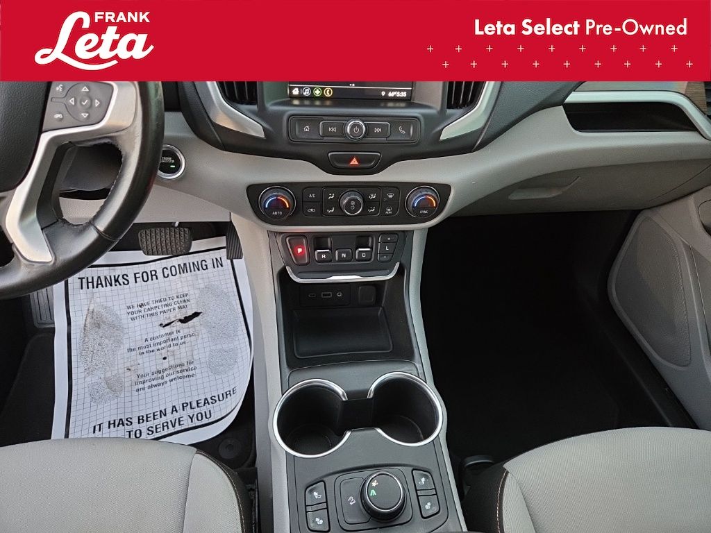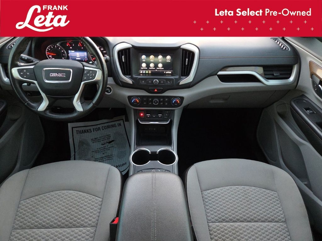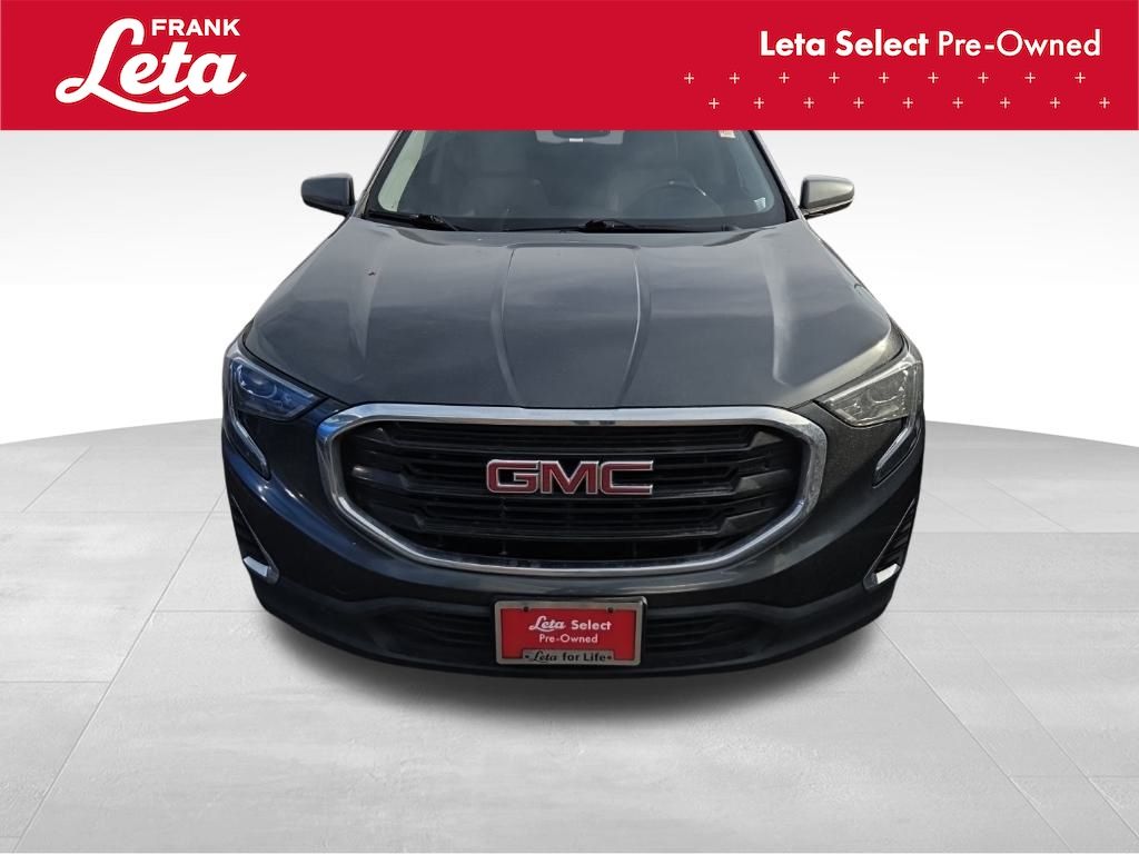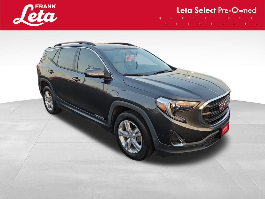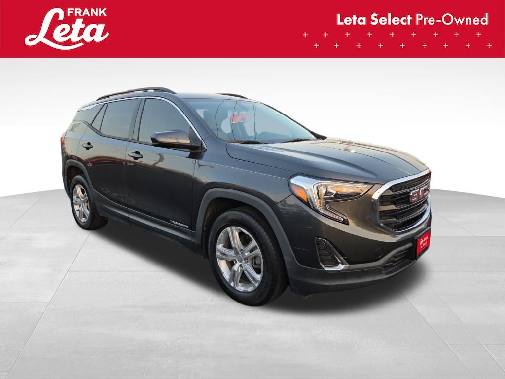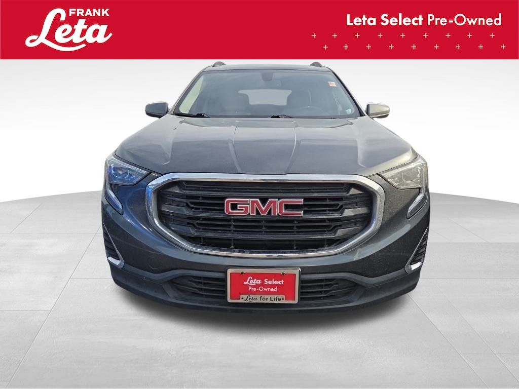 2019 GMC Terrain SLE Graphite Gray Metallic Terrain SLE, Frank Leta Select Certified, Graphite Gray Metallic, Medium Ash Gray/Jet Black Cloth, Apple CarPlay/Android Auto, Auto-dimming Rear-View mirror, Bluetooth For Phone, Dual-Zone Automatic Climate Control, Exterior Parking Camera Rear, Fully automatic headlights, Heated door mirrors, High-Intensity Discharge Headlights, Remote Start, Wheels: 17" x 7" Silver Painted Aluminum, 2 USB Data Ports w/Auxiliary Input Jack, 3.47 Axle Ratio, 4-Way Manual Driver's Seat, 4-Way Manual Front Passenger Seat, 4-Wheel Disc Brakes, 6 Speakers, 6-Speaker Audio System Feature, 8-Way Power Driver Seat Adjuster, ABS brakes, Air Conditioning, AM/FM radio, Brake assist, Bumpers: body-color, Compass, Delay-off headlights, Driver & Front Passenger Heated Seats, Driver Convenience Package, Driver door bin, Driver vanity mirror, Dual front impact airbags, Dual front side impact airbags, Electronic Stability Control, Emergency communication system, Four wheel independent suspension, Front anti-roll bar, Front Bucket Seats, Front Center Armrest, Front reading lights, Illuminated entry, License Plate Front Mounting Package, Low tire pressure warning, Occupant sensing airbag, Outside temperature display, Overhead airbag, Overhead console, Panic alarm, Passenger door bin, Passenger vanity mirror, Power door mirrors, Power Driver Lumbar Control, Power steering, Power windows, Preferred Equipment Group 3SA, Premium Cloth Seat Trim, Radio data system, Radio: GMC Infotainment Audio System w/7" Display, Rear anti-roll bar, Rear seat center armrest, Rear window defroster, Rear window wiper, Remote keyless entry, Roof-Mounted Luggage Rack Black Side Rails, Security system, Speed control, Speed-sensing steering, Split folding rear seat, Spoiler, Steering wheel mounted audio controls, Tachometer, Telescoping steering wheel, Tilt steering wheel, Traction control, Trip computer, Variably intermittent wipers, Terrain SLE, Graphite Gray Metallic, Medium Ash Gray/Jet Black Cloth, Apple CarPlay/Android Auto, Auto-dimming Rear-View mirror, Bluetooth For Phone, Dual-Zone Automatic Climate Control, Exterior Parking Camera Rear, Fully automatic headlights, Heated door mirrors, High-Intensity Discharge Headlights, Remote Start, Wheels: 17" x 7" Silver Painted Aluminum. 1.5L DOHC 9-Speed Automatic FWD 4D Sport Utility 26/30 City/Highway MPG Awards:
