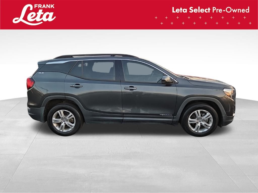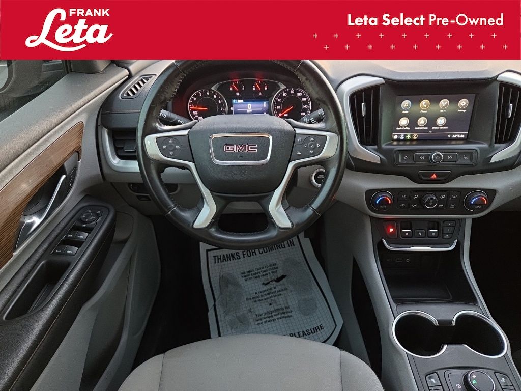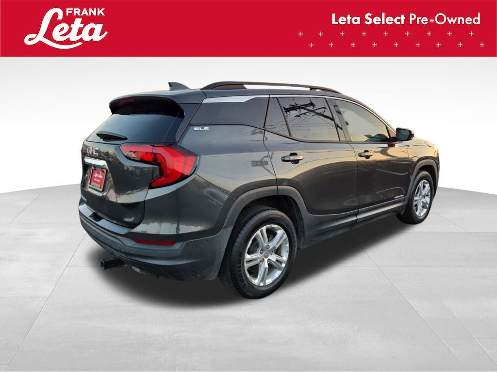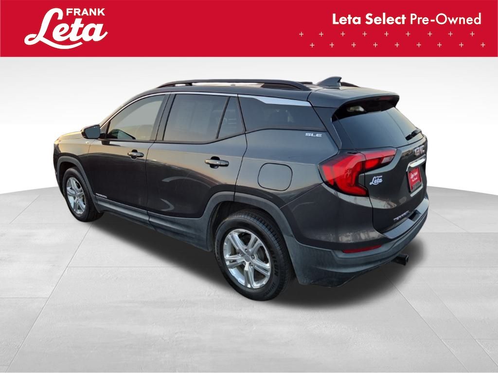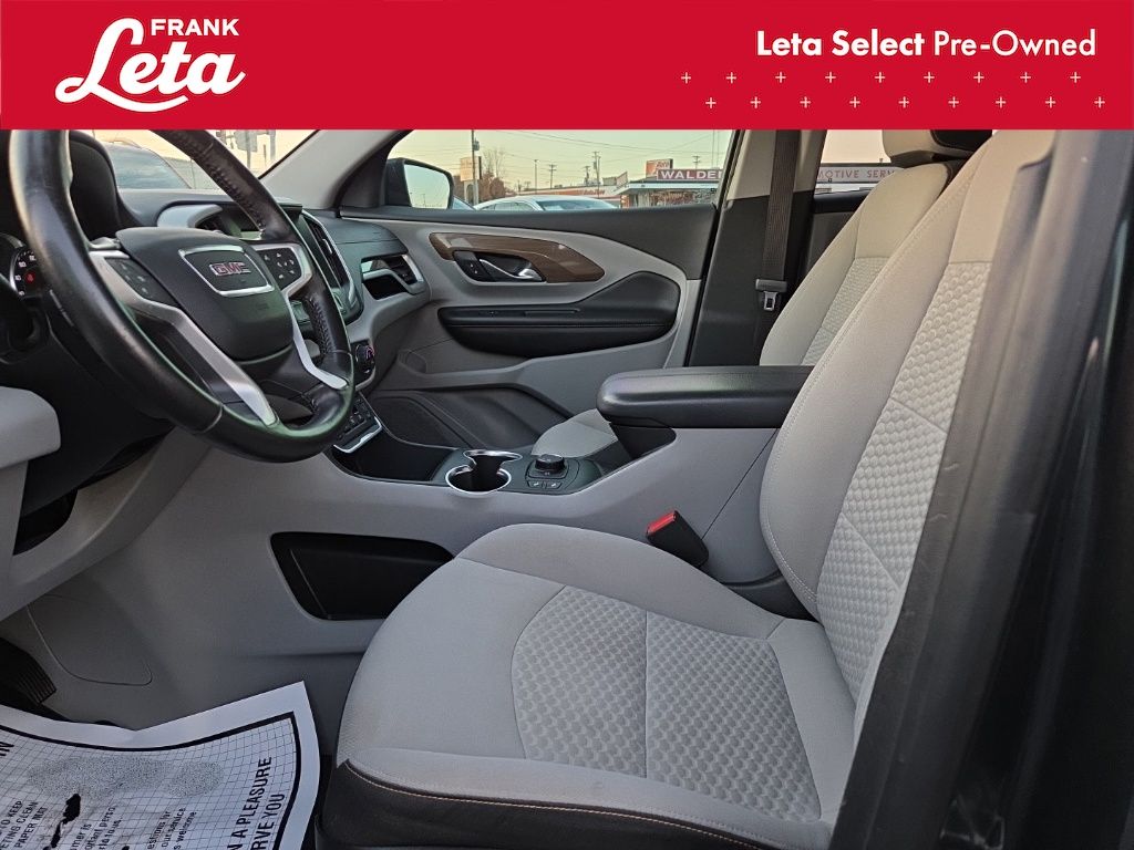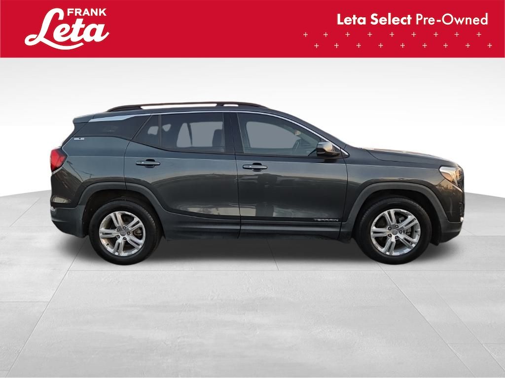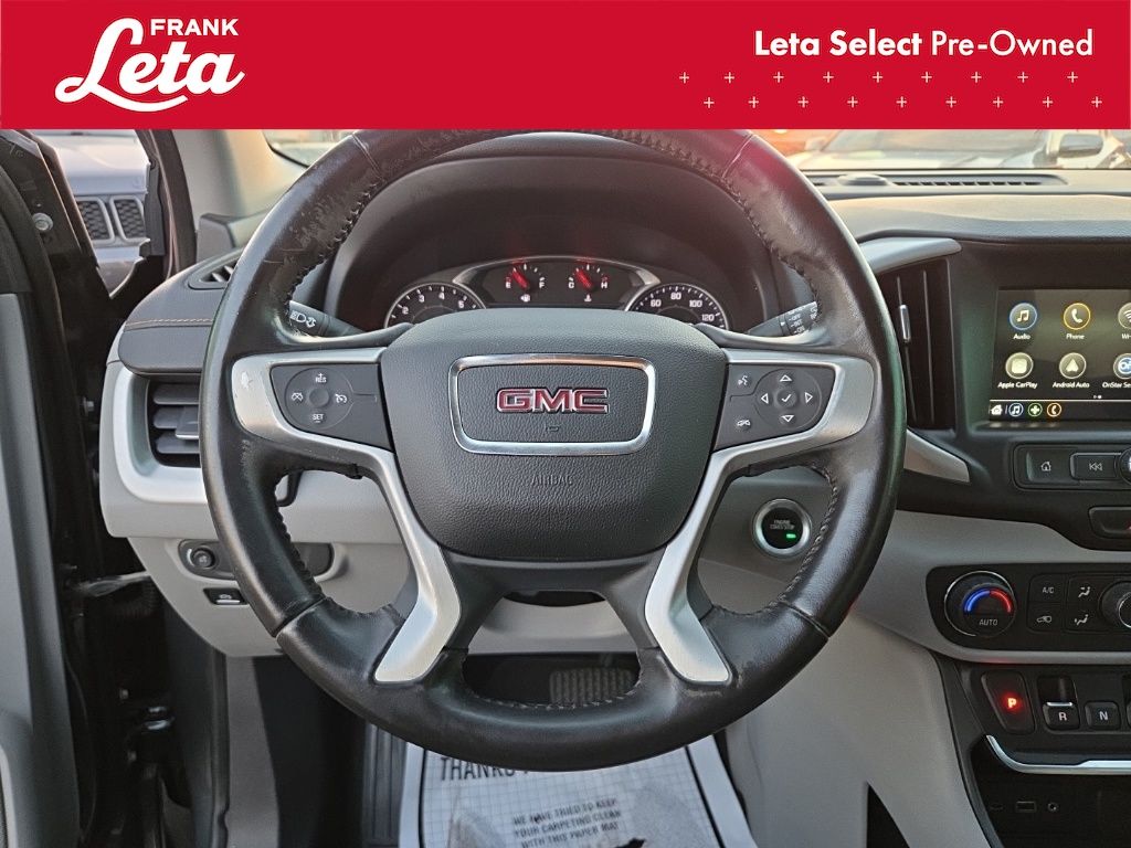 2019 GMC Terrain SLE Graphite Gray Metallic Terrain SLE, Frank Leta Select Certified, Graphite Gray Metallic, Medium Ash Gray/Jet Black Cloth, Apple CarPlay/Android Auto, Auto-dimming Rear-View mirror, Bluetooth For Phone, Dual-Zone Automatic Climate Control, Exterior Parking Camera Rear, Fully automatic headlights, Heated door mirrors, High-Intensity Discharge Headlights, Remote Start, Wheels: 17" x 7" Silver Painted Aluminum, 2 USB Data Ports w/Auxiliary Input Jack, 3.47 Axle Ratio, 4-Way Manual Driver's Seat, 4-Way Manual Front Passenger Seat, 4-Wheel Disc Brakes, 6 Speakers, 6-Speaker Audio System Feature, 8-Way Power Driver Seat Adjuster, ABS brakes, Air Conditioning, AM/FM radio, Brake assist, Bumpers: body-color, Compass, Delay-off headlights, Driver & Front Passenger Heated Seats, Driver Convenience Package, Driver door bin, Driver vanity mirror, Dual front impact airbags, Dual front side impact airbags, Electronic Stability Control, Emergency communication system, Four wheel independent suspension, Front anti-roll bar, Front Bucket Seats, Front Center Armrest, Front reading lights, Illuminated entry, License Plate Front Mounting Package, Low tire pressure warning, Occupant sensing airbag, Outside temperature display, Overhead airbag, Overhead console, Panic alarm, Passenger door bin, Passenger vanity mirror, Power door mirrors, Power Driver Lumbar Control, Power steering, Power windows, Preferred Equipment Group 3SA, Premium Cloth Seat Trim, Radio data system, Radio: GMC Infotainment Audio System w/7" Display, Rear anti-roll bar, Rear seat center armrest, Rear window defroster, Rear window wiper, Remote keyless entry, Roof-Mounted Luggage Rack Black Side Rails, Security system, Speed control, Speed-sensing steering, Split folding rear seat, Spoiler, Steering wheel mounted audio controls, Tachometer, Telescoping steering wheel, Tilt steering wheel, Traction control, Trip computer, Variably intermittent wipers, Terrain SLE, Graphite Gray Metallic, Medium Ash Gray/Jet Black Cloth, Apple CarPlay/Android Auto, Auto-dimming Rear-View mirror, Bluetooth For Phone, Dual-Zone Automatic Climate Control, Exterior Parking Camera Rear, Fully automatic headlights, Heated door mirrors, High-Intensity Discharge Headlights, Remote Start, Wheels: 17" x 7" Silver Painted Aluminum. 1.5L DOHC 9-Speed Automatic FWD 4D Sport Utility 26/30 City/Highway MPG Awards:
