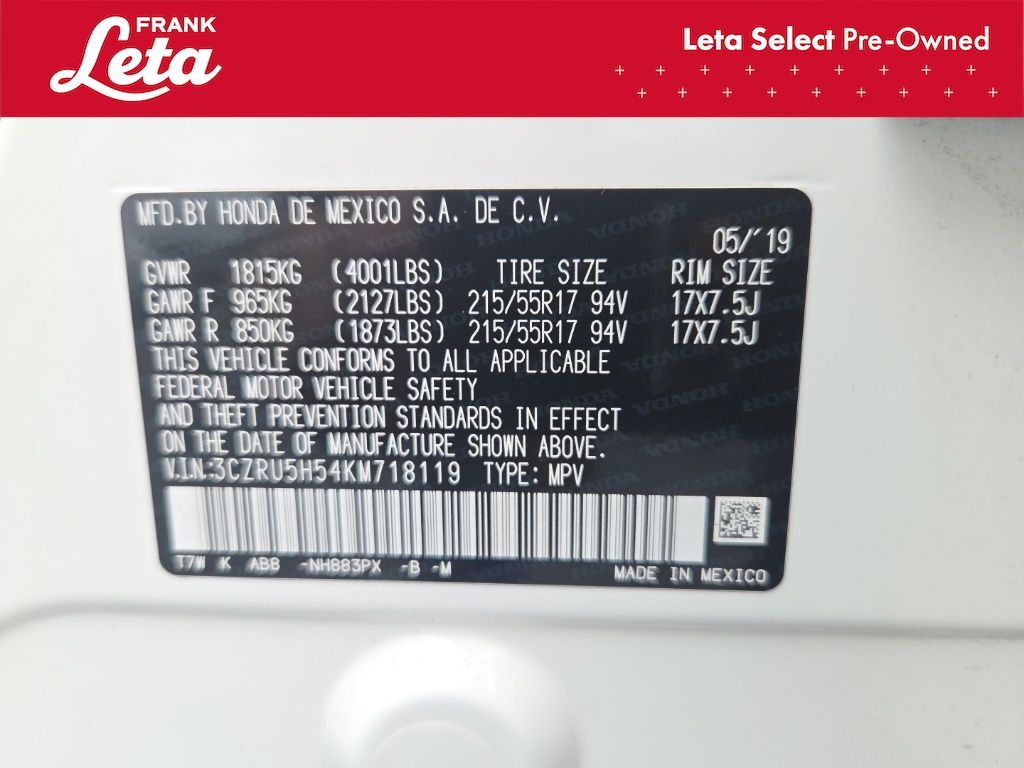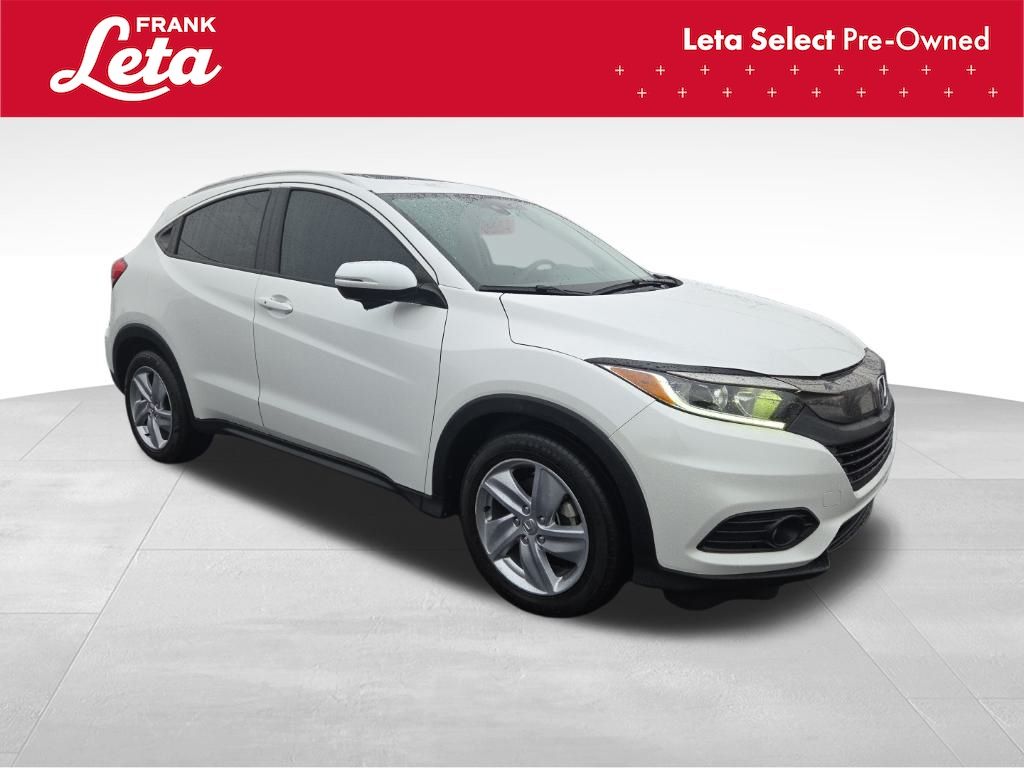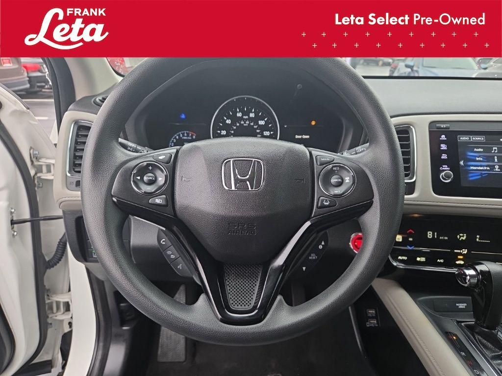2019 Honda HR-V EX Platinum White Pearl HR-V EX, Frank Leta Select Certified, Platinum White Pearl, Black w/Cloth Seat Trim, Apple CarPlay/Android Auto, Forward collision: Collision Mitigation Braking System (CMBS) + FCW mitigation, Front fog lights, Fully automatic headlights, Heated door mirrors, Heated front seats, Lane departure: Lane Keeping Assist System (LKAS) active, Power moonroof, Wheels: 17" Unique Silver-Painted Alloy, 4-Wheel Disc Brakes, 5.436 Axle Ratio, 6 Speakers, ABS brakes, Air Conditioning, AM/FM radio: SiriusXM, Automatic temperature control, Brake assist, Bumpers: body-color, Cloth Seat Trim, Delay-off headlights, Driver door bin, Driver vanity mirror, Dual front impact airbags, Dual front side impact airbags, Electronic Stability Control, Emergency communication system, Exterior Parking Camera Rear, Front anti-roll bar, Front Bucket Seats, Front Center Armrest, Front reading lights, Front wheel independent suspension, Heated Front Bucket Seats, Illuminated entry, Low tire pressure warning, Occupant sensing airbag, Outside temperature display, Overhead airbag, Panic alarm, Passenger door bin, Passenger vanity mirror, Power door mirrors, Power steering, Power windows, Radio data system, Radio: AM/FM/HD Audio System (180-Watt), Rear window defroster, Rear window wiper, Remote keyless entry, Roof rack: rails only, Security system, SiriusXM Radio, Speed control, Speed-sensing steering, Split folding rear seat, Spoiler, Steering wheel mounted audio controls, Tachometer, Telescoping steering wheel, Tilt steering wheel, Traction control, Trip computer, Turn signal indicator mirrors, Variably intermittent wipers, HR-V EX, Platinum White Pearl, Black w/Cloth Seat Trim, Apple CarPlay/Android Auto, Forward collision: Collision Mitigation Braking System (CMBS) + FCW mitigation, Front fog lights, Fully automatic headlights, Heated door mirrors, Heated front seats, Lane departure: Lane Keeping Assist System (LKAS) active, Power moonroof, Wheels: 17" Unique Silver-Painted Alloy. 1.8L I4 SOHC 16V i-VTEC CVT FWD 4D Sport Utility 28/34 City/Highway MPG