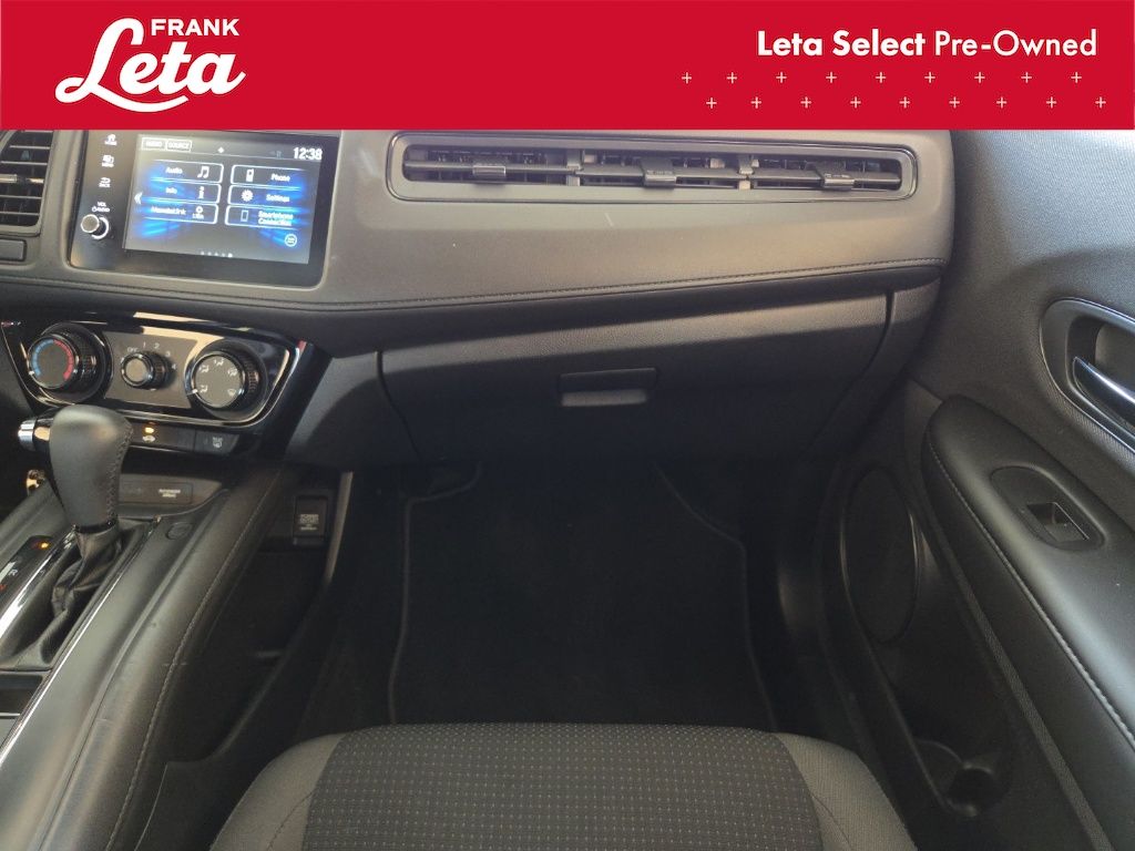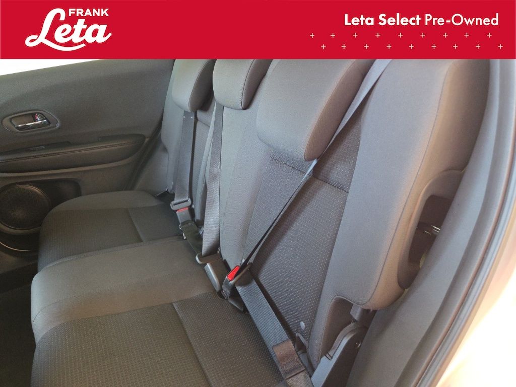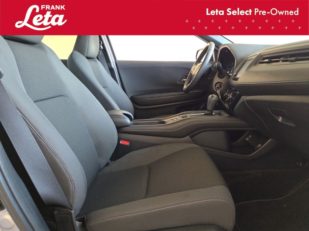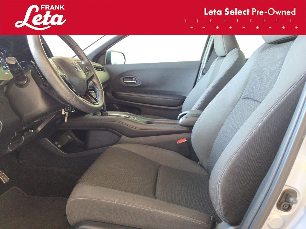 2019 Honda HR-V Sport Lunar Silver Metallic HR-V Sport, Frank Leta Select Certified, 1.8L I4 SOHC 16V i-VTEC, Lunar Silver Metallic, Black w/Cloth Seat Trim, 18" Machine-Finished Alloy Wheels, Apple CarPlay/Android Auto, Exterior Parking Camera Rear, Front fog lights, Fully automatic headlights, Panic alarm, 4-Wheel Disc Brakes, 5.436 Axle Ratio, 6 Speakers, ABS brakes, Air Conditioning, AM/FM radio, Brake assist, Bumpers: body-color, Cloth Seat Trim, Driver door bin, Driver vanity mirror, Dual front impact airbags, Dual front side impact airbags, Electronic Stability Control, Emergency communication system, Front anti-roll bar, Front Bucket Seats, Front Center Armrest, Front reading lights, Front wheel independent suspension, Illuminated entry, Low tire pressure warning, Occupant sensing airbag, Outside temperature display, Overhead airbag, Passenger door bin, Passenger vanity mirror, Power door mirrors, Power steering, Power windows, Radio data system, Radio: AM/FM Stereo Audio System (180-Watt), Rear window defroster, Rear window wiper, Remote keyless entry, Roof rack: rails only, Security system, Speed control, Speed-sensing steering, Split folding rear seat, Spoiler, Steering wheel mounted audio controls, Tachometer, Telescoping steering wheel, Tilt steering wheel, Traction control, Trip computer, HR-V Sport, 1.8L I4 SOHC 16V i-VTEC, Lunar Silver Metallic, Black w/Cloth Seat Trim, 18" Machine-Finished Alloy Wheels, Apple CarPlay/Android Auto, Exterior Parking Camera Rear, Front fog lights, Fully automatic headlights, Panic alarm. 1.8L I4 SOHC 16V i-VTEC CVT FWD 4D Sport Utility Odometer is 30001 miles below market average! 28/34 City/Highway MPG