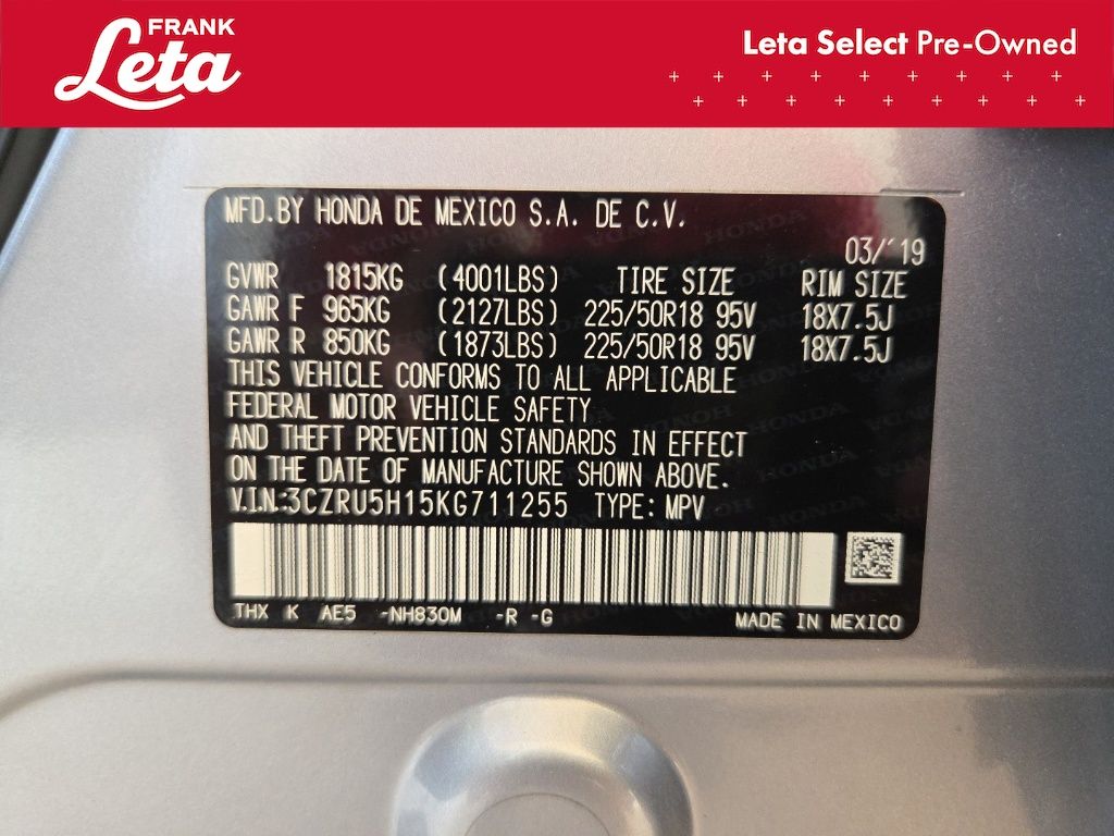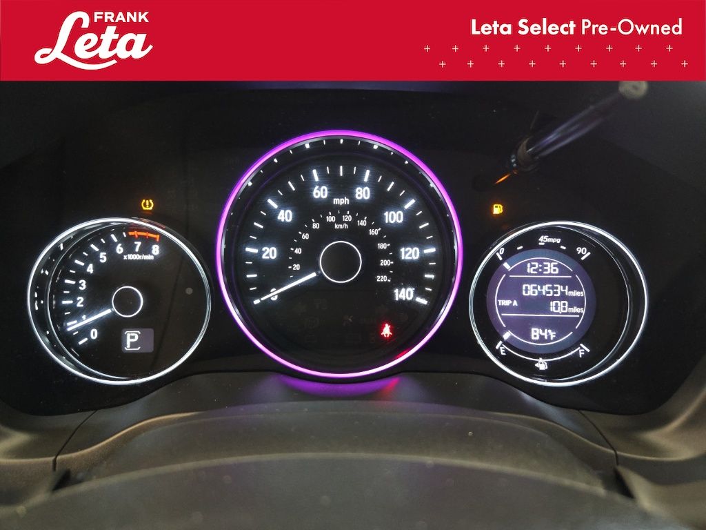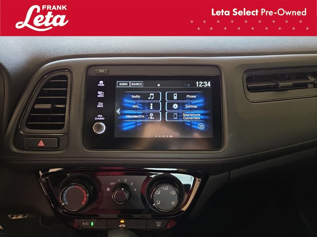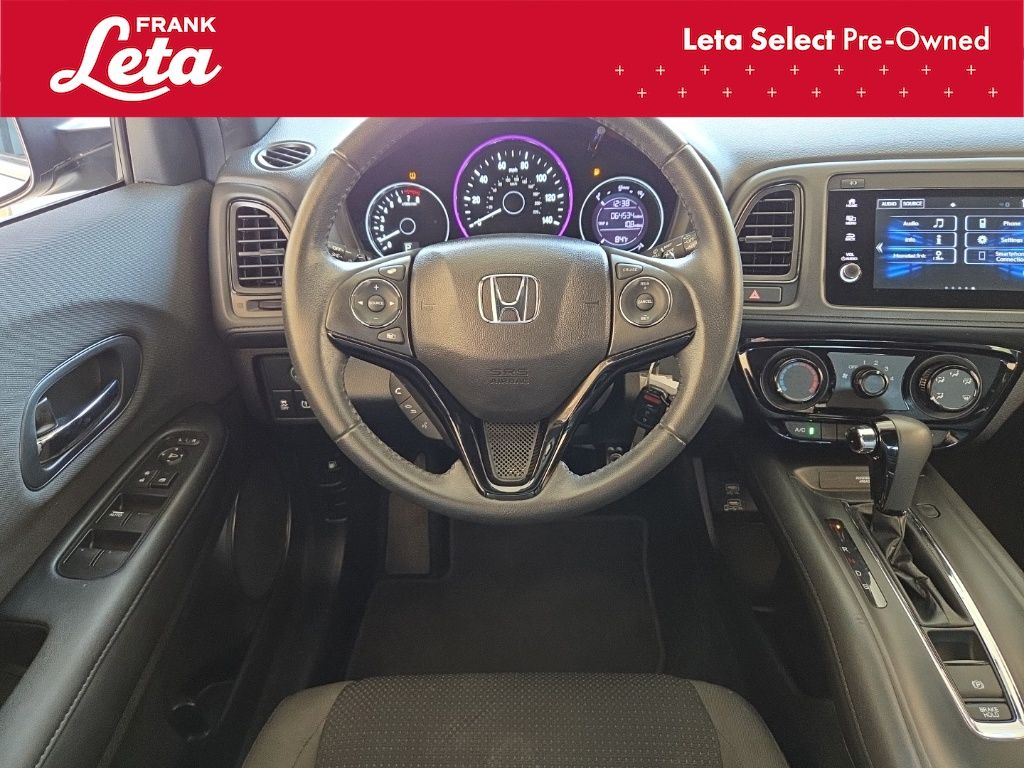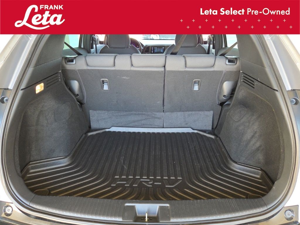 2019 Honda HR-V Sport Lunar Silver Metallic HR-V Sport, Frank Leta Select Certified, 1.8L I4 SOHC 16V i-VTEC, Lunar Silver Metallic, Black w/Cloth Seat Trim, 18" Machine-Finished Alloy Wheels, Apple CarPlay/Android Auto, Exterior Parking Camera Rear, Front fog lights, Fully automatic headlights, Panic alarm, 4-Wheel Disc Brakes, 5.436 Axle Ratio, 6 Speakers, ABS brakes, Air Conditioning, AM/FM radio, Brake assist, Bumpers: body-color, Cloth Seat Trim, Driver door bin, Driver vanity mirror, Dual front impact airbags, Dual front side impact airbags, Electronic Stability Control, Emergency communication system, Front anti-roll bar, Front Bucket Seats, Front Center Armrest, Front reading lights, Front wheel independent suspension, Illuminated entry, Low tire pressure warning, Occupant sensing airbag, Outside temperature display, Overhead airbag, Passenger door bin, Passenger vanity mirror, Power door mirrors, Power steering, Power windows, Radio data system, Radio: AM/FM Stereo Audio System (180-Watt), Rear window defroster, Rear window wiper, Remote keyless entry, Roof rack: rails only, Security system, Speed control, Speed-sensing steering, Split folding rear seat, Spoiler, Steering wheel mounted audio controls, Tachometer, Telescoping steering wheel, Tilt steering wheel, Traction control, Trip computer, HR-V Sport, 1.8L I4 SOHC 16V i-VTEC, Lunar Silver Metallic, Black w/Cloth Seat Trim, 18" Machine-Finished Alloy Wheels, Apple CarPlay/Android Auto, Exterior Parking Camera Rear, Front fog lights, Fully automatic headlights, Panic alarm. 1.8L I4 SOHC 16V i-VTEC CVT FWD 4D Sport Utility Odometer is 30001 miles below market average! 28/34 City/Highway MPG