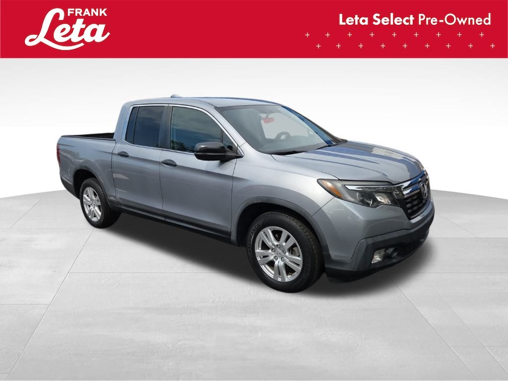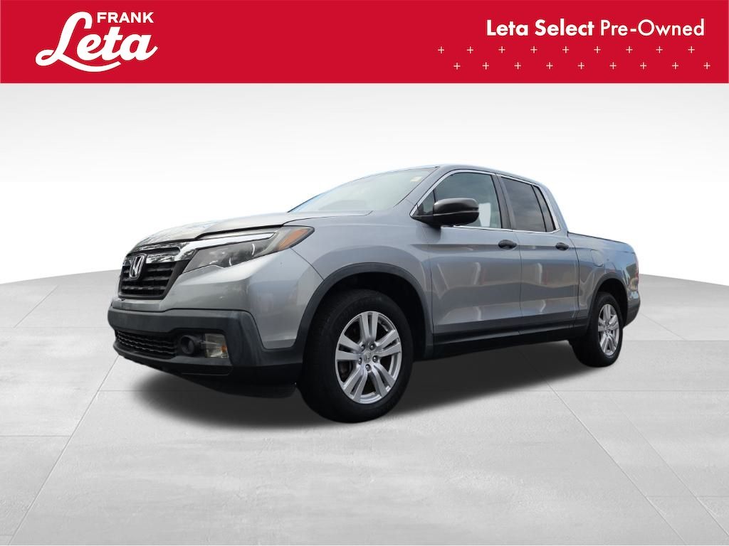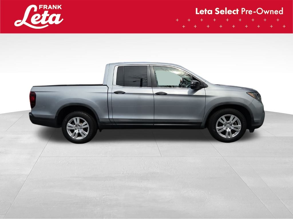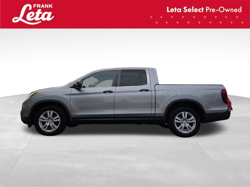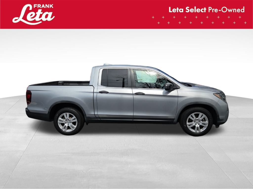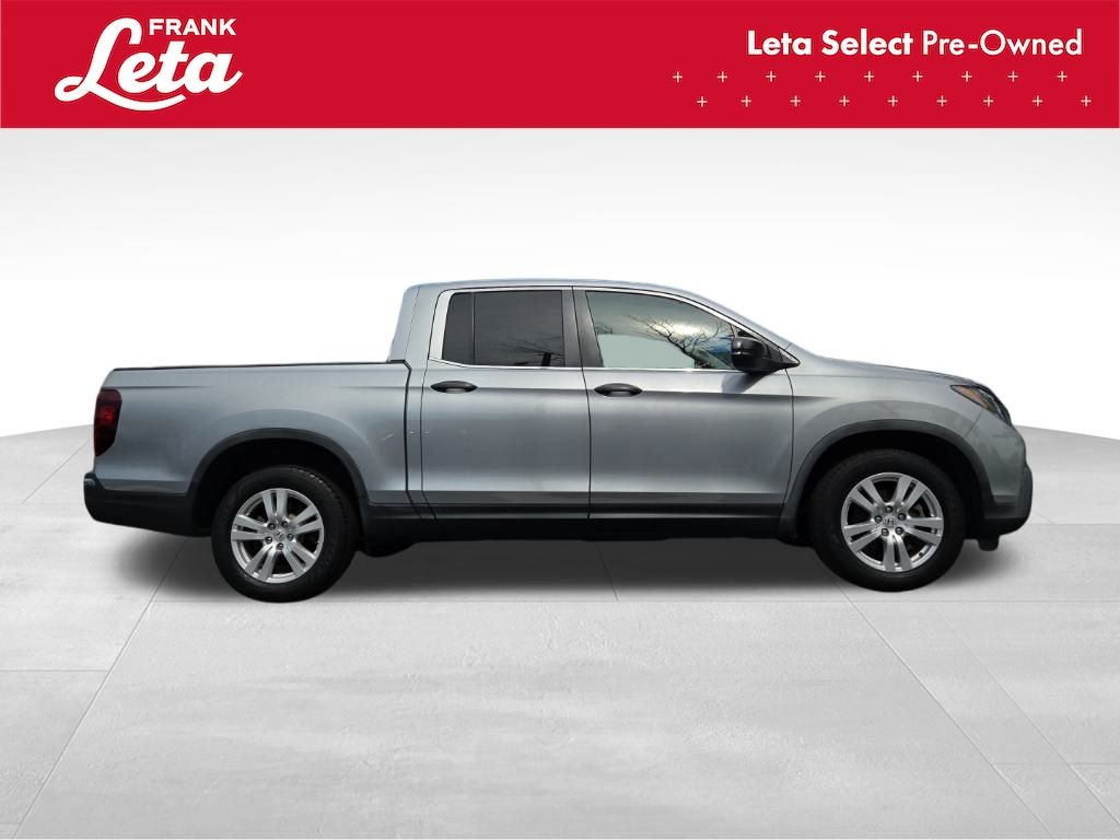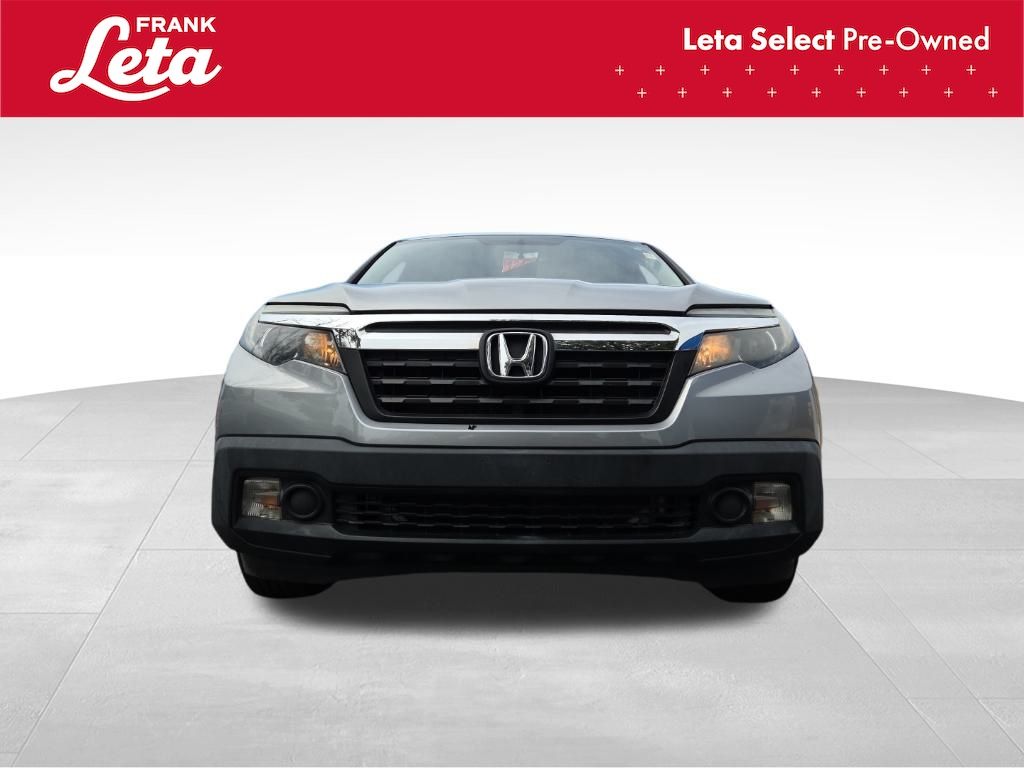 2019 Honda Ridgeline RT Lunar Silver Metallic Ridgeline RT, Frank Leta Select Certified, 3.5L V6 SOHC i-VTEC 24V, Lunar Silver Metallic, Black w/Cloth Seat Trim, Bluetooth Hands-Free Link, Exterior Parking Camera Rear, Fully automatic headlights, Wheels: 18" Silver-Painted Alloy, 4-Wheel Disc Brakes, 4.25 Axle Ratio, 7 Speakers, ABS brakes, Air Conditioning, AM/FM radio, Brake assist, Bumpers: body-color, Cloth Seat Trim, Delay-off headlights, Driver door bin, Driver vanity mirror, Driver's Seat Mounted Armrest, Dual front impact airbags, Dual front side impact airbags, Electronic Stability Control, Four wheel independent suspension, Front anti-roll bar, Front Bucket Seats, Front reading lights, Illuminated entry, Low tire pressure warning, Occupant sensing airbag, Overhead airbag, Overhead console, Panic alarm, Passenger door bin, Passenger seat mounted armrest, Passenger vanity mirror, Power door mirrors, Power steering, Power windows, Radio data system, Radio: AM/FM/MP3, Rear anti-roll bar, Rear reading lights, Rear seat center armrest, Rear step bumper, Rear window defroster, Remote keyless entry, Security system, Speed control, Speed-sensing steering, Split folding rear seat, Steering wheel mounted audio controls, Tachometer, Telescoping steering wheel, Tilt steering wheel, Traction control, Trip computer, Variably intermittent wipers, Ridgeline RT, 3.5L V6 SOHC i-VTEC 24V, Lunar Silver Metallic, Black w/Cloth Seat Trim, Bluetooth Hands-Free Link, Exterior Parking Camera Rear, Fully automatic headlights, Wheels: 18" Silver-Painted Alloy. 3.5L V6 SOHC i-VTEC 24V 6-Speed Automatic FWD 4D Crew Cab 19/26 City/Highway MPG