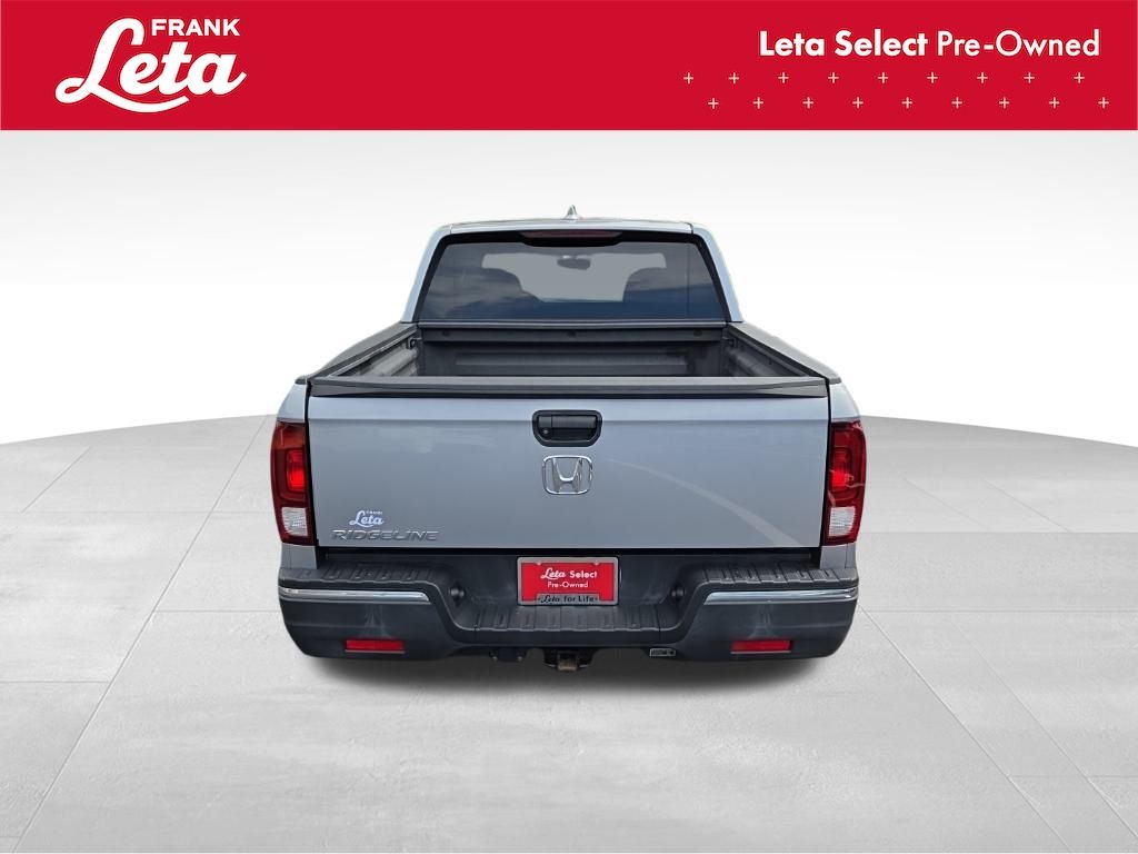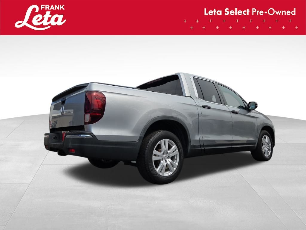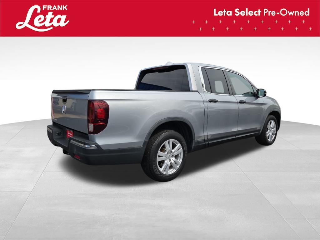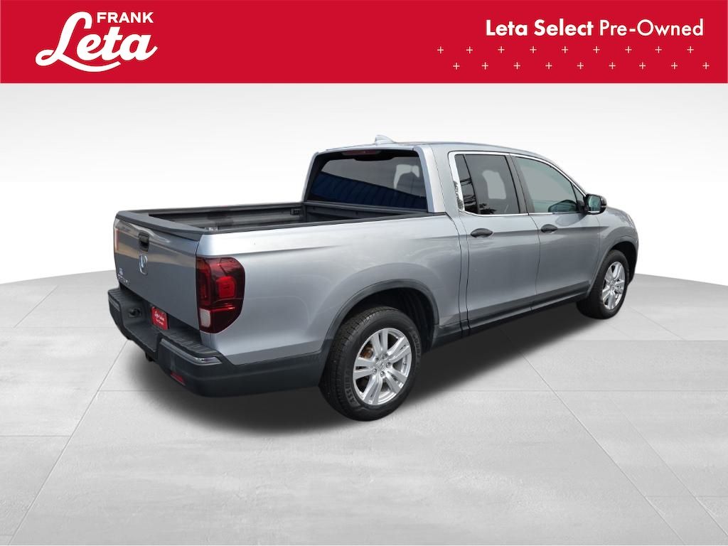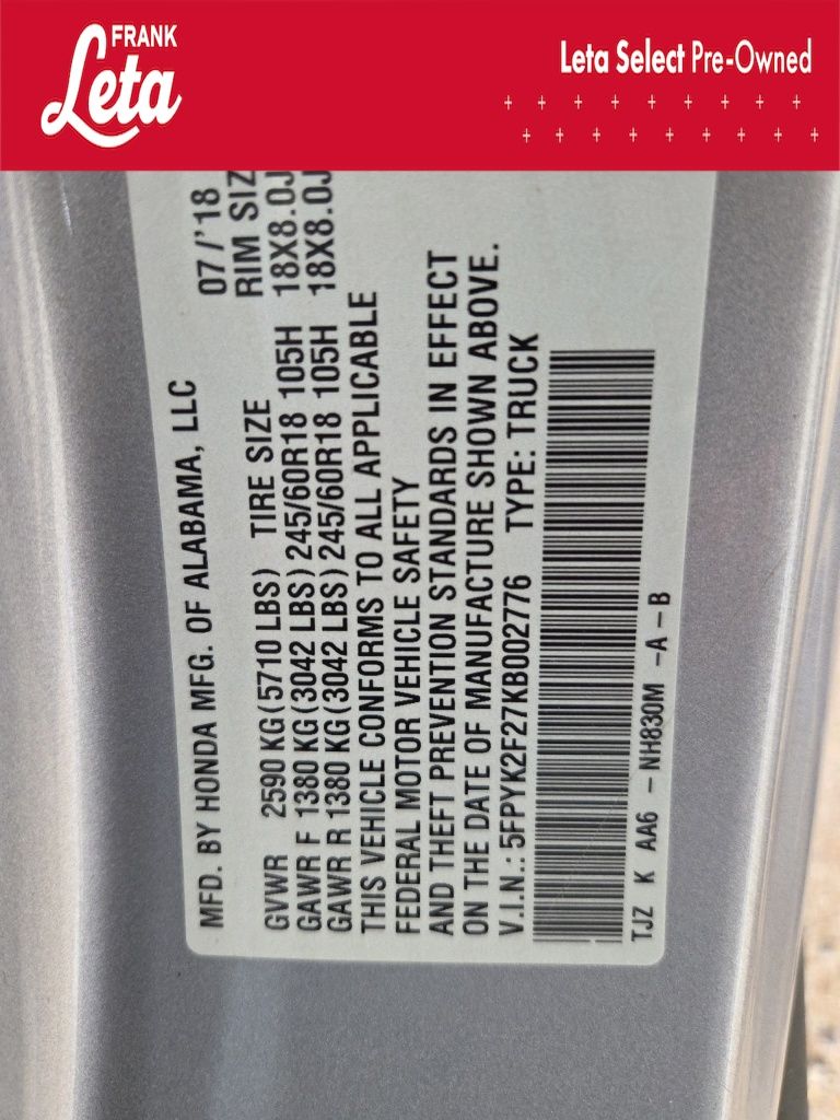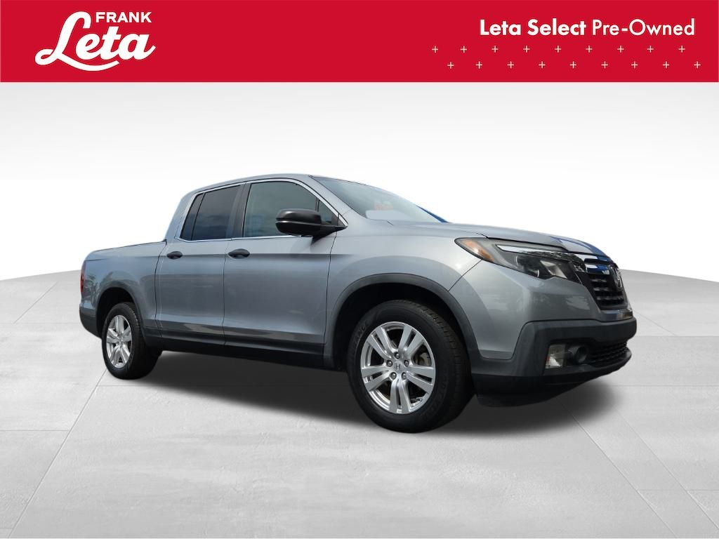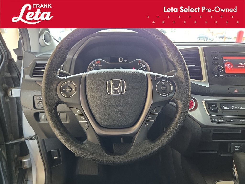 2019 Honda Ridgeline RT Lunar Silver Metallic Ridgeline RT, Frank Leta Select Certified, 3.5L V6 SOHC i-VTEC 24V, Lunar Silver Metallic, Black w/Cloth Seat Trim, Bluetooth Hands-Free Link, Exterior Parking Camera Rear, Fully automatic headlights, Wheels: 18" Silver-Painted Alloy, 4-Wheel Disc Brakes, 4.25 Axle Ratio, 7 Speakers, ABS brakes, Air Conditioning, AM/FM radio, Brake assist, Bumpers: body-color, Cloth Seat Trim, Delay-off headlights, Driver door bin, Driver vanity mirror, Driver's Seat Mounted Armrest, Dual front impact airbags, Dual front side impact airbags, Electronic Stability Control, Four wheel independent suspension, Front anti-roll bar, Front Bucket Seats, Front reading lights, Illuminated entry, Low tire pressure warning, Occupant sensing airbag, Overhead airbag, Overhead console, Panic alarm, Passenger door bin, Passenger seat mounted armrest, Passenger vanity mirror, Power door mirrors, Power steering, Power windows, Radio data system, Radio: AM/FM/MP3, Rear anti-roll bar, Rear reading lights, Rear seat center armrest, Rear step bumper, Rear window defroster, Remote keyless entry, Security system, Speed control, Speed-sensing steering, Split folding rear seat, Steering wheel mounted audio controls, Tachometer, Telescoping steering wheel, Tilt steering wheel, Traction control, Trip computer, Variably intermittent wipers, Ridgeline RT, 3.5L V6 SOHC i-VTEC 24V, Lunar Silver Metallic, Black w/Cloth Seat Trim, Bluetooth Hands-Free Link, Exterior Parking Camera Rear, Fully automatic headlights, Wheels: 18" Silver-Painted Alloy. 3.5L V6 SOHC i-VTEC 24V 6-Speed Automatic FWD 4D Crew Cab 19/26 City/Highway MPG