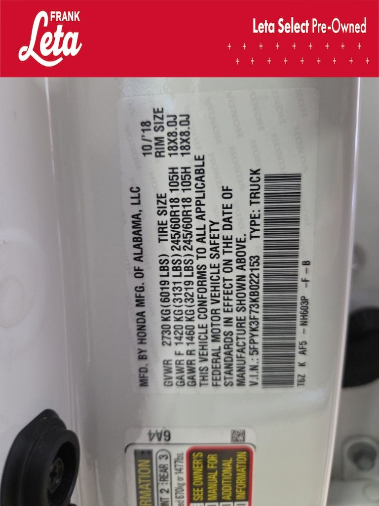 - VIN : 5FPYK3F73KB022153