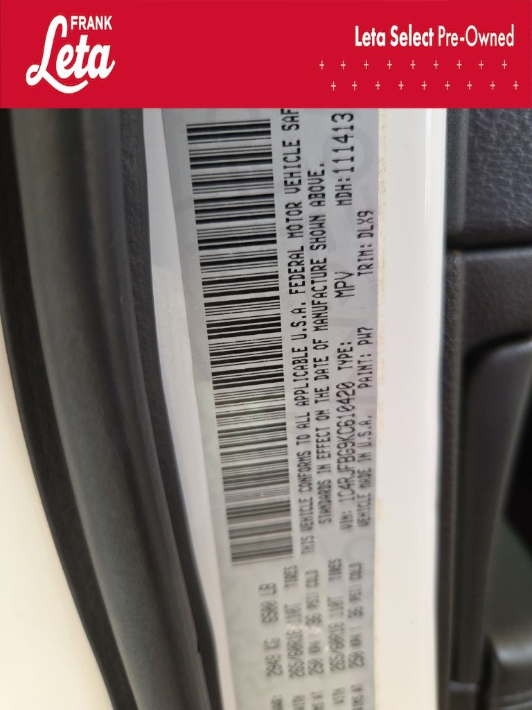 2019 Jeep Grand Cherokee Limited Bright White Clearcoat Grand Cherokee Limited, Frank Leta Select Certified, 3.6L V6 24V VVT, 8-Speed Automatic, 4WD, Bright White Clearcoat, Black Leather, 8.4" Touchscreen Display, Apple CarPlay/Android Auto, Auto-dimming door mirrors, Auto-dimming Rear-View mirror, Bi-Xenon High-Intensity Discharge Headlamps, Dual-Pane Panoramic Sunroof, Front dual zone A/C, Front fog lights, Fully automatic headlights, Garage door transmitter, Heated front seats, Heated Second Row Seats, Heated steering wheel, Memory seat, Navigation System, ParkView Rear Back-Up Camera, Power Liftgate, Radio: Uconnect 4C Nav w/8.4" Display, Ventilated Front Seats, Wheels: 18" x 8.0" Tech Gray Aluminum, 3.45 Rear Axle Ratio, 4-Wheel Disc Brakes, 506 Watt Amplifier, 6 Speakers, ABS brakes, Active Noise Control System, Air Conditioning, AM/FM radio: SiriusXM, Anti-whiplash front head restraints, Audio memory, Auto High Beam Headlamp Control, Automatic temperature control, Brake assist, Bumpers: body-color, Cargo Compartment Cover, Chrome Exterior Mirrors, Compass, Delay-off headlights, Driver door bin, Driver vanity mirror, Dual front impact airbags, Dual front side impact airbags, Electronic Stability Control, Emergency communication system: SiriusXM Guardian, Four wheel independent suspension, Front anti-roll bar, Front Bucket Seats, Front Center Armrest w/Storage, Front LED Fog Lamps, Front License Plate Bracket, Front reading lights, Heated door mirrors, Illuminated entry, Knee airbag, Leather Shift Knob, Leather Trimmed Bucket Seats, Leather Trimmed Seats w/Perforated Inserts, LED Daytime Running Headlamps, Low tire pressure warning, Luxury Group II, Manufacturer's Statement of Origin, Normal Duty Suspension, Occupant sensing airbag, Outside temperature display, Overhead airbag, Overhead console, Panic alarm, Passenger door bin, Passenger vanity mirror, Power door mirrors, Power driver seat, Power passenger seat, Power steering, Power Tilt/Telescope Steering Column, Power windows, Premium Alpine Speaker System, Quick Order Package 2BH, Radio data system, Rain Sensitive Windshield Wipers, Rear anti-roll bar, Rear reading lights, Rear seat center armrest, Rear window defroster, Rear window wiper, Remote keyless entry, Roof rack: rails only, Security system, Speed control, Speed-sensing steering, Speed-Sensitive Wipers, Split folding rear seat, Spoiler, Steering wheel mounted audio controls, Tachometer, Telescoping steering wheel, Tilt steering wheel, Traction control, Trip computer, Turn signal indicator mirrors, Variably intermittent wipers, Voltmeter, Grand Cherokee Limited, 3.6L V6 24V VVT, 8-Speed Automatic, 4WD, Bright White Clearcoat, Black Leather, 8.4" Touchscreen Display, Apple CarPlay/Android Auto, Auto-dimming door mirrors, Auto-dimming Rear-View mirror, Bi-Xenon High-Intensity Discharge Headlamps, Dual-Pane Panoramic Sunroof, Front dual zone A/C, Front fog lights, Fully automatic headlights, Garage door transmitter, Heated front seats, Heated Second Row Seats, Heated steering wheel, Memory seat, Navigation System, ParkView Rear Back-Up Camera, Power Liftgate, Radio: Uconnect 4C Nav w/8.4" Display, Ventilated Front Seats, Wheels: 18" x 8.0" Tech Gray Aluminum. 3.6L V6 24V VVT 8-Speed Automatic 4WD 4D Sport Utility