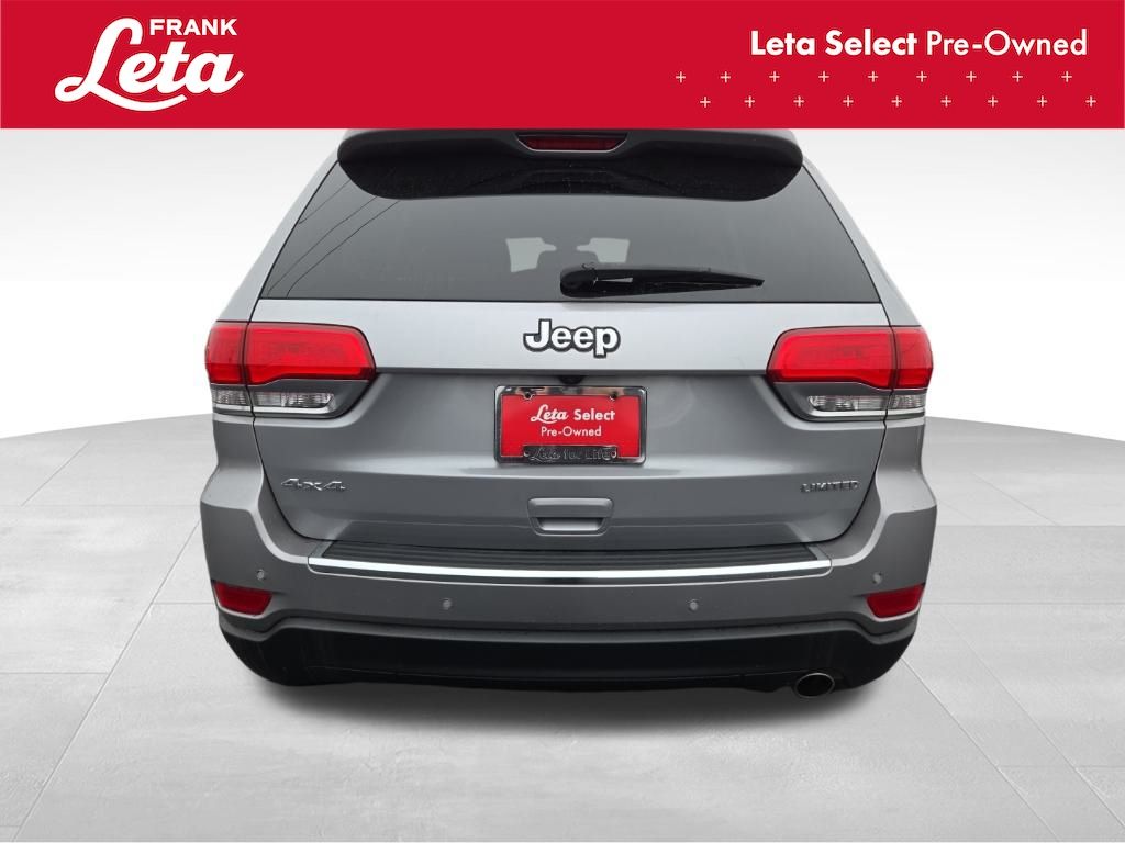 2019 Jeep Grand Cherokee Limited Billet Silver Metallic Clearcoat Grand Cherokee Limited, Frank Leta Select Certified, 3.6L V6 24V VVT, 4WD, Billet Silver Metallic Clearcoat, Black w/Leather Trim Seats w/Edge Welting or Nappa Leather Trimmed Bucket Seats, 8.4" Touchscreen Display, Front dual zone A/C, Front fog lights, Fully automatic headlights, Garage door transmitter, Heated door mirrors, Heated front seats, Heated steering wheel, Memory seat, Navigation System, ParkView Rear Back-Up Camera, Power Liftgate, Power Sunroof, Radio: Uconnect 4C Nav w/8.4" Display, Wheels: 18" x 8.0" Tech Gray Aluminum, 3.45 Rear Axle Ratio, 4-Wheel Disc Brakes, 6 Speakers, ABS brakes, Air Conditioning, AM/FM radio: SiriusXM, Anti-whiplash front head restraints, Apple CarPlay/Android Auto, Audio memory, Auto-dimming door mirrors, Auto-dimming Rear-View mirror, Automatic temperature control, Brake assist, Bumpers: body-color, Chrome Exterior Mirrors, Compass, Delay-off headlights, Driver door bin, Driver vanity mirror, Dual front impact airbags, Dual front side impact airbags, Electronic Stability Control, Emergency communication system: SiriusXM Guardian, Four wheel independent suspension, Front anti-roll bar, Front Bucket Seats, Front Center Armrest w/Storage, Front reading lights, Illuminated entry, Knee airbag, Leather Shift Knob, Leather Trimmed Bucket Seats, Low tire pressure warning, Normal Duty Suspension, Occupant sensing airbag, Outside temperature display, Overhead airbag, Overhead console, Panic alarm, Passenger door bin, Passenger vanity mirror, Power door mirrors, Power driver seat, Power passenger seat, Power steering, Power windows, Quick Order Package 2BH, Radio data system, Rear anti-roll bar, Rear reading lights, Rear seat center armrest, Rear window defroster, Rear window wiper, Remote keyless entry, Roof rack: rails only, Security system, Speed control, Speed-sensing steering, Speed-Sensitive Wipers, Split folding rear seat, Spoiler, Steering wheel mounted audio controls, Tachometer, Telescoping steering wheel, Tilt steering wheel, Traction control, Trip computer, Turn signal indicator mirrors, Variably intermittent wipers, Voltmeter, Grand Cherokee Limited, 3.6L V6 24V VVT, 4WD, Billet Silver Metallic Clearcoat, Black w/Leather Trim Seats w/Edge Welting or Nappa Leather Trimmed Bucket Seats, 8.4" Touchscreen Display, Front dual zone A/C, Front fog lights, Fully automatic headlights, Garage door transmitter, Heated door mirrors, Heated front seats, Heated steering wheel, Memory seat, Navigation System, ParkView Rear Back-Up Camera, Power Liftgate, Power Sunroof, Radio: Uconnect 4C Nav w/8.4" Display, Wheels: 18" x 8.0" Tech Gray Aluminum. 3.6L V6 24V VVT 8-Speed Automatic 4WD 4D Sport Utility