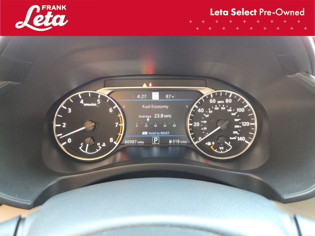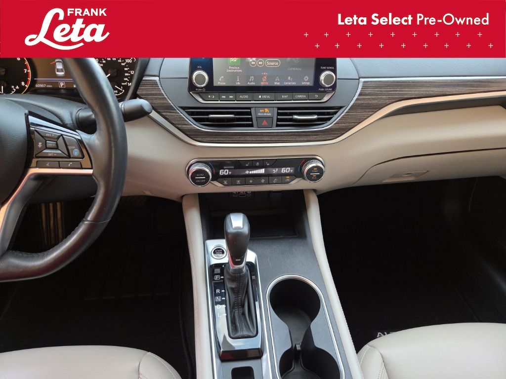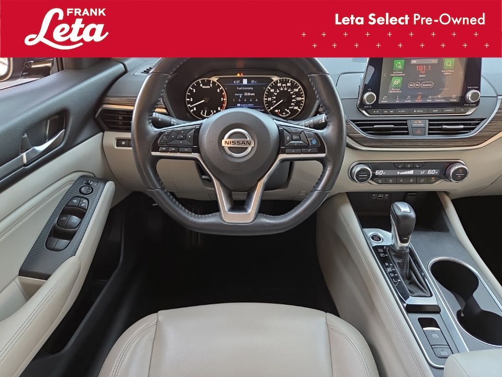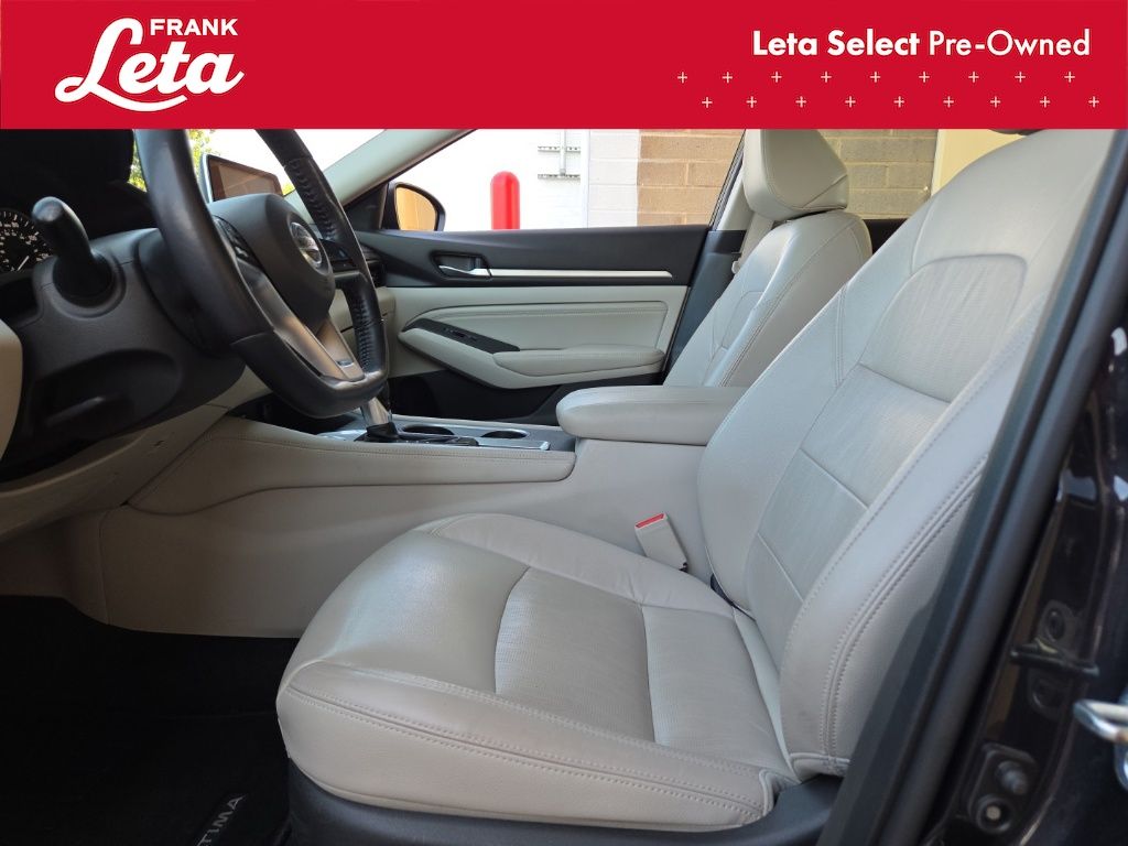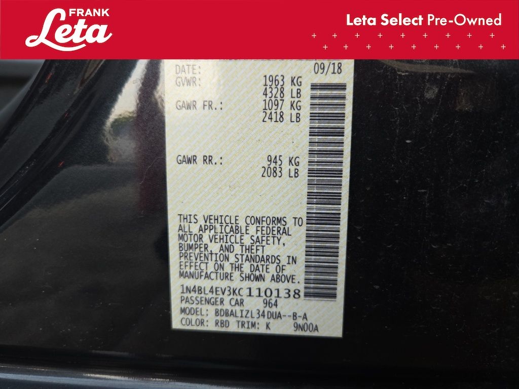CARFAX One-Owner. 2019 Nissan Altima 2.5 SL Storm Blue Metallic Altima 2.5 SL, Frank Leta Select Certified, 2.5L 4-Cylinder DOHC 16V, Storm Blue Metallic, Light Gray Leather, 17" Alloy Wheels, Auto-dimming Rear-View mirror, Blind Spot Warning, Front dual zone A/C, Front fog lights, Fully automatic headlights, Garage door transmitter: HomeLink, Heated front seats, Heated steering wheel, Leather-Appointed Seat Trim, Navigation System, NissanConnect featuring Apple CarPlay and Android Auto, Power moonroof, 4-Wheel Disc Brakes, 9 Speakers, ABS brakes, Air Conditioning, AM/FM radio: SiriusXM, Auto High-beam Headlights, Automatic temperature control, Body-Colored Splash Guards, Brake assist, Bumpers: body-color, Compass, Delay-off headlights, Driver door bin, Driver vanity mirror, Dual front impact airbags, Dual front side impact airbags, Electronic Stability Control, Emergency communication system: NissanConnect Services, Floor Mats/Trunk Mat/Hideaway Nets, Four wheel independent suspension, Front anti-roll bar, Front Bucket Seats, Front Center Armrest w/Storage, Front reading lights, Heated door mirrors, Heated Front Bucket Seats, Illuminated entry, Knee airbag, Leather Shift Knob, Low tire pressure warning, Occupant sensing airbag, Outside temperature display, Overhead airbag, Overhead console, Panic alarm, Passenger door bin, Passenger vanity mirror, Power door mirrors, Power driver seat, Power passenger seat, Power steering, Power windows, Radio data system, Radio: AM/FM/HD w/Bose Premium Sound System, Rear anti-roll bar, Rear reading lights, Rear seat center armrest, Rear side impact airbag, Rear window defroster, Remote keyless entry, Security system, Speed control, Speed-sensing steering, Split folding rear seat, Steering wheel mounted audio controls, Tachometer, Telescoping steering wheel, Tilt steering wheel, Traction control, Trip computer, Turn signal indicator mirrors, Variably intermittent wipers, Altima 2.5 SL, 2.5L 4-Cylinder DOHC 16V, Storm Blue Metallic, Light Gray Leather, 17" Alloy Wheels, Auto-dimming Rear-View mirror, Blind Spot Warning, Front dual zone A/C, Front fog lights, Fully automatic headlights, Garage door transmitter: HomeLink, Heated front seats, Heated steering wheel, Leather-Appointed Seat Trim, Navigation System, NissanConnect featuring Apple CarPlay and Android Auto, Power moonroof. 2.5L 4-Cylinder DOHC 16V CVT with Xtronic FWD 4D Sedan Odometer is 47040 miles below market average! 28/39 City/Highway MPG Awards: