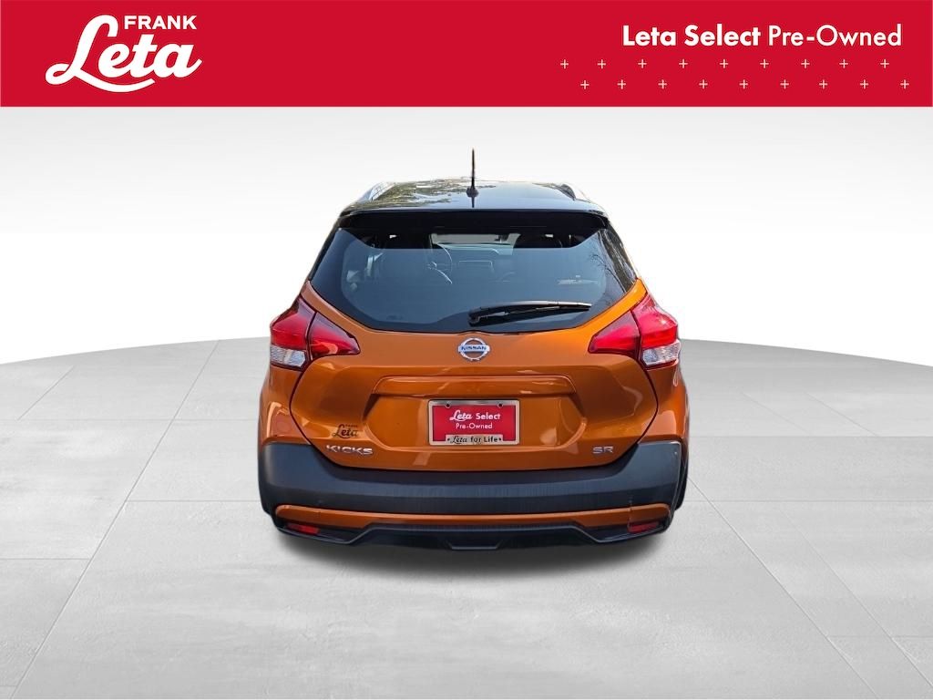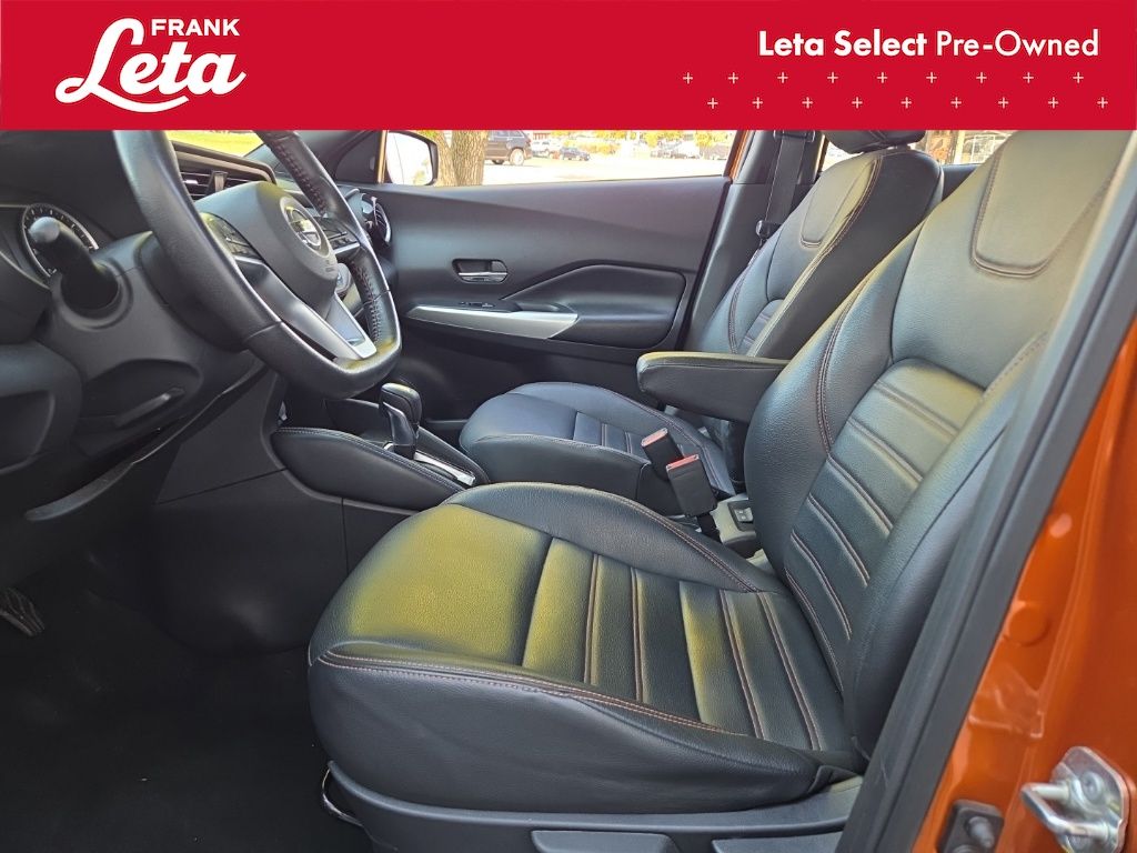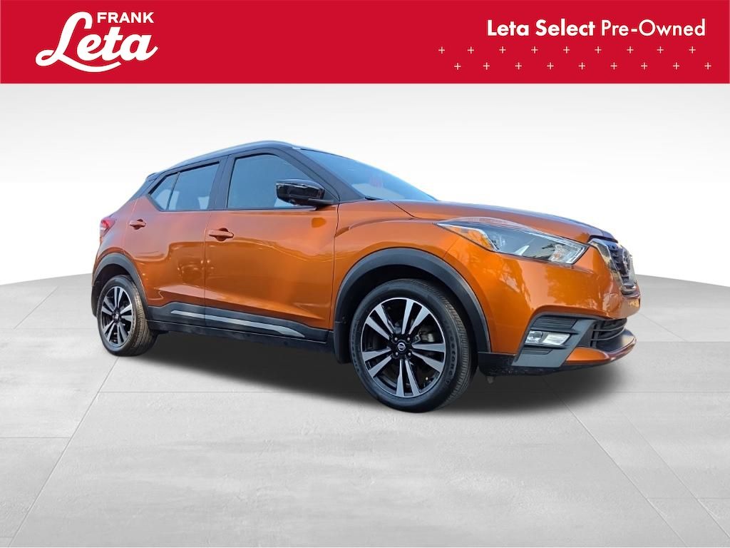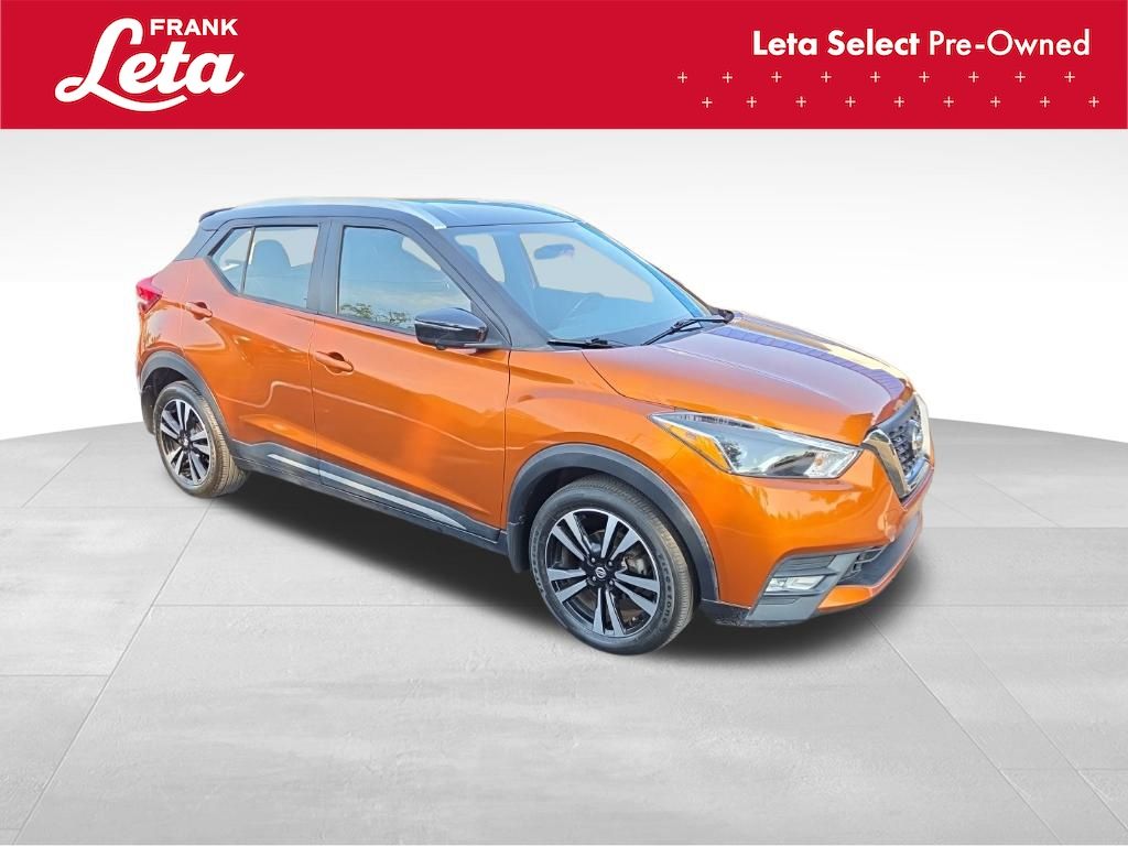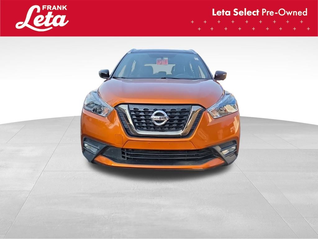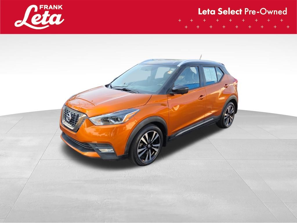 2019 Nissan Kicks SR Monarch Orange/Super Black Kicks SR, Frank Leta Select Certified, 1.6L 4-Cylinder DOHC 16V, FWD, Monarch Orange/Super Black, Charcoal w/Cloth Seat Trim or Prima-Tex Appointed Seat Trim, 17" Alloy Wheels, Blind Spot Warning, Bose Personal Plus Audio System, Front fog lights, Fully automatic headlights, Heated Front Seats, NissanConnect featuring Apple CarPlay and Android Auto, Prima-Tex Appointed Seat Trim, Security System, SR Premium Package, 3.927 Axle Ratio, 6 Speakers, ABS brakes, Air Conditioning, AM/FM radio: SiriusXM, Automatic temperature control, Brake assist, Bumpers: body-color, Carpeted Floor Mats w/Cargo Mat, Cloth Seat Trim, Compass, Crossbars, Delay-off headlights, Driver door bin, Driver vanity mirror, Driver's Seat Mounted Armrest, Dual front impact airbags, Dual front side impact airbags, Electronic Stability Control, Front anti-roll bar, Front Bucket Seats, Front reading lights, Front wheel independent suspension, Heated door mirrors, Illuminated entry, Knee airbag, Leather Shift Knob, Low tire pressure warning, Occupant sensing airbag, Outside temperature display, Overhead airbag, Panic alarm, Passenger door bin, Passenger vanity mirror, Power door mirrors, Power steering, Power windows, Radio data system, Radio: AM/FM Audio System, Rear reading lights, Rear Roof Spoiler, Rear window defroster, Rear window wiper, Remote keyless entry, Roof rack: rails only, Speed control, Splash Guards Grain (4 Piece), Split folding rear seat, Spoiler, Sport steering wheel, Steering wheel mounted audio controls, Tachometer, Telescoping steering wheel, Tilt steering wheel, Traction control, Trip computer, Turn signal indicator mirrors, Variably intermittent wipers, Kicks SR, 1.6L 4-Cylinder DOHC 16V, FWD, Monarch Orange/Super Black, Charcoal w/Cloth Seat Trim or Prima-Tex Appointed Seat Trim, 17" Alloy Wheels, Blind Spot Warning, Bose Personal Plus Audio System, Front fog lights, Fully automatic headlights, Heated Front Seats, NissanConnect featuring Apple CarPlay and Android Auto, Prima-Tex Appointed Seat Trim, Security System, SR Premium Package. 1.6L 4-Cylinder DOHC 16V CVT with Xtronic FWD 4D Sport Utility Odometer is 843 miles below market average! 31/36 City/Highway MPG Awards: