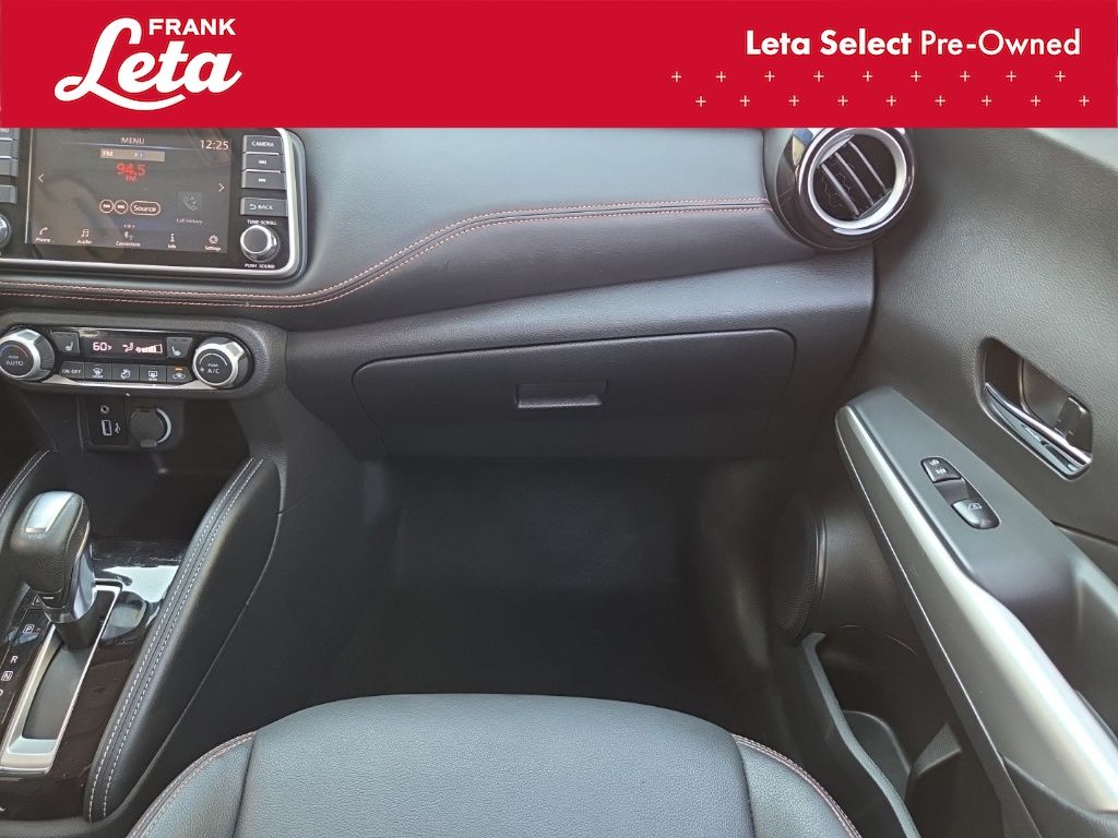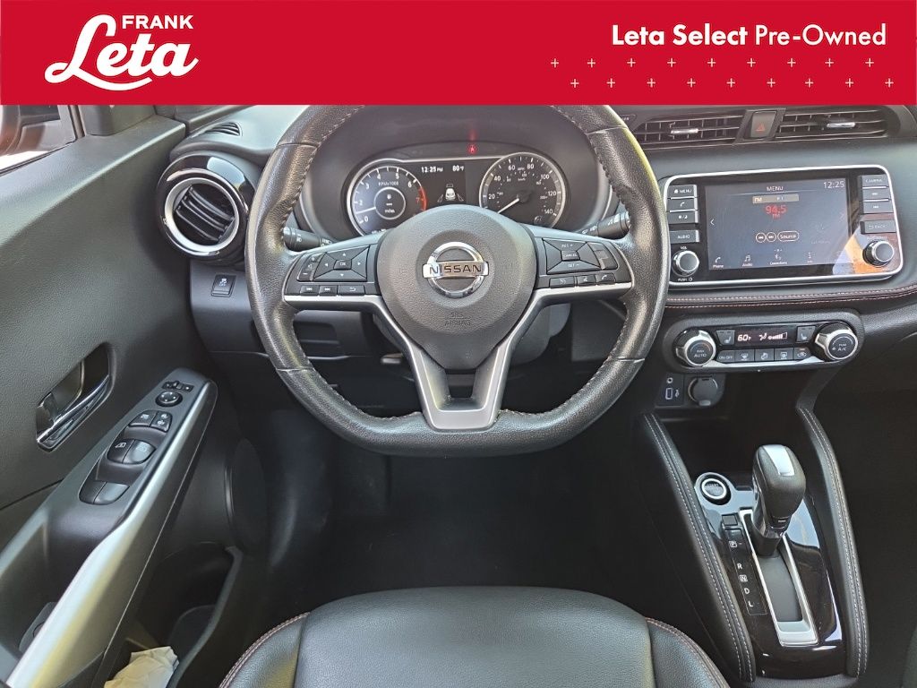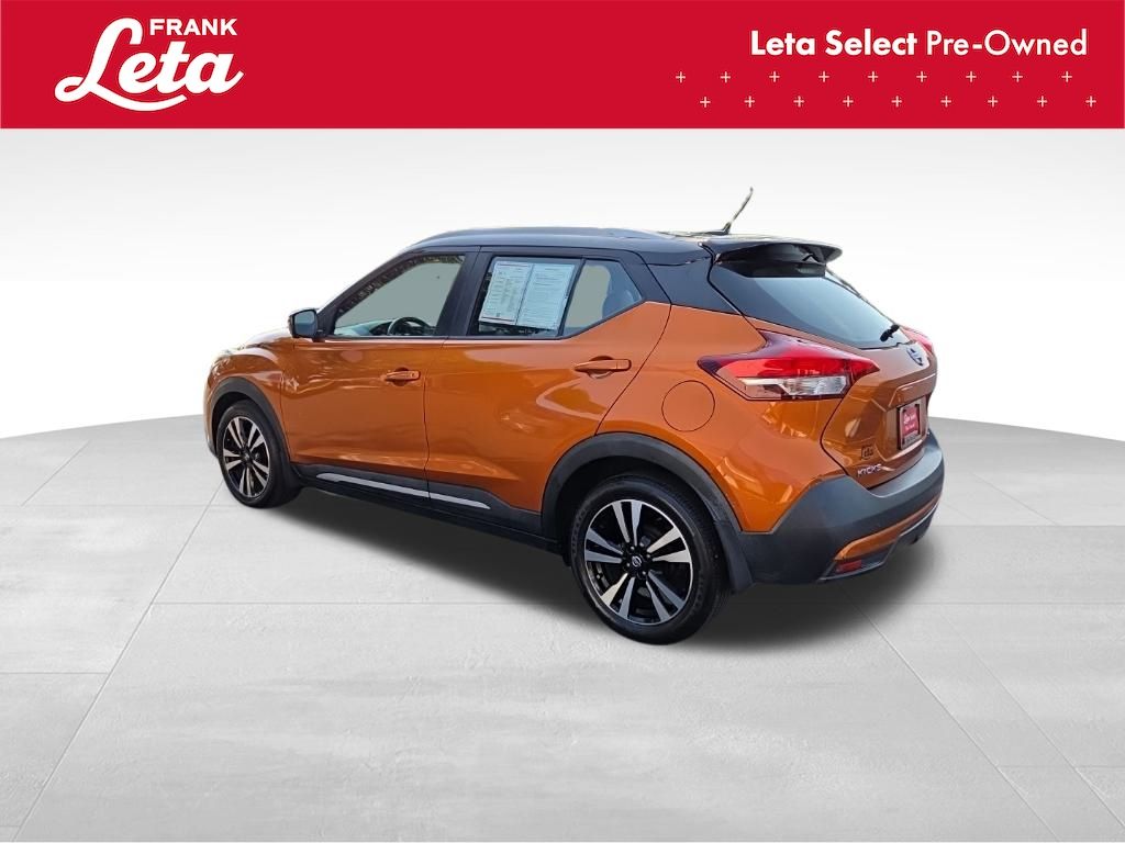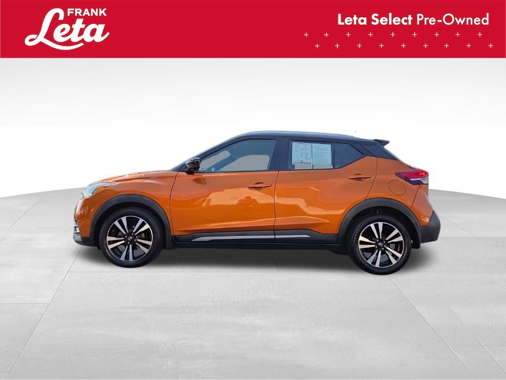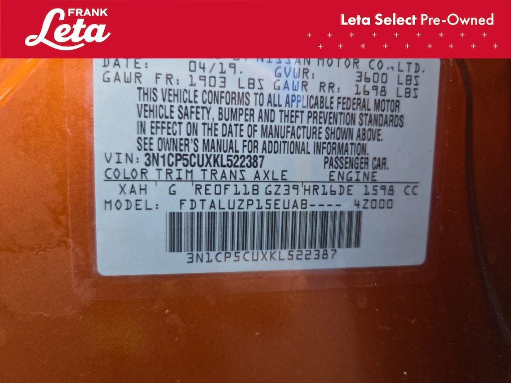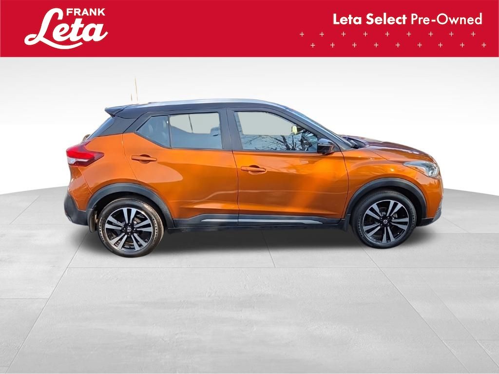 2019 Nissan Kicks SR Monarch Orange/Super Black Kicks SR, Frank Leta Select Certified, 1.6L 4-Cylinder DOHC 16V, FWD, Monarch Orange/Super Black, Charcoal w/Cloth Seat Trim or Prima-Tex Appointed Seat Trim, 17" Alloy Wheels, Blind Spot Warning, Bose Personal Plus Audio System, Front fog lights, Fully automatic headlights, Heated Front Seats, NissanConnect featuring Apple CarPlay and Android Auto, Prima-Tex Appointed Seat Trim, Security System, SR Premium Package, 3.927 Axle Ratio, 6 Speakers, ABS brakes, Air Conditioning, AM/FM radio: SiriusXM, Automatic temperature control, Brake assist, Bumpers: body-color, Carpeted Floor Mats w/Cargo Mat, Cloth Seat Trim, Compass, Crossbars, Delay-off headlights, Driver door bin, Driver vanity mirror, Driver's Seat Mounted Armrest, Dual front impact airbags, Dual front side impact airbags, Electronic Stability Control, Front anti-roll bar, Front Bucket Seats, Front reading lights, Front wheel independent suspension, Heated door mirrors, Illuminated entry, Knee airbag, Leather Shift Knob, Low tire pressure warning, Occupant sensing airbag, Outside temperature display, Overhead airbag, Panic alarm, Passenger door bin, Passenger vanity mirror, Power door mirrors, Power steering, Power windows, Radio data system, Radio: AM/FM Audio System, Rear reading lights, Rear Roof Spoiler, Rear window defroster, Rear window wiper, Remote keyless entry, Roof rack: rails only, Speed control, Splash Guards Grain (4 Piece), Split folding rear seat, Spoiler, Sport steering wheel, Steering wheel mounted audio controls, Tachometer, Telescoping steering wheel, Tilt steering wheel, Traction control, Trip computer, Turn signal indicator mirrors, Variably intermittent wipers, Kicks SR, 1.6L 4-Cylinder DOHC 16V, FWD, Monarch Orange/Super Black, Charcoal w/Cloth Seat Trim or Prima-Tex Appointed Seat Trim, 17" Alloy Wheels, Blind Spot Warning, Bose Personal Plus Audio System, Front fog lights, Fully automatic headlights, Heated Front Seats, NissanConnect featuring Apple CarPlay and Android Auto, Prima-Tex Appointed Seat Trim, Security System, SR Premium Package. 1.6L 4-Cylinder DOHC 16V CVT with Xtronic FWD 4D Sport Utility Odometer is 843 miles below market average! 31/36 City/Highway MPG Awards: