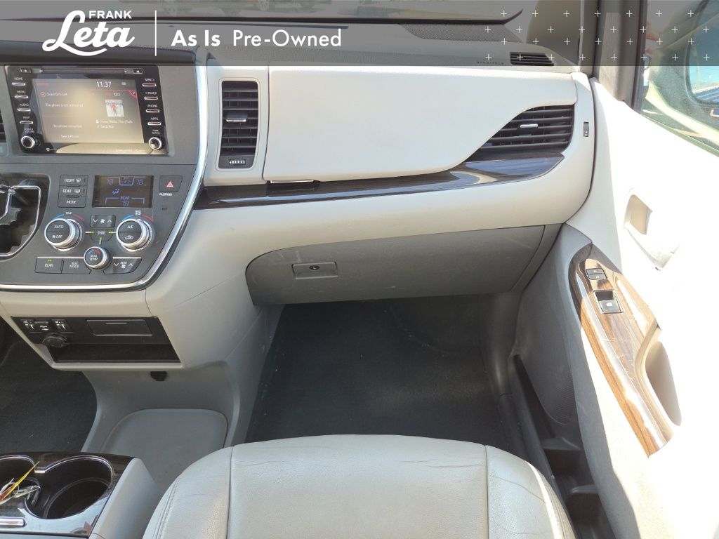 CARFAX One-Owner. 2019 Toyota Sienna XLE 8 Passenger Predawn Gray Mica Sienna XLE 8 Passenger, 3.5L V6 SMPI DOHC, 8-Speed Automatic, FWD, Predawn Gray Mica, Ash w/Leather Seat Material, 17" Alloy Wheels, 3rd row seats: split-bench, Apple CarPlay, Auto-dimming Rear-View mirror, Exterior Parking Camera Rear, Front dual zone A/C, Front fog lights, Fully automatic headlights, Garage door transmitter: HomeLink, Heated door mirrors, Heated front seats, Power Liftgate, Power moonroof, Rear air conditioning, 4-Corner/Back Clearance & Back Sonar, 4-Wheel Disc Brakes, 6 Speakers, ABS brakes, Air Conditioning, AM/FM radio: SiriusXM, Auto High-beam Headlights, Automatic temperature control, Axle Ratio: 3.003, Brake assist, Bumpers: body-color, CD player, Compass, Delay-off headlights, Door auto-latch, Driver door bin, Driver vanity mirror, Driver's Seat Mounted Armrest, Dual front impact airbags, Dual front side impact airbags, Electronic Stability Control, Front anti-roll bar, Front Bucket Seats, Front reading lights, Front wheel independent suspension, Heated Front Bucket Seats, Illuminated entry, Knee airbag, Leather Seat Material, Low tire pressure warning, Occupant sensing airbag, Outside temperature display, Overhead airbag, Overhead console, Panic alarm, Passenger door bin, Passenger seat mounted armrest, Passenger vanity mirror, Power door mirrors, Power driver seat, Power passenger seat, Power steering, Power windows, Radio data system, Radio: Entune 3.0 Audio Plus, Rear anti-roll bar, Rear reading lights, Rear seat center armrest, Rear window defroster, Rear window wiper, Reclining 3rd row seat, Remote keyless entry, Roof rack: rails only, Security system, Speed control, Speed-sensing steering, Split folding rear seat, Spoiler, Steering wheel mounted audio controls, Tachometer, Telescoping steering wheel, Tilt steering wheel, Traction control, Trip computer, Variably intermittent wipers, Sienna XLE 8 Passenger, 3.5L V6 SMPI DOHC, 8-Speed Automatic, FWD, Predawn Gray Mica, Ash w/Leather Seat Material, 17" Alloy Wheels, 3rd row seats: split-bench, Apple CarPlay, Auto-dimming Rear-View mirror, Exterior Parking Camera Rear, Front dual zone A/C, Front fog lights, Fully automatic headlights, Garage door transmitter: HomeLink, Heated door mirrors, Heated front seats, Power Liftgate, Power moonroof, Rear air conditioning. 3.5L V6 SMPI DOHC 8-Speed Automatic FWD 4D Passenger Van Odometer is 634 miles below market average! 19/27 City/Highway MPG Awards: