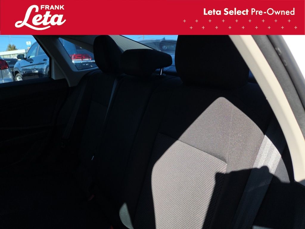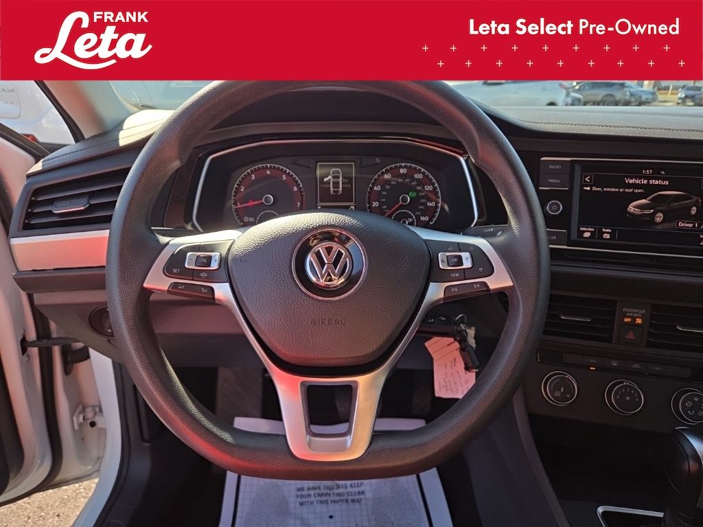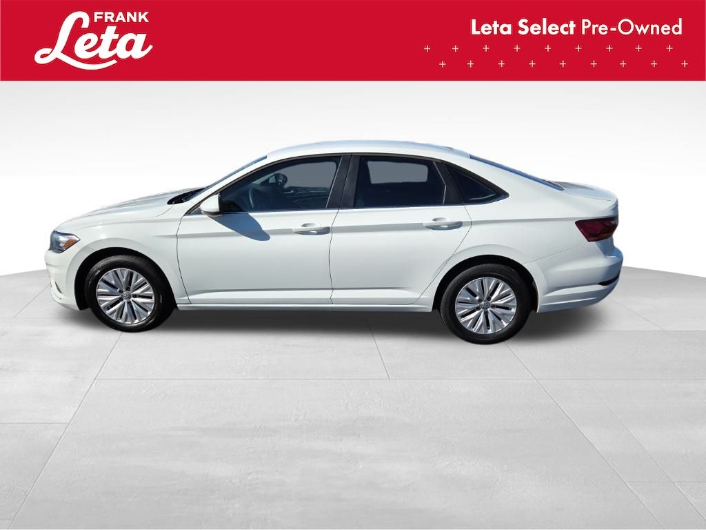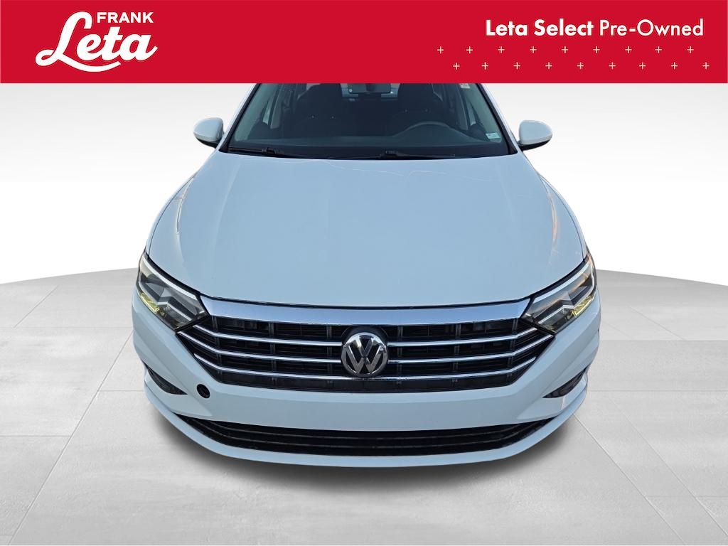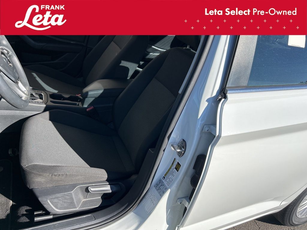2019 Volkswagen Jetta 1.4T SE Pure White Jetta 1.4T SE, Frank Leta Select Certified, 1.4L TSI, Pure White, Titan Black w/Perforated V-Tex Leatherette Seat Trim, Exterior Parking Camera Rear, Front dual zone A/C, Fully automatic headlights, Heated front seats, Power moonroof, Wheels: 16" Two-Tone Rama Black, 4 Speakers, 4-Wheel Disc Brakes, ABS brakes, Air Conditioning, AM/FM radio, Automatic temperature control, Brake assist, Bumpers: body-color, Delay-off headlights, Driver door bin, Driver vanity mirror, Dual front impact airbags, Dual front side impact airbags, Electronic Stability Control, Front anti-roll bar, Front Bucket Seats, Front Center Armrest, Front reading lights, Front wheel independent suspension, Heated door mirrors, Heated Front Comfort Seats, Illuminated entry, Leather Shift Knob, Low tire pressure warning, Occupant sensing airbag, Outside temperature display, Overhead airbag, Overhead console, Panic alarm, Passenger door bin, Passenger vanity mirror, Perforated V-Tex Leatherette Seat Trim, Power door mirrors, Power steering, Power windows, Radio data system, Radio: Composition Color w/6.5" Touchscreen, Rear anti-roll bar, Rear reading lights, Rear seat center armrest, Rear window defroster, Remote keyless entry, Speed control, Speed-sensing steering, Split folding rear seat, Steering wheel mounted audio controls, Tachometer, Telescoping steering wheel, Tilt steering wheel, Traction control, Trip computer, Variably intermittent wipers, Jetta 1.4T SE, 1.4L TSI, Pure White, Titan Black w/Perforated V-Tex Leatherette Seat Trim, Exterior Parking Camera Rear, Front dual zone A/C, Fully automatic headlights, Heated front seats, Power moonroof, Wheels: 16" Two-Tone Rama Black. 1.4L TSI 8-Speed Automatic with Tiptronic FWD 4D Sedan 30/40 City/Highway MPG Awards: