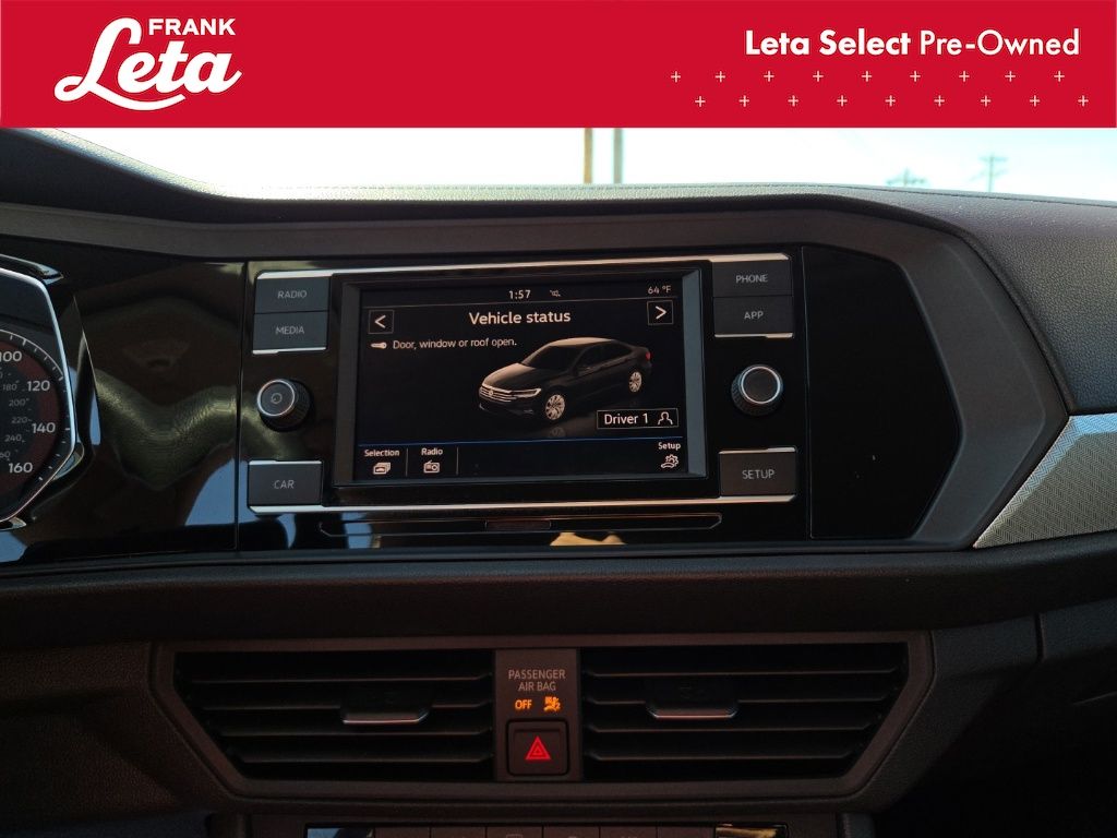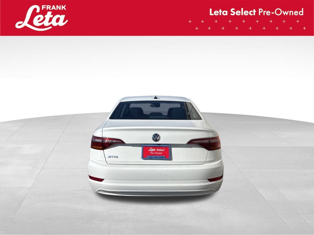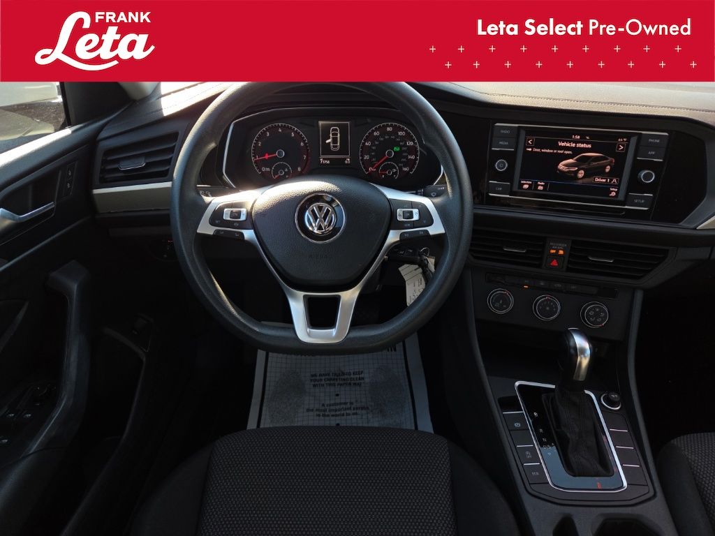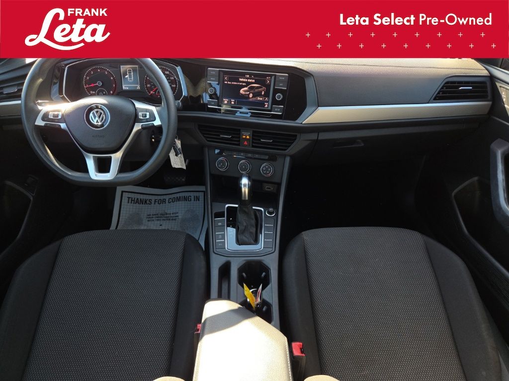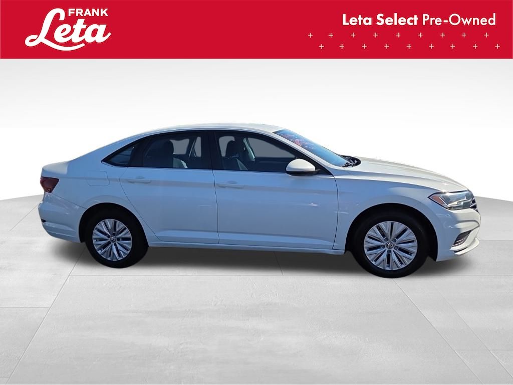 2019 Volkswagen Jetta 1.4T SE Pure White Jetta 1.4T SE, Frank Leta Select Certified, 1.4L TSI, Pure White, Titan Black w/Perforated V-Tex Leatherette Seat Trim, Exterior Parking Camera Rear, Front dual zone A/C, Fully automatic headlights, Heated front seats, Power moonroof, Wheels: 16" Two-Tone Rama Black, 4 Speakers, 4-Wheel Disc Brakes, ABS brakes, Air Conditioning, AM/FM radio, Automatic temperature control, Brake assist, Bumpers: body-color, Delay-off headlights, Driver door bin, Driver vanity mirror, Dual front impact airbags, Dual front side impact airbags, Electronic Stability Control, Front anti-roll bar, Front Bucket Seats, Front Center Armrest, Front reading lights, Front wheel independent suspension, Heated door mirrors, Heated Front Comfort Seats, Illuminated entry, Leather Shift Knob, Low tire pressure warning, Occupant sensing airbag, Outside temperature display, Overhead airbag, Overhead console, Panic alarm, Passenger door bin, Passenger vanity mirror, Perforated V-Tex Leatherette Seat Trim, Power door mirrors, Power steering, Power windows, Radio data system, Radio: Composition Color w/6.5" Touchscreen, Rear anti-roll bar, Rear reading lights, Rear seat center armrest, Rear window defroster, Remote keyless entry, Speed control, Speed-sensing steering, Split folding rear seat, Steering wheel mounted audio controls, Tachometer, Telescoping steering wheel, Tilt steering wheel, Traction control, Trip computer, Variably intermittent wipers, Jetta 1.4T SE, 1.4L TSI, Pure White, Titan Black w/Perforated V-Tex Leatherette Seat Trim, Exterior Parking Camera Rear, Front dual zone A/C, Fully automatic headlights, Heated front seats, Power moonroof, Wheels: 16" Two-Tone Rama Black. 1.4L TSI 8-Speed Automatic with Tiptronic FWD 4D Sedan 30/40 City/Highway MPG Awards: