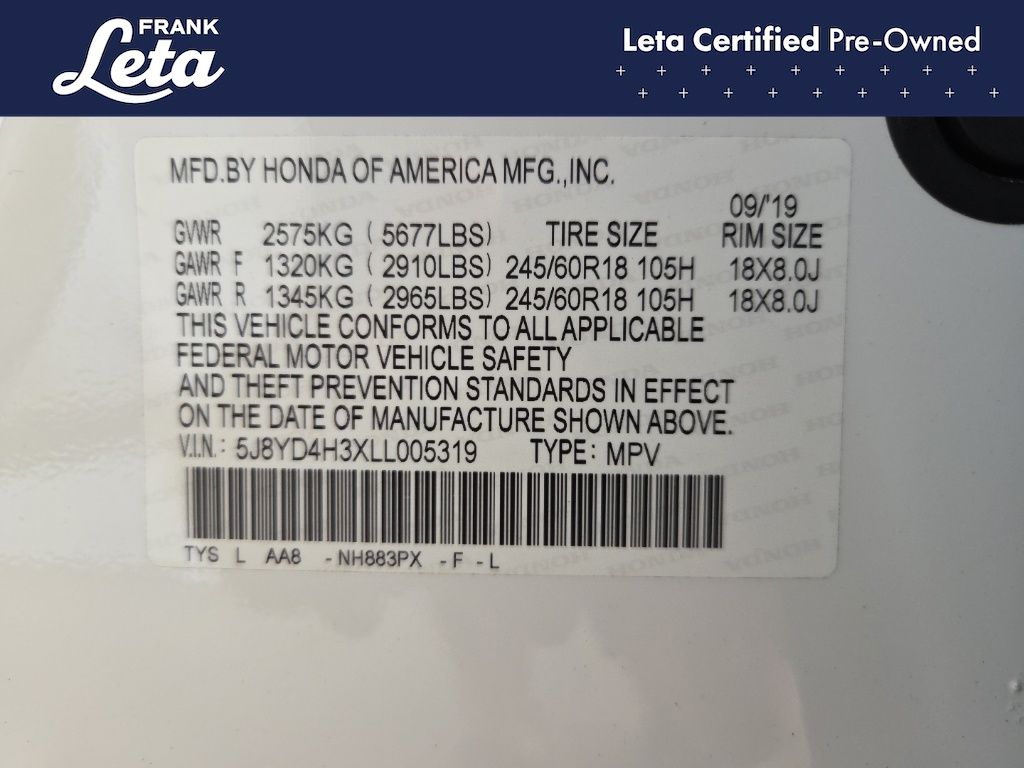- VIN : 5J8YD4H3XLL005319