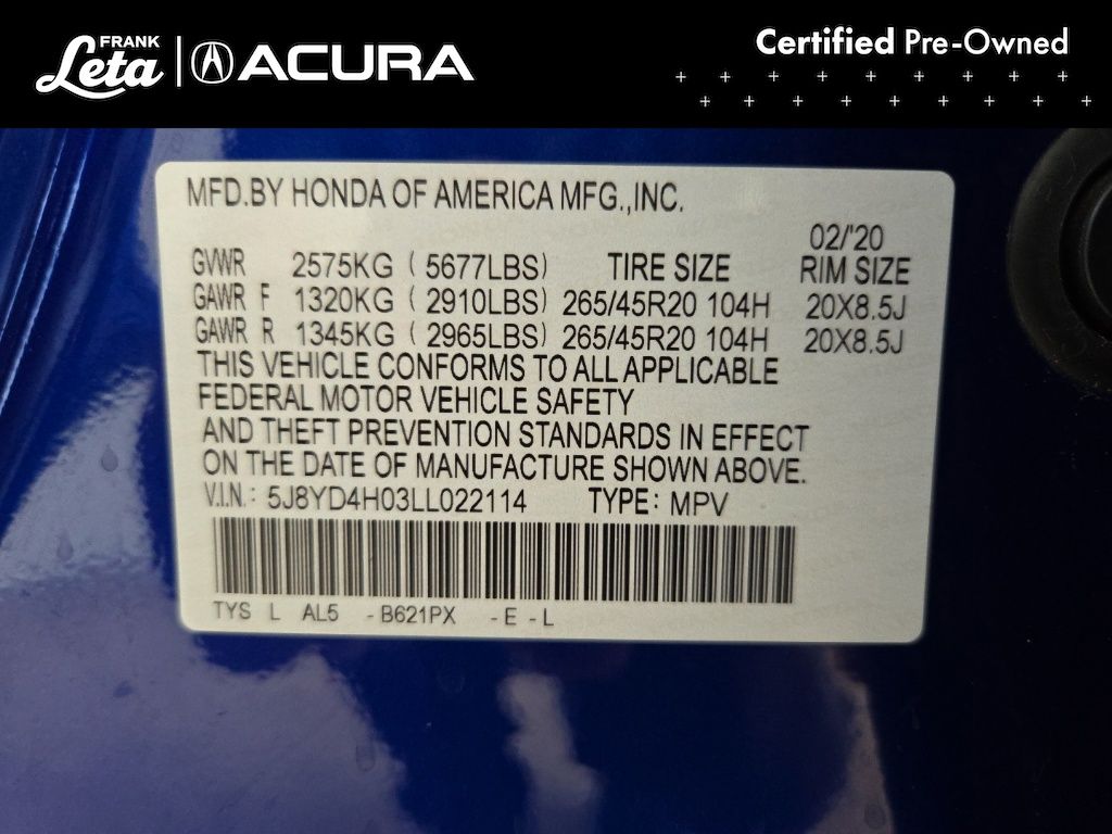 2020 Acura MDX Technology & A-Spec Packages SH-AWD Apex Blue Pearl MDX Technology & A-Spec Packages SH-AWD, Precision Certified Certified, 3.5L V6 SOHC i-VTEC 24V, AWD, Apex Blue Pearl, Ebony w/Perforated Milano Leather & Alcantara, 10 Speakers, 3rd row seats: bench, Apple CarPlay/Android Auto, Auto tilt-away steering wheel, Auto-dimming Rear-View mirror, Exterior Parking Camera Rear, Front dual zone A/C, Front fog lights, Garage door transmitter: HomeLink, Heated & Ventilated A-Spec Front Sport Seats, Heated front seats, Lane departure: Lane Keeping Assist System (LKAS) active, Memory seat, Navigation System, Power Liftgate, Power moonroof, Radio: Acura/ELS Studio Premium Audio System, Rear air conditioning, Ventilated front seats, Wheels: 20" x 8.5" Shark Gray Split 5-Spoke, 4-Wheel Disc Brakes, 4.33 Axle Ratio, ABS brakes, Air Conditioning, AM/FM radio: SiriusXM, Anti-whiplash front head restraints, Audio memory, Auto High-beam Headlights, Automatic temperature control, Brake assist, Bumpers: body-color, CD player, Compass, Delay-off headlights, Driver door bin, Driver vanity mirror, Dual front impact airbags, Dual front side impact airbags, Electronic Stability Control, Emergency communication system, Four wheel independent suspension, Front anti-roll bar, Front Bucket Seats, Front Center Armrest, Front reading lights, Heated door mirrors, HVAC memory, Illuminated entry, Knee airbag, Leather steering wheel, Low tire pressure warning, Occupant sensing airbag, Outside temperature display, Overhead airbag, Overhead console, Panic alarm, Passenger door bin, Passenger vanity mirror, Perforated Milano Leather & Alcantara, Power door mirrors, Power driver seat, Power passenger seat, Power steering, Power windows, Premium audio system: Acura/ELS Surround, Radio data system, Rain sensing wipers, Rear anti-roll bar, Rear reading lights, Rear seat center armrest, Rear window defroster, Rear window wiper, Remote keyless entry, Security system, Speed control, Speed-sensing steering, Speed-Sensitive Wipers, Split folding rear seat, Spoiler, Steering wheel memory, Steering wheel mounted audio controls, Tachometer, Telescoping steering wheel, Tilt steering wheel, Traction control, Trip computer, Turn signal indicator mirrors, Variably intermittent wipers, MDX Technology & A-Spec Packages SH-AWD, 3.5L V6 SOHC i-VTEC 24V, AWD, Apex Blue Pearl, Ebony w/Perforated Milano Leather & Alcantara, 10 Speakers, 3rd row seats: bench, Apple CarPlay/Android Auto, Auto tilt-away steering wheel, Auto-dimming Rear-View mirror, Exterior Parking Camera Rear, Front dual zone A/C, Front fog lights, Garage door transmitter: HomeLink, Heated & Ventilated A-Spec Front Sport Seats, Heated front seats, Lane departure: Lane Keeping Assist System (LKAS) active, Memory seat, Navigation System, Power Liftgate, Power moonroof, Radio: Acura/ELS Studio Premium Audio System, Rear air conditioning, Ventilated front seats, Wheels: 20" x 8.5" Shark Gray Split 5-Spoke. 3.5L V6 SOHC i-VTEC 24V 9-Speed Automatic AWD 4D Sport Utility Odometer is 4467 miles below market average!