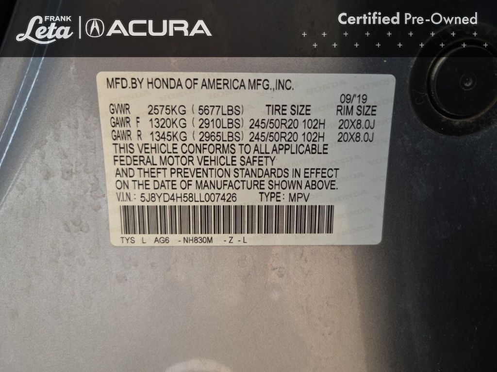 CARFAX One-Owner. 2020 Acura MDX Technology SH-AWD Lunar Silver Metallic MDX Technology SH-AWD, Precision Used Certified, 3.5L V6 SOHC i-VTEC 24V, AWD, Lunar Silver Metallic, Ebony w/Perforated Premium Leather w/Contrast Stitching, 10 Speakers, 3rd row seats: bench, Apple CarPlay/Android Auto, Auto-dimming Rear-View mirror, Exterior Parking Camera Rear, Front dual zone A/C, Garage door transmitter: HomeLink, Heated front seats, Lane departure: Lane Keeping Assist System (LKAS) active, Memory seat, Navigation System, Power Liftgate, Power moonroof, Premium audio system: Acura/ELS Surround, Wheels: 20" x 8" Shark Gray Twisted 10-Spoke, 4-Wheel Disc Brakes, 4.33 Axle Ratio, ABS brakes, Air Conditioning, AM/FM radio: SiriusXM, Anti-whiplash front head restraints, Audio memory, Auto High-beam Headlights, Auto tilt-away steering wheel, Automatic temperature control, Brake assist, Bumpers: body-color, CD player, Compass, Delay-off headlights, Driver door bin, Driver vanity mirror, Dual front impact airbags, Dual front side impact airbags, Electronic Stability Control, Emergency communication system, Four wheel independent suspension, Front anti-roll bar, Front Bucket Seats, Front Center Armrest, Front reading lights, Genuine wood console insert, Genuine wood dashboard insert, Genuine wood door panel insert, Heated door mirrors, Heated Front Sport Seats, HVAC memory, Illuminated entry, Knee airbag, Leather steering wheel, Low tire pressure warning, Occupant sensing airbag, Outside temperature display, Overhead airbag, Overhead console, Panic alarm, Passenger door bin, Passenger vanity mirror, Perforated Premium Leather w/Contrast Stitching, Power door mirrors, Power driver seat, Power passenger seat, Power steering, Power windows, Radio data system, Radio: Acura/ELS Studio Premium Audio System, Rain sensing wipers, Rear air conditioning, Rear anti-roll bar, Rear reading lights, Rear seat center armrest, Rear window defroster, Rear window wiper, Remote keyless entry, Security system, Speed control, Speed-sensing steering, Speed-Sensitive Wipers, Split folding rear seat, Spoiler, Steering wheel memory, Steering wheel mounted audio controls, Tachometer, Telescoping steering wheel, Tilt steering wheel, Traction control, Trip computer, Turn signal indicator mirrors, Variably intermittent wipers, MDX Technology SH-AWD, 3.5L V6 SOHC i-VTEC 24V, AWD, Lunar Silver Metallic, Ebony w/Perforated Premium Leather w/Contrast Stitching, 10 Speakers, 3rd row seats: bench, Apple CarPlay/Android Auto, Auto-dimming Rear-View mirror, Exterior Parking Camera Rear, Front dual zone A/C, Garage door transmitter: HomeLink, Heated front seats, Lane departure: Lane Keeping Assist System (LKAS) active, Memory seat, Navigation System, Power Liftgate, Power moonroof, Premium audio system: Acura/ELS Surround, Wheels: 20" x 8" Shark Gray Twisted 10-Spoke. 3.5L V6 SOHC i-VTEC 24V 9-Speed Automatic AWD 4D Sport Utility 19/26 City/Highway MPG