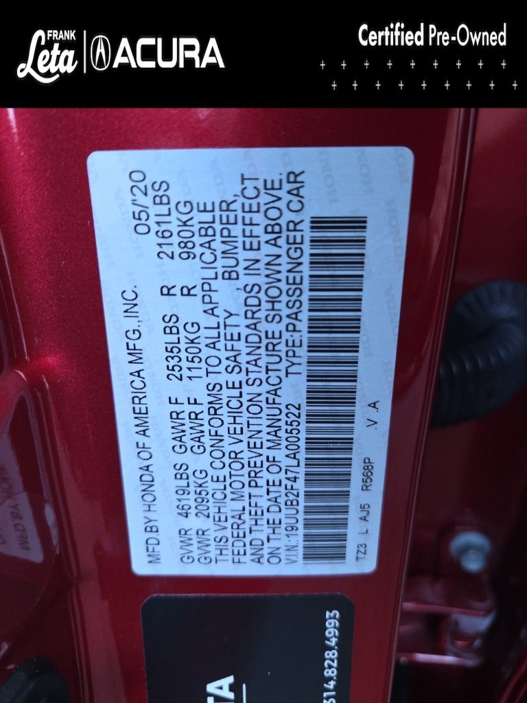 2020 Acura TLX 3.5L Technology Pkg Performance Red Pearl TLX 3.5L Technology Pkg, Precision Certified Certified, 3.5L V6 SOHC i-VTEC 24V, Performance Red Pearl, Ebony w/Prem Perforated Milano Leather-Trimmed Interior, 10 Speakers, Acura Navigation System w/3D View, Apple CarPlay/Android Auto, Auto-dimming Rear-View mirror, Exterior Parking Camera Rear, Front dual zone A/C, Garage door transmitter: HomeLink, Heated door mirrors, Heated front seats, Lane departure: Lane Keeping Assist System (LKAS) active, Memory seat, Navigation System, Power moonroof, Radio: ELS Studio Premium Audio System, Wheels: 19" x 8.0" Pewter Gray Aluminum Alloy, 4-Wheel Disc Brakes, ABS brakes, Air Conditioning, AM/FM radio: SiriusXM, Anti-whiplash front head restraints, Auto High-beam Headlights, Automatic temperature control, Brake assist, Bumpers: body-color, CD player, Compass, Delay-off headlights, Driver door bin, Driver vanity mirror, Dual front impact airbags, Dual front side impact airbags, Electronic Stability Control, Emergency communication system: AcuraLink, Four wheel independent suspension, Front anti-roll bar, Front Bucket Seats, Front Center Armrest w/Storage, Front reading lights, Heated Front Sport Seats, HVAC memory, Illuminated entry, Knee airbag, Leather steering wheel, Low tire pressure warning, Occupant sensing airbag, Outside temperature display, Overhead airbag, Overhead console, Panic alarm, Passenger door bin, Passenger vanity mirror, Power door mirrors, Power driver seat, Power passenger seat, Power steering, Power windows, Prem Perforated Milano Leather-Trimmed Interior, Premium audio system: Acura/ELS Surround, Radio data system, Rain sensing wipers, Rear anti-roll bar, Rear reading lights, Rear seat center armrest, Rear window defroster, Remote keyless entry, Security system, Speed control, Speed-sensing steering, Speed-Sensitive Wipers, Split folding rear seat, Steering wheel mounted audio controls, Tachometer, Telescoping steering wheel, Tilt steering wheel, Traction control, Trip computer, Turn signal indicator mirrors, Variably intermittent wipers, TLX 3.5L Technology Pkg, 3.5L V6 SOHC i-VTEC 24V, Performance Red Pearl, Ebony w/Prem Perforated Milano Leather-Trimmed Interior, 10 Speakers, Acura Navigation System w/3D View, Apple CarPlay/Android Auto, Auto-dimming Rear-View mirror, Exterior Parking Camera Rear, Front dual zone A/C, Garage door transmitter: HomeLink, Heated door mirrors, Heated front seats, Lane departure: Lane Keeping Assist System (LKAS) active, Memory seat, Navigation System, Power moonroof, Radio: ELS Studio Premium Audio System, Wheels: 19" x 8.0" Pewter Gray Aluminum Alloy. 3.5L V6 SOHC i-VTEC 24V 9-Speed Automatic FWD 4D Sedan 20/31 City/Highway MPG
