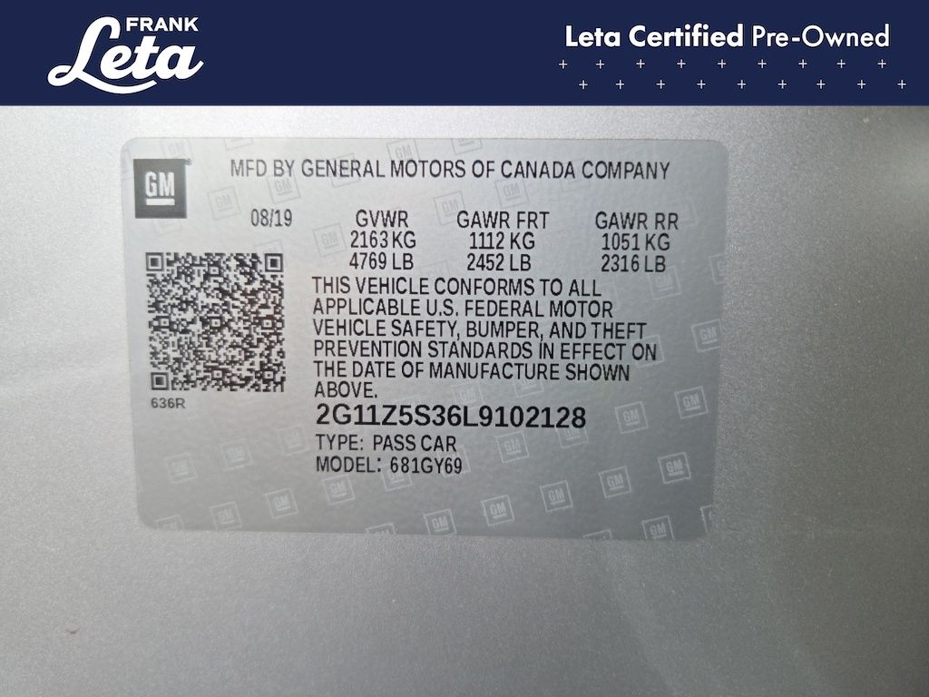 CARFAX One-Owner. 2020 Chevrolet Impala LT Silver Ice Metallic Impala LT, Frank Leta Certified Certified, 3.6L V6 DI DOHC, 6-Speed Automatic Electronic with Overdrive, Silver Ice Metallic, Jet Black Cloth, 18" Painted Alloy Wheels, Apple CarPlay/Android Auto, Auto-Dimming Inside Rear-View Mirror, Front dual zone A/C, Fully automatic headlights, Heated Driver & Front Passenger Seats, Heated Steering Wheel, Rear Park Assist, 100-Watt 6-Speaker System, 120-Volt Power Outlet, 4-Way Manual Front Passenger Seat Adjuster, 4-Wheel Disc Brakes, 6 Speakers, 8-Way Power Driver Seat Adjuster, 8" Diagonal Color Infotainment Display, ABS brakes, Air Conditioning, All-Weather Mat Protection Package (LPO), AM/FM radio: SiriusXM, Automatic temperature control, Black Premium All-Weather Cargo Mat (LPO), Brake assist, Bumpers: body-color, Carpeted Trunk Mat, Compass, Delay-off headlights, Driver Confidence Package, Driver door bin, Driver Power Lumbar Seat Adjuster, Driver vanity mirror, Dual front impact airbags, Dual front side impact airbags, Electronic Stability Control, Emergency communication system: OnStar and Chevrolet connected services capable, Four wheel independent suspension, Front & Rear Premium All-Weather Floor Mats (LPO), Front anti-roll bar, Front Bucket Seats, Front Center Armrest, Front Passenger Power Lumbar Seat Adjuster, Front reading lights, Heated door mirrors, Illuminated entry, Knee airbag, Lane Change Alert w/Side Blind Zone Alert, Low tire pressure warning, LT Convenience Package, Occupant sensing airbag, Overhead airbag, Overhead console, Panic alarm, Passenger door bin, Passenger vanity mirror, Power door mirrors, Power driver seat, Power passenger seat, Power steering, Power windows, Preferred Equipment Group 1LT, Premium Carpeted Front & Rear Floor Mats, Premium Cloth/Leatherette Seat Trim, Radio data system, Radio: Chevrolet Infotainment System AM/FM Stereo, Rear anti-roll bar, Rear Cross Traffic Alert, Rear reading lights, Rear seat center armrest, Rear side impact airbag, Rear window defroster, Remote keyless entry, Security system, SiriusXM Radio, Speed control, Speed-sensing steering, Split folding rear seat, Steering wheel mounted audio controls, Tachometer, Telescoping steering wheel, Tilt steering wheel, Traction control, Trip computer, Trunk Cargo Convenience Net, Turn signal indicator mirrors, Universal Home Remote, USB Port, Variably intermittent wipers, Impala LT, 3.6L V6 DI DOHC, 6-Speed Automatic Electronic with Overdrive, Silver Ice Metallic, Jet Black Cloth, 18" Painted Alloy Wheels, Apple CarPlay/Android Auto, Auto-Dimming Inside Rear-View Mirror, Front dual zone A/C, Fully automatic headlights, Heated Driver & Front Passenger Seats, Heated Steering Wheel, Rear Park Assist. 3.6L V6 DI DOHC 6-Speed Automatic Electronic with Overdrive FWD 4D Sedan Odometer is 8734 miles below market average! 19/28 City/Highway MPG