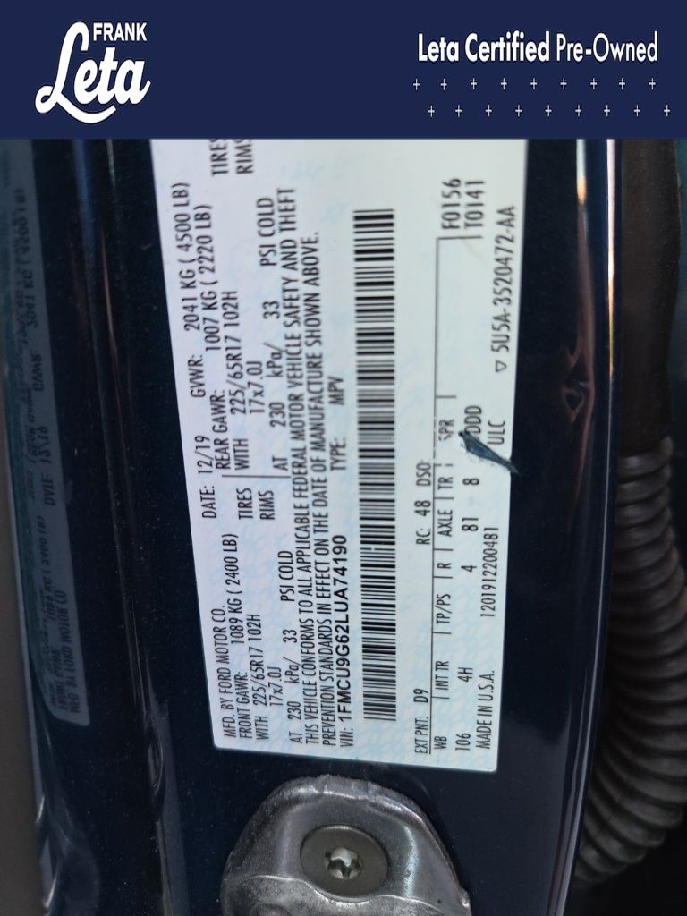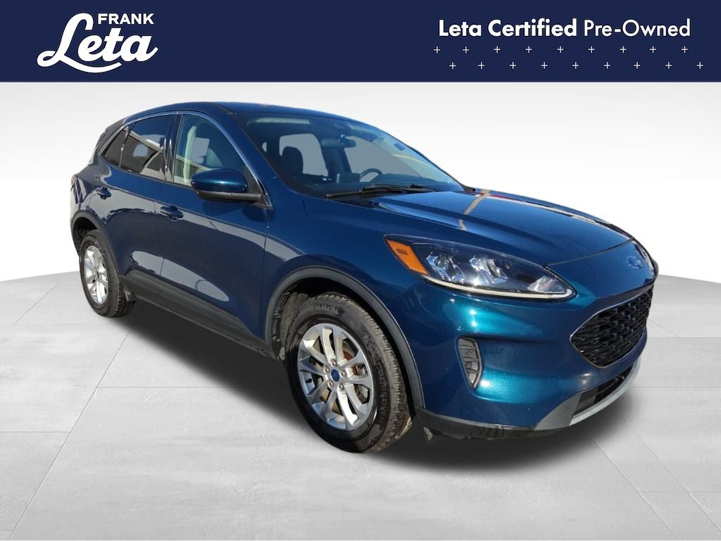 2020 Ford Escape SE Dark Persian Green Metallic Escape SE, Frank Leta Certified Certified, 1.5L EcoBoost, 8-Speed Automatic, AWD, Dark Persian Green Metallic, Dark Earth Gray w/Heated Unique Cloth Front Bucket Seats, Exterior Parking Camera Rear, Fully automatic headlights, Heated Unique Cloth Front Bucket Seats, Wheels: 17" Shadow Silver-Painted Aluminum, 3.81 axle ratio, 4-Wheel Disc Brakes, 6 Speakers, ABS brakes, Air Conditioning, AM/FM radio: SiriusXM, AM/FM Stereo, Auto High-beam Headlights, Automatic temperature control, Brake assist, Bumpers: body-color, Compass, Delay-off headlights, Driver door bin, Driver vanity mirror, Dual front impact airbags, Dual front side impact airbags, Electronic Stability Control, Emergency communication system: SYNC 3 911 Assist, Equipment Group 200A, FordPass Connect, Four wheel independent suspension, Front anti-roll bar, Front Bucket Seats, Front Center Armrest, Front reading lights, Heated door mirrors, Heated front seats, Illuminated entry, Knee airbag, Low tire pressure warning, Occupant sensing airbag, Outside temperature display, Overhead airbag, Overhead console, Panic alarm, Passenger door bin, Passenger vanity mirror, Power door mirrors, Power driver seat, Power steering, Power windows, Radio data system, Rear anti-roll bar, Rear reading lights, Rear seat center armrest, Rear window defroster, Rear window wiper, Remote keyless entry, Speed control, Speed-sensing steering, Speed-Sensitive Wipers, Split folding rear seat, Spoiler, Steering wheel mounted audio controls, SYNC 3 Communications & Entertainment System, Tachometer, Telescoping steering wheel, Tilt steering wheel, Traction control, Trip computer, Variably intermittent wipers, Escape SE, 1.5L EcoBoost, 8-Speed Automatic, AWD, Dark Persian Green Metallic, Dark Earth Gray w/Heated Unique Cloth Front Bucket Seats, Exterior Parking Camera Rear, Fully automatic headlights, Heated Unique Cloth Front Bucket Seats, Wheels: 17" Shadow Silver-Painted Aluminum. 1.5L EcoBoost 8-Speed Automatic AWD 4D Sport Utility 26/31 City/Highway MPG Awards: