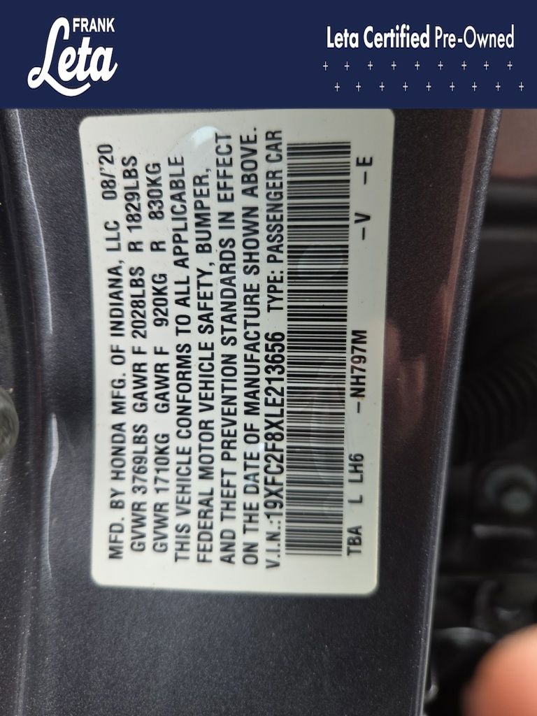 2020 Honda Civic Sport Modern Steel Metallic Civic Sport, Frank Leta Certified Certified, 2.0L I4 DOHC 16V i-VTEC, Modern Steel Metallic, Black w/Fabric Seating Surfaces, Adaptive Cruise Control: Adaptive Cruise Control (ACC) with Low-Speed Follow, Apple CarPlay/Android Auto, Exterior Parking Camera Rear, Forward collision: Collision Mitigation Braking System (CMBS) + FCW mitigation, Front fog lights, Fully automatic headlights, Lane departure: Lane Keeping Assist System (LKAS) active, Wheels: 18" Alloy w/Gloss Black Inserts, 4-Wheel Disc Brakes, 8 Speakers, ABS brakes, Air Conditioning, AM/FM radio, Auto High-beam Headlights, Automatic temperature control, Brake assist, Bumpers: body-color, Cloth Seat Trim, Delay-off headlights, Driver door bin, Driver vanity mirror, Dual front impact airbags, Dual front side impact airbags, Electronic Stability Control, Emergency communication system: HondaLink, Four wheel independent suspension, Front anti-roll bar, Front Bucket Seats, Front Center Armrest, Front reading lights, Illuminated entry, Leather Shift Knob, Low tire pressure warning, Occupant sensing airbag, Outside temperature display, Overhead airbag, Panic alarm, Passenger door bin, Passenger vanity mirror, Power door mirrors, Power steering, Power windows, Radio data system, Radio: 180-Watt AM/FM Audio System, Rear anti-roll bar, Rear window defroster, Remote keyless entry, Security system, Speed control, Speed-sensing steering, Split folding rear seat, Spoiler, Steering wheel mounted audio controls, Tachometer, Telescoping steering wheel, Tilt steering wheel, Traction control, Trip computer, Civic Sport, 2.0L I4 DOHC 16V i-VTEC, Modern Steel Metallic, Black w/Fabric Seating Surfaces, Adaptive Cruise Control: Adaptive Cruise Control (ACC) with Low-Speed Follow, Apple CarPlay/Android Auto, Exterior Parking Camera Rear, Forward collision: Collision Mitigation Braking System (CMBS) + FCW mitigation, Front fog lights, Fully automatic headlights, Lane departure: Lane Keeping Assist System (LKAS) active, Wheels: 18" Alloy w/Gloss Black Inserts. 2.0L I4 DOHC 16V i-VTEC CVT FWD 4D Sedan Odometer is 42251 miles below market average! 29/37 City/Highway MPG