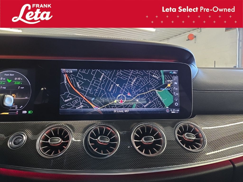 - 13 Speakers, Memory Seat, Remote Keyless Entry, Steering Wheel Mounted Audio Controls, Fully Automatic Headlights, Apple CarPlay/Android Auto, Auto-Dimming Rear-View Mirror, Garage Door Transmitter: Homelink, Navigation System, Exterior Parking Camera Rear, Heated Front Seats, MB-Tex/DINAMICA Upholstery, Power Moonroof, Wheels: 19" AMG Twin 5-Spoke w/Black Accents