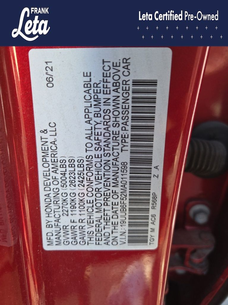 - VIN : 19UUB6F52MA011598