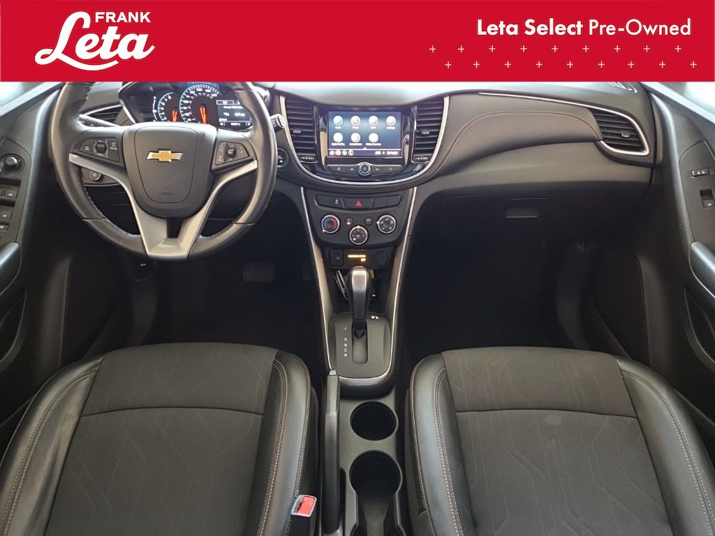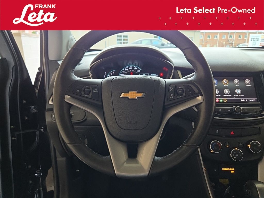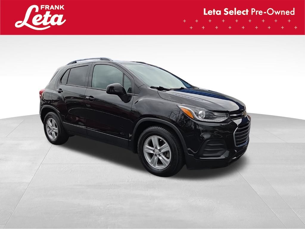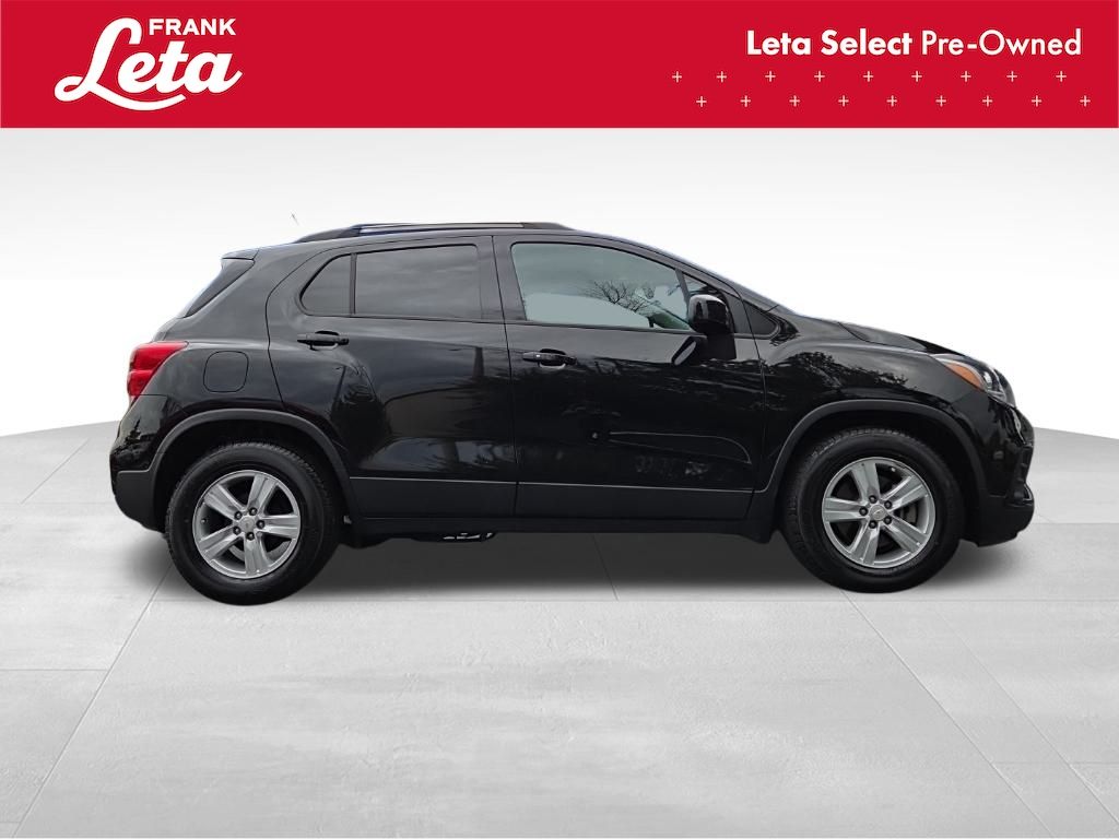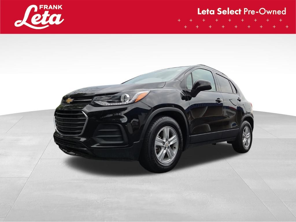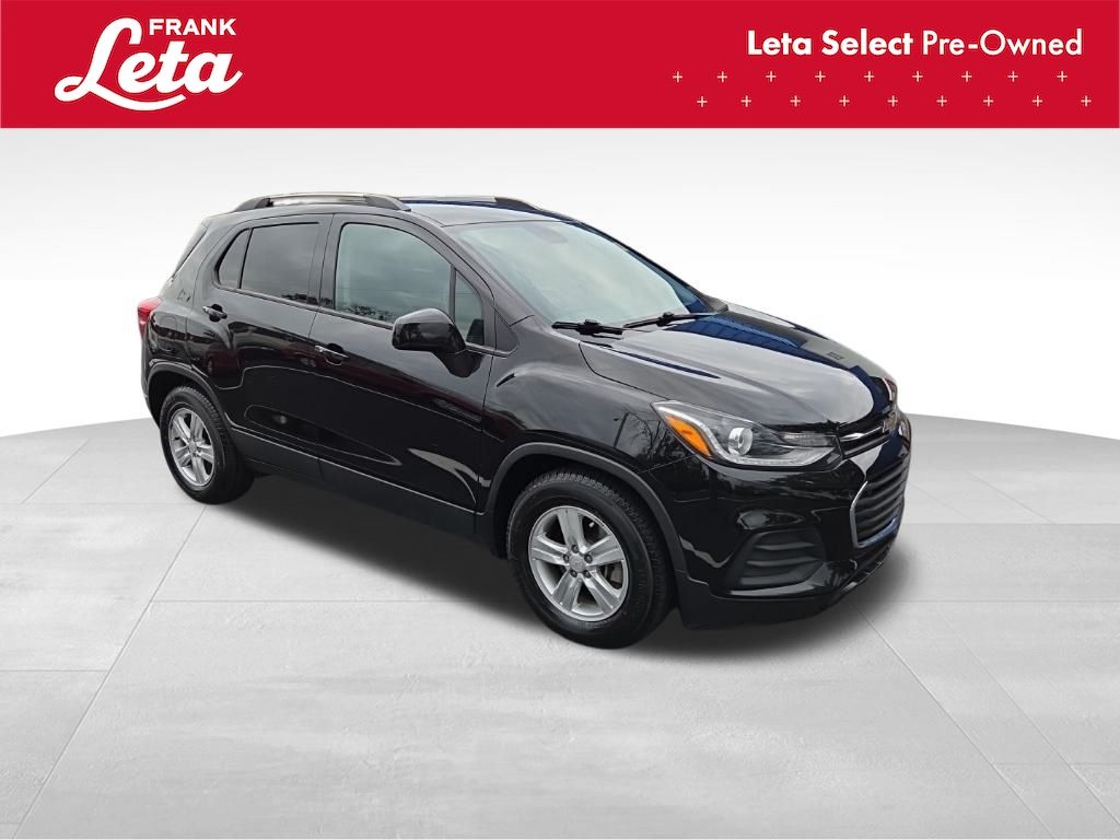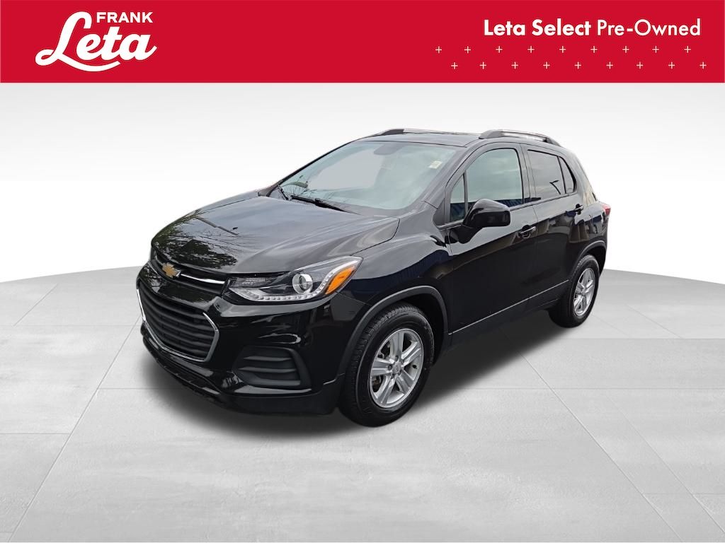 CARFAX One-Owner. 2021 Chevrolet Trax LT Mosaic Black Metallic Trax LT, Frank Leta Select Certified, ECOTEC Turbo 1.4L VVT DOHC 4-Cyl, FWD, Mosaic Black Metallic, Jet Black w/Cloth Seat Trim, 16" Aluminum Wheels, 6-Way Power Driver Seat Adjuster, Apple CarPlay/Android Auto, Exterior Parking Camera Rear, Fully automatic headlights, Keyless Open, Keyless Start, LT Convenience Package, Preferred Equipment Group 1LT, 2 Spare Keys Key System, 2 USB Ports w/Auxiliary Input Jack, 2-Way Manual Front Passenger Seat Adjuster, 3-Spoke Leather-Wrapped Steering Wheel, 3.53 Final Drive Axle Ratio, 4-Way Manual Driver Seat Adjuster, 6 Speakers, 6-Speaker Audio System Feature, ABS brakes, Air Conditioning, AM/FM radio: SiriusXM, Brake assist, Bumpers: body-color, Compass, Delay-off headlights, Deluxe Cloth/Leatherette Seat Trim, Driver door bin, Driver vanity mirror, Driver's Seat Mounted Armrest, Dual front impact airbags, Dual front side impact airbags, Electronic Stability Control, Emergency communication system: OnStar and Chevrolet connected services capable, Front anti-roll bar, Front Bucket Seats, Front Bucket Seats w/Driver Power Lumbar, Front License Plate Bracket, Front reading lights, Front wheel independent suspension, Heated door mirrors, Illuminated entry, Knee airbag, Low tire pressure warning, Occupant sensing airbag, Outside temperature display, Overhead airbag, Panic alarm, Passenger door bin, Passenger vanity mirror, Power door mirrors, Power steering, Power windows, Premium audio system: Chevrolet MyLink, Radio data system, Radio: Chevrolet Infotainment 3 System, Rear seat center armrest, Rear side impact airbag, Rear window defroster, Rear window wiper, Remote keyless entry, Roof rack: rails only, Security system, SiriusXM Radio, Speed control, Split folding rear seat, Spoiler, Steering wheel mounted audio controls, Tachometer, Telescoping steering wheel, Tilt steering wheel, Traction control, Trip computer, Variably intermittent wipers, Trax LT, ECOTEC Turbo 1.4L VVT DOHC 4-Cyl, FWD, Mosaic Black Metallic, Jet Black w/Cloth Seat Trim, 16" Aluminum Wheels, 6-Way Power Driver Seat Adjuster, Apple CarPlay/Android Auto, Exterior Parking Camera Rear, Fully automatic headlights, Keyless Open, Keyless Start, LT Convenience Package, Preferred Equipment Group 1LT. ECOTEC Turbo 1.4L VVT DOHC 4-Cyl 6-Speed Automatic FWD 4D Sport Utility 26/31 City/Highway MPG
