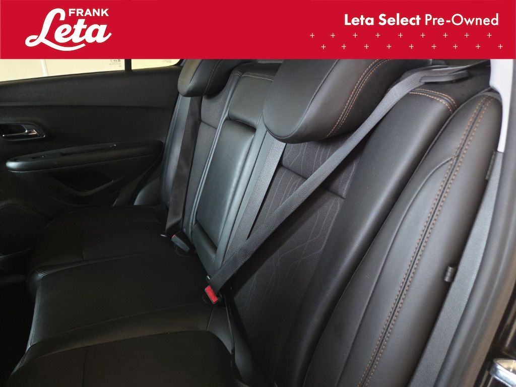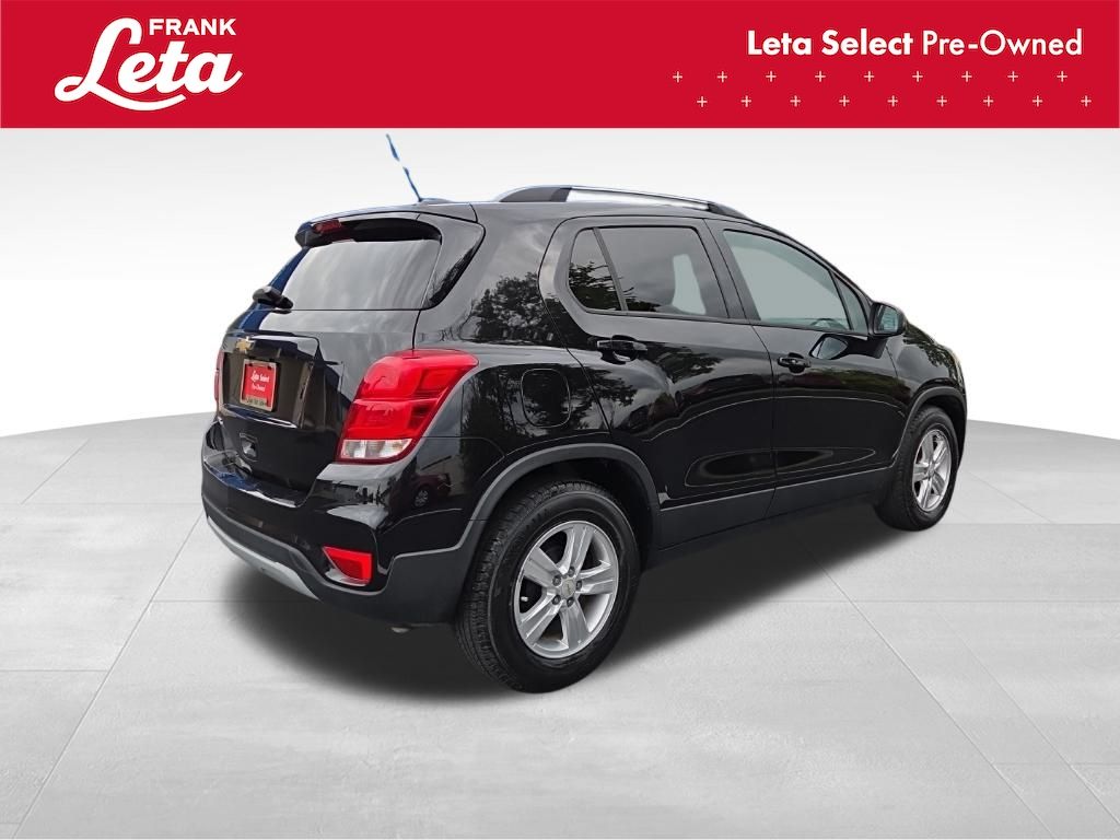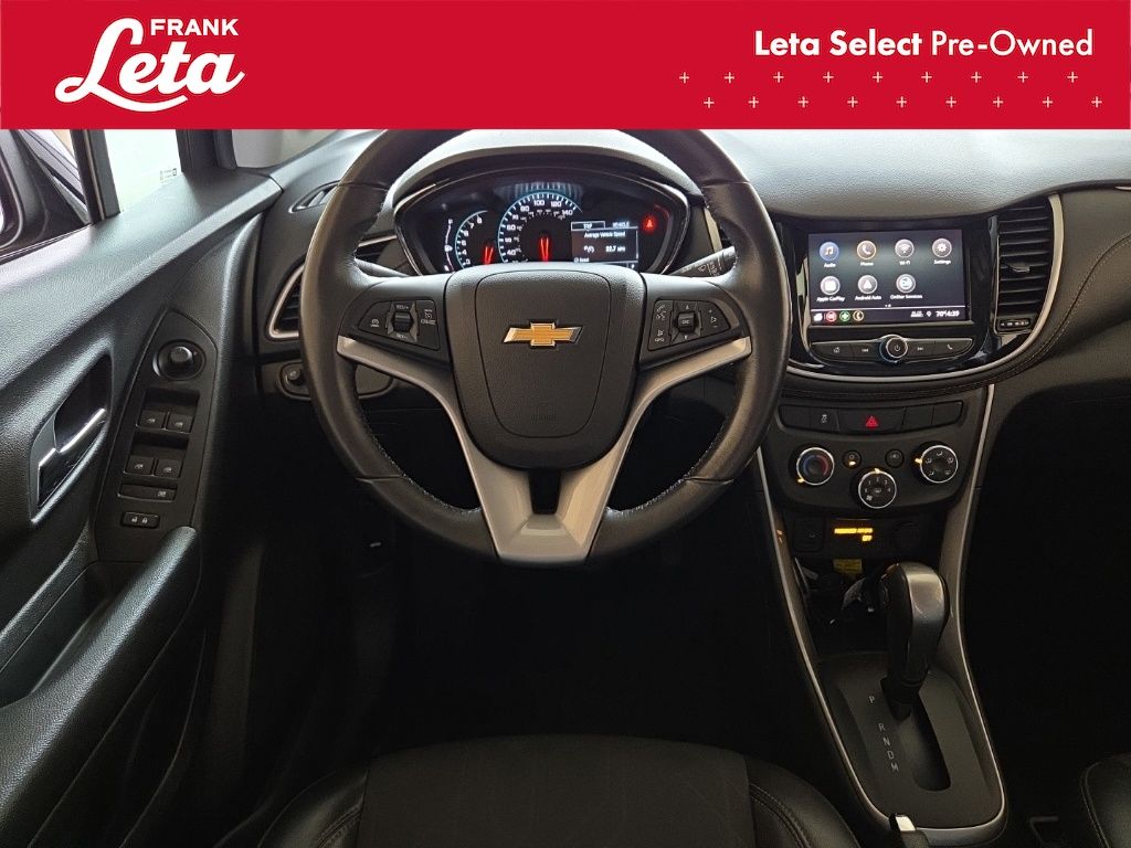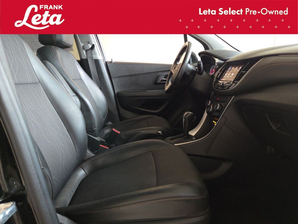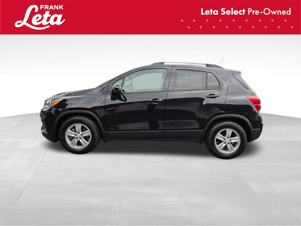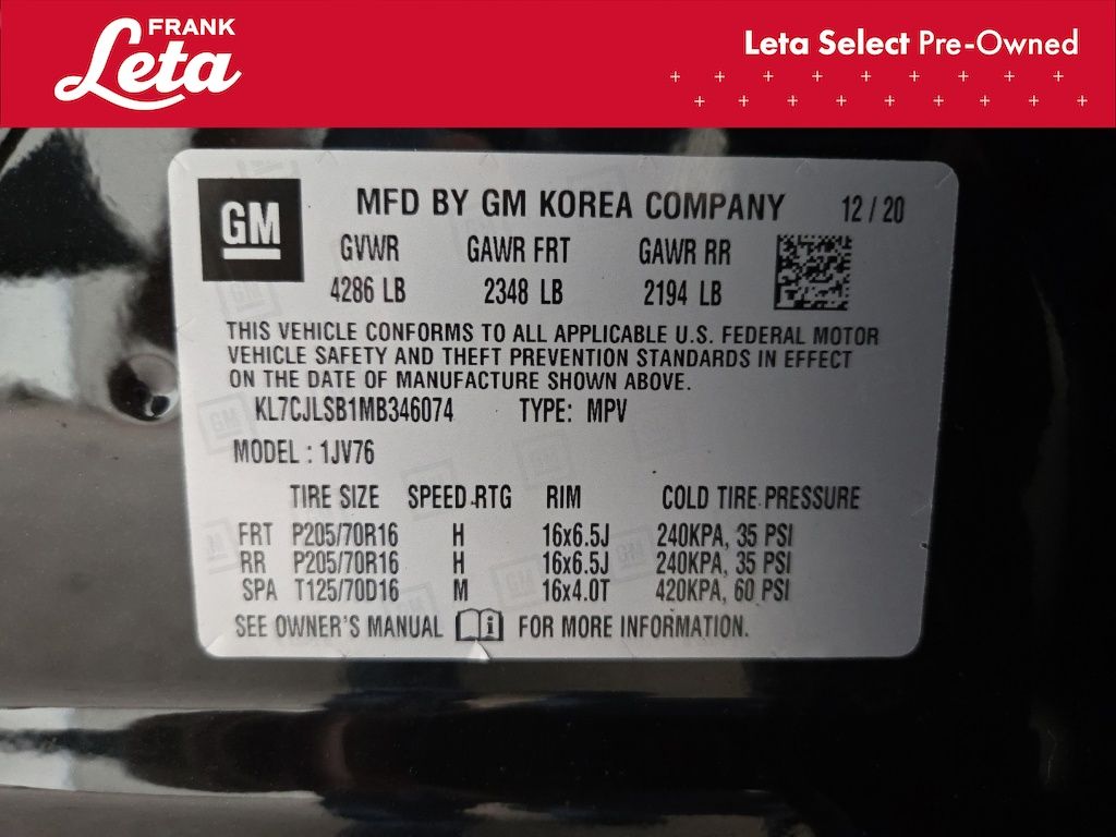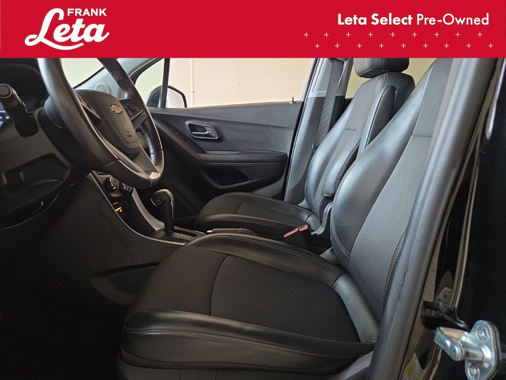 CARFAX One-Owner. 2021 Chevrolet Trax LT Mosaic Black Metallic Trax LT, Frank Leta Select Certified, ECOTEC Turbo 1.4L VVT DOHC 4-Cyl, FWD, Mosaic Black Metallic, Jet Black w/Cloth Seat Trim, 16" Aluminum Wheels, 6-Way Power Driver Seat Adjuster, Apple CarPlay/Android Auto, Exterior Parking Camera Rear, Fully automatic headlights, Keyless Open, Keyless Start, LT Convenience Package, Preferred Equipment Group 1LT, 2 Spare Keys Key System, 2 USB Ports w/Auxiliary Input Jack, 2-Way Manual Front Passenger Seat Adjuster, 3-Spoke Leather-Wrapped Steering Wheel, 3.53 Final Drive Axle Ratio, 4-Way Manual Driver Seat Adjuster, 6 Speakers, 6-Speaker Audio System Feature, ABS brakes, Air Conditioning, AM/FM radio: SiriusXM, Brake assist, Bumpers: body-color, Compass, Delay-off headlights, Deluxe Cloth/Leatherette Seat Trim, Driver door bin, Driver vanity mirror, Driver's Seat Mounted Armrest, Dual front impact airbags, Dual front side impact airbags, Electronic Stability Control, Emergency communication system: OnStar and Chevrolet connected services capable, Front anti-roll bar, Front Bucket Seats, Front Bucket Seats w/Driver Power Lumbar, Front License Plate Bracket, Front reading lights, Front wheel independent suspension, Heated door mirrors, Illuminated entry, Knee airbag, Low tire pressure warning, Occupant sensing airbag, Outside temperature display, Overhead airbag, Panic alarm, Passenger door bin, Passenger vanity mirror, Power door mirrors, Power steering, Power windows, Premium audio system: Chevrolet MyLink, Radio data system, Radio: Chevrolet Infotainment 3 System, Rear seat center armrest, Rear side impact airbag, Rear window defroster, Rear window wiper, Remote keyless entry, Roof rack: rails only, Security system, SiriusXM Radio, Speed control, Split folding rear seat, Spoiler, Steering wheel mounted audio controls, Tachometer, Telescoping steering wheel, Tilt steering wheel, Traction control, Trip computer, Variably intermittent wipers, Trax LT, ECOTEC Turbo 1.4L VVT DOHC 4-Cyl, FWD, Mosaic Black Metallic, Jet Black w/Cloth Seat Trim, 16" Aluminum Wheels, 6-Way Power Driver Seat Adjuster, Apple CarPlay/Android Auto, Exterior Parking Camera Rear, Fully automatic headlights, Keyless Open, Keyless Start, LT Convenience Package, Preferred Equipment Group 1LT. ECOTEC Turbo 1.4L VVT DOHC 4-Cyl 6-Speed Automatic FWD 4D Sport Utility 26/31 City/Highway MPG