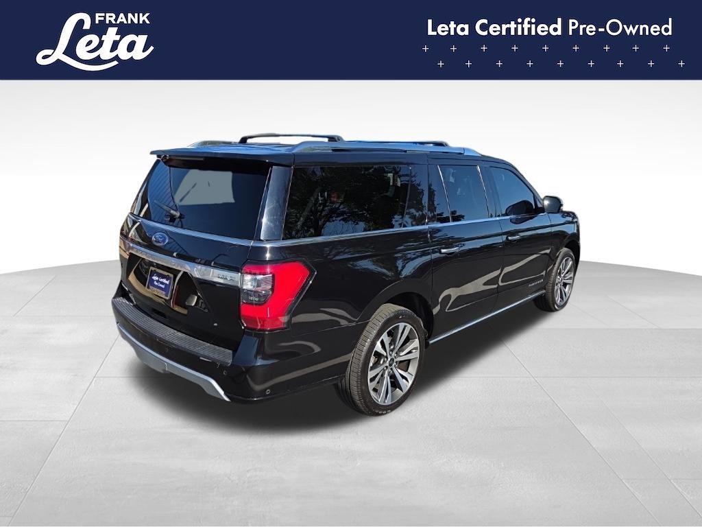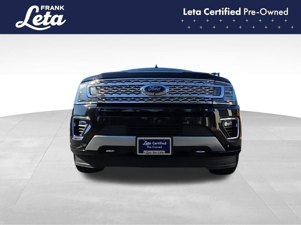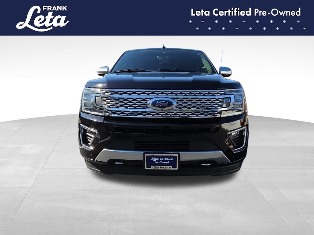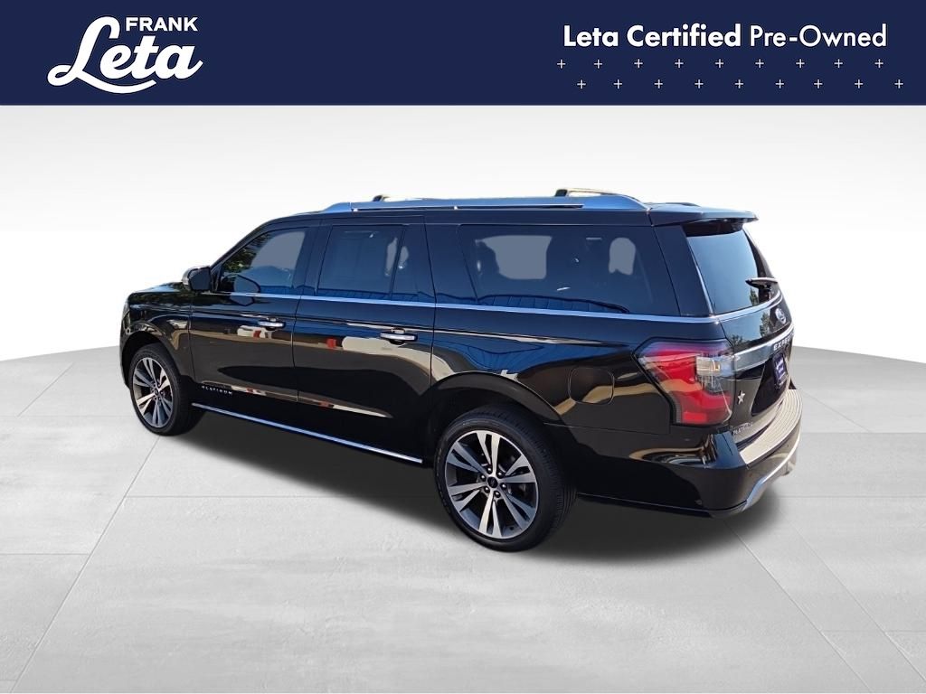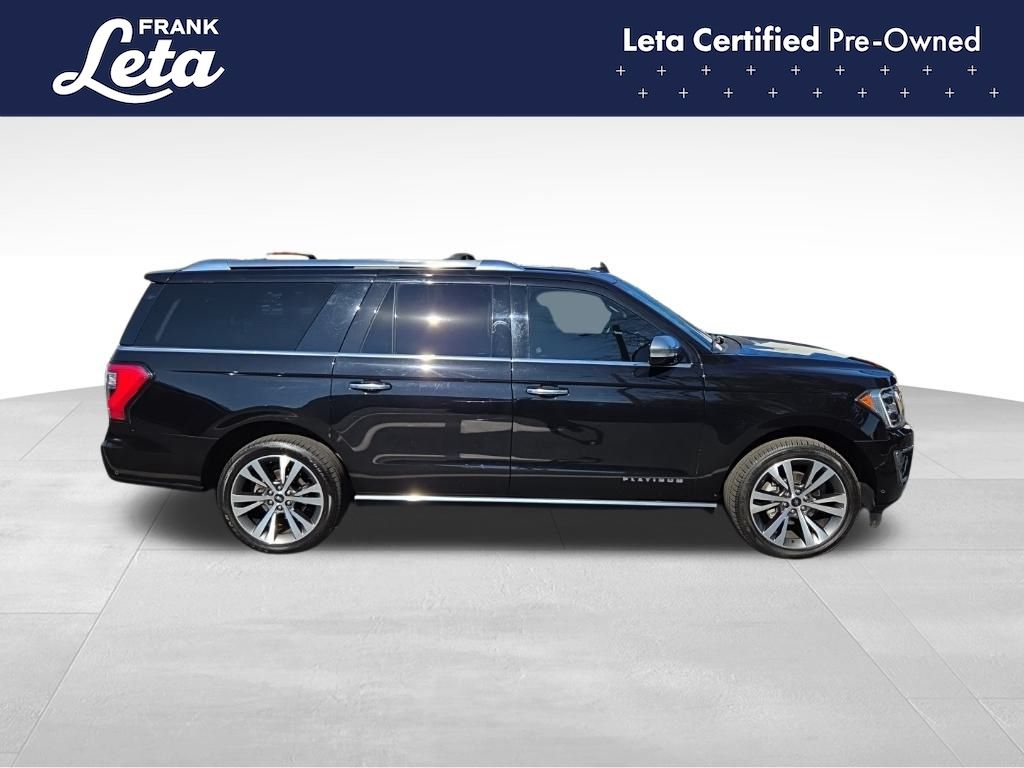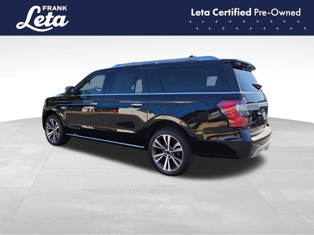 2021 Ford Expedition Max Platinum Agate Black Metallic Expedition Max Platinum, Frank Leta Certified Certified, EcoBoost 3.5L V6 GTDi DOHC 24V Twin Turbocharged, 4WD, Agate Black Metallic, Ebony w/Heated/Ventilated Leather Front Captain's Chairs, 12 Speakers, 2nd Row Captain's Chairs w/Armrests, 3.73 Axle Ratio, 3rd row seats: split-bench, Auto-dimming door mirrors, Auto-dimming Rear-View mirror, Exterior Parking Camera Rear, Front dual zone A/C, Front fog lights, Fully automatic headlights, Garage door transmitter, Heated front seats, Heated rear seats, Heated steering wheel, Heavy-Duty Engine Radiator, Heavy-Duty Trailer Tow Package, Integrated Trailer Brake Controller, Memory seat, Navigation System, Power Liftgate, Power moonroof, Pro Trailer Backup Assist, Radio: B&O Sound System by Bang & Olufsen, SiriusXM Satellite Radio, SYNC 3 Communications & Entertainment System, Ventilated front seats, Wheels: 22" 6-Spoke Painted Machined-Face Aluminum, 4-Wheel Disc Brakes, ABS brakes, Adaptive suspension, Adjustable pedals, Air Conditioning, AM/FM radio: SiriusXM, Auto High-beam Headlights, Automatic temperature control, Brake assist, Bumpers: body-color, Compass, Delay-off headlights, Dual front impact airbags, Dual front side impact airbags, Electronic Stability Control, Emergency communication system: SYNC 3 911 Assist, Equipment Group 600A Standard Package, Four wheel independent suspension, Front anti-roll bar, Front Bucket Seats, Front Center Armrest, Front reading lights, Genuine wood console insert, Genuine wood dashboard insert, Genuine wood door panel insert, Heated door mirrors, Heated/Ventilated Leather Front Captain's Chairs, Illuminated entry, Leather steering wheel, Low tire pressure warning, Occupant sensing airbag, Outside temperature display, Overhead airbag, Overhead console, Panic alarm, Passenger door bin, Passenger vanity mirror, Pedal memory, Power door mirrors, Power driver seat, Power passenger seat, Power steering, Power windows, Radio data system, Rain sensing wipers, Rear air conditioning, Rear anti-roll bar, Rear audio controls, Rear reading lights, Rear window defroster, Rear window wiper, Reclining 3rd row seat, Remote keyless entry, Roof rack, Security system, Speed control, Speed-sensing steering, Speed-Sensitive Wipers, Split folding rear seat, Steering wheel memory, Steering wheel mounted audio controls, Tachometer, Telescoping steering wheel, Tilt steering wheel, Traction control, Trip computer, Turn signal indicator mirrors, Variably intermittent wipers, Voltmeter, Expedition Max Platinum, EcoBoost 3.5L V6 GTDi DOHC 24V Twin Turbocharged, 4WD, Agate Black Metallic, Ebony w/Heated/Ventilated Leather Front Captain's Chairs, 12 Speakers, 2nd Row Captain's Chairs w/Armrests, 3.73 Axle Ratio, 3rd row seats: split-bench, Auto-dimming door mirrors, Auto-dimming Rear-View mirror, Exterior Parking Camera Rear, Front dual zone A/C, Front fog lights, Fully automatic headlights, Garage door transmitter, Heated front seats, Heated rear seats, Heated steering wheel, Heavy-Duty Engine Radiator, Heavy-Duty Trailer Tow Package, Integrated Trailer Brake Controller, Memory seat, Navigation System, Power Liftgate, Power moonroof, Pro Trailer Backup Assist, Radio: B&O Sound System by Bang & Olufsen, SiriusXM Satellite Radio, SYNC 3 Communications & Entertainment System, Ventilated front seats, Wheels: 22" 6-Spoke Painted Machined-Face Aluminum. EcoBoost 3.5L V6 GTDi DOHC 24V Twin Turbocharged 10-Speed Automatic 4WD 4D Sport Utility