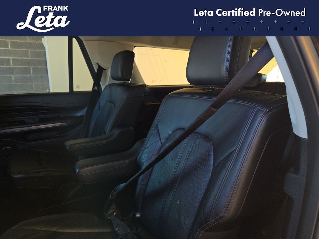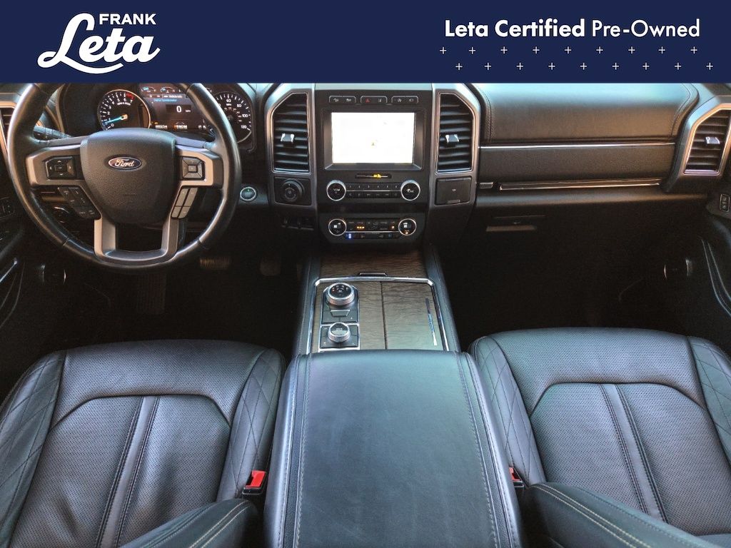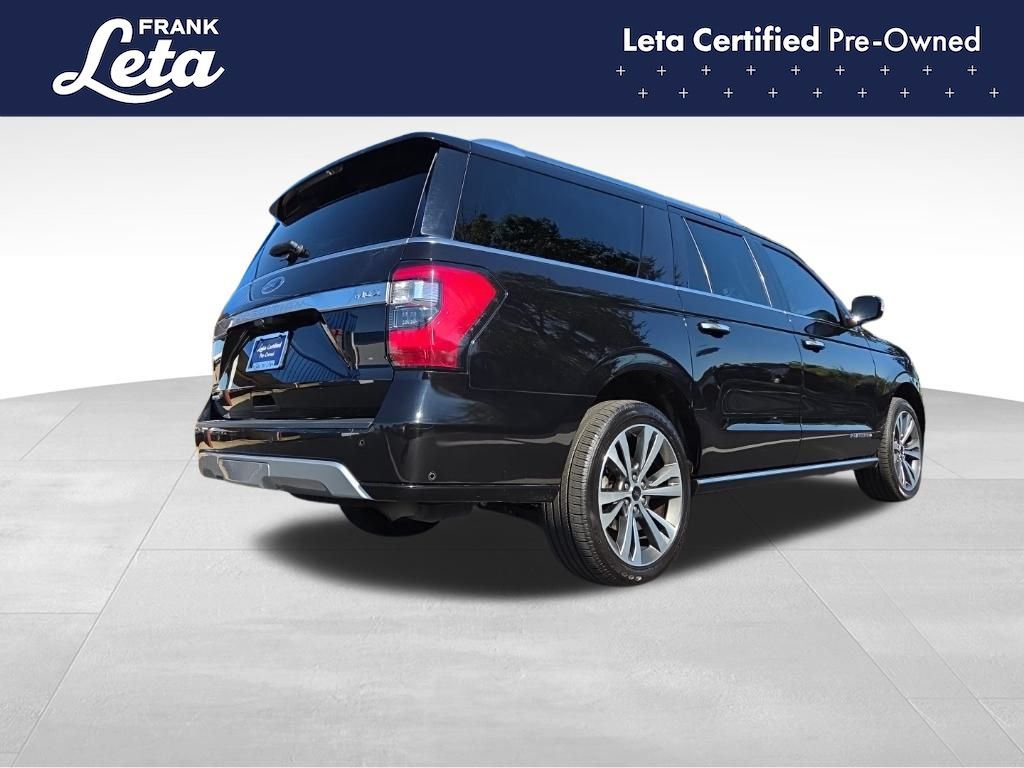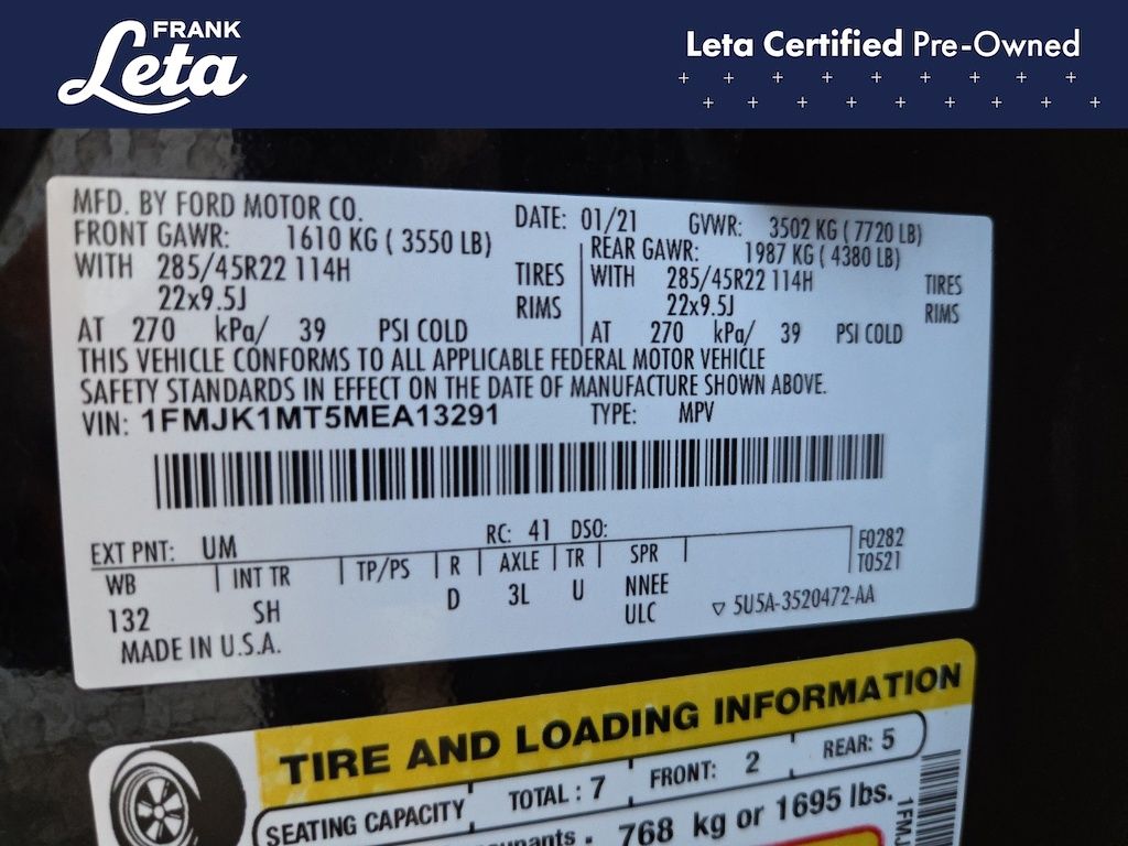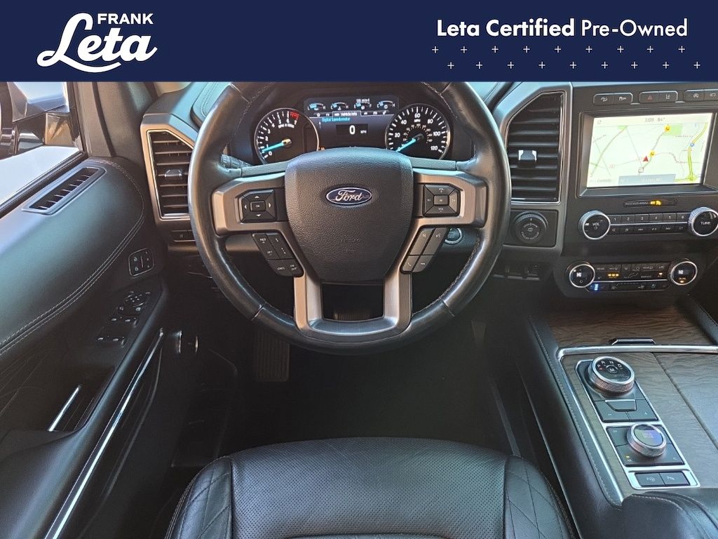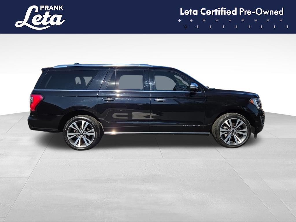 2021 Ford Expedition Max Platinum Agate Black Metallic Expedition Max Platinum, Frank Leta Certified Certified, EcoBoost 3.5L V6 GTDi DOHC 24V Twin Turbocharged, 4WD, Agate Black Metallic, Ebony w/Heated/Ventilated Leather Front Captain's Chairs, 12 Speakers, 2nd Row Captain's Chairs w/Armrests, 3.73 Axle Ratio, 3rd row seats: split-bench, Auto-dimming door mirrors, Auto-dimming Rear-View mirror, Exterior Parking Camera Rear, Front dual zone A/C, Front fog lights, Fully automatic headlights, Garage door transmitter, Heated front seats, Heated rear seats, Heated steering wheel, Heavy-Duty Engine Radiator, Heavy-Duty Trailer Tow Package, Integrated Trailer Brake Controller, Memory seat, Navigation System, Power Liftgate, Power moonroof, Pro Trailer Backup Assist, Radio: B&O Sound System by Bang & Olufsen, SiriusXM Satellite Radio, SYNC 3 Communications & Entertainment System, Ventilated front seats, Wheels: 22" 6-Spoke Painted Machined-Face Aluminum, 4-Wheel Disc Brakes, ABS brakes, Adaptive suspension, Adjustable pedals, Air Conditioning, AM/FM radio: SiriusXM, Auto High-beam Headlights, Automatic temperature control, Brake assist, Bumpers: body-color, Compass, Delay-off headlights, Dual front impact airbags, Dual front side impact airbags, Electronic Stability Control, Emergency communication system: SYNC 3 911 Assist, Equipment Group 600A Standard Package, Four wheel independent suspension, Front anti-roll bar, Front Bucket Seats, Front Center Armrest, Front reading lights, Genuine wood console insert, Genuine wood dashboard insert, Genuine wood door panel insert, Heated door mirrors, Heated/Ventilated Leather Front Captain's Chairs, Illuminated entry, Leather steering wheel, Low tire pressure warning, Occupant sensing airbag, Outside temperature display, Overhead airbag, Overhead console, Panic alarm, Passenger door bin, Passenger vanity mirror, Pedal memory, Power door mirrors, Power driver seat, Power passenger seat, Power steering, Power windows, Radio data system, Rain sensing wipers, Rear air conditioning, Rear anti-roll bar, Rear audio controls, Rear reading lights, Rear window defroster, Rear window wiper, Reclining 3rd row seat, Remote keyless entry, Roof rack, Security system, Speed control, Speed-sensing steering, Speed-Sensitive Wipers, Split folding rear seat, Steering wheel memory, Steering wheel mounted audio controls, Tachometer, Telescoping steering wheel, Tilt steering wheel, Traction control, Trip computer, Turn signal indicator mirrors, Variably intermittent wipers, Voltmeter, Expedition Max Platinum, EcoBoost 3.5L V6 GTDi DOHC 24V Twin Turbocharged, 4WD, Agate Black Metallic, Ebony w/Heated/Ventilated Leather Front Captain's Chairs, 12 Speakers, 2nd Row Captain's Chairs w/Armrests, 3.73 Axle Ratio, 3rd row seats: split-bench, Auto-dimming door mirrors, Auto-dimming Rear-View mirror, Exterior Parking Camera Rear, Front dual zone A/C, Front fog lights, Fully automatic headlights, Garage door transmitter, Heated front seats, Heated rear seats, Heated steering wheel, Heavy-Duty Engine Radiator, Heavy-Duty Trailer Tow Package, Integrated Trailer Brake Controller, Memory seat, Navigation System, Power Liftgate, Power moonroof, Pro Trailer Backup Assist, Radio: B&O Sound System by Bang & Olufsen, SiriusXM Satellite Radio, SYNC 3 Communications & Entertainment System, Ventilated front seats, Wheels: 22" 6-Spoke Painted Machined-Face Aluminum. EcoBoost 3.5L V6 GTDi DOHC 24V Twin Turbocharged 10-Speed Automatic 4WD 4D Sport Utility