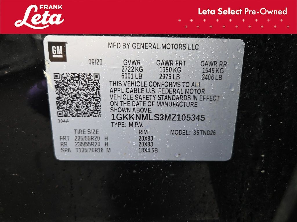 - VIN : 1GKKNMLS3MZ105345