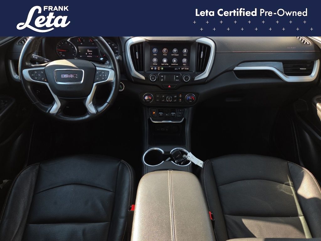 2021 GMC Terrain SLT Summit White Terrain SLT, AWD, Summit White, Jet Black w/Perforated Leather-Appointed Seat Trim, Apple CarPlay/Android Auto, Auto-dimming Rear-View mirror, Bluetooth For Phone, Exterior Parking Camera Rear, Front dual zone A/C, Front fog lights, Fully automatic headlights, Garage door transmitter, Heated door mirrors, Heated front seats, Heated steering wheel, High-Intensity Discharge Headlights, Lane Change Alert w/Side Blind Zone Alert, Lane Departure Warning System, Memory seat, Power Liftgate, Rear Cross-Traffic Alert, Rear Park Assist, Wheels: 18" x 7" Machined Aluminum w/Gray Accents, 2 USB Data Ports, 2 USB Data Ports w/SD Card Reader, 3.47 Axle Ratio, 4-Wheel Disc Brakes, 6 Speakers, 6-Speaker Audio System Feature, 8-Way Power Driver Seat Adjuster, ABS brakes, Adaptive Cruise Control, Air Conditioning, AM/FM radio: SiriusXM, Auto High-beam Headlights, Auto-dimming door mirrors, Automatic temperature control, Brake assist, Bumpers: body-color, Compass, Delay-off headlights, Driver & Front Passenger Heated Seats, Driver door bin, Driver vanity mirror, Dual front impact airbags, Dual front side impact airbags, Electronic Stability Control, Emergency communication system: OnStar and GMC connected services capable, Floor Liner Package (LPO), Four wheel independent suspension, Front & Rear All-Weather Floor Liners (LPO), Front anti-roll bar, Front Bucket Seats, Front Center Armrest, Front reading lights, GMC Pro Safety Plus, Illuminated entry, Integrated Cargo Liner (LPO), License Plate Front Mounting Package, Low tire pressure warning, Occupant sensing airbag, Outside temperature display, Overhead airbag, Overhead console, Panic alarm, Passenger door bin, Passenger vanity mirror, Perforated Leather-Appointed Seat Trim, Power door mirrors, Power Driver Lumbar Control, Power driver seat, Power passenger seat, Power steering, Power windows, Preferred Equipment Group 4SA, Radio data system, Radio: GMC Infotainment Audio System w/8" Display, Rear anti-roll bar, Rear seat center armrest, Rear window defroster, Rear window wiper, Remote keyless entry, Roof rack: rails only, Safety Alert Seat, Security system, SiriusXM Radio, Speed control, Speed-sensing steering, Split folding rear seat, Spoiler, Steering wheel mounted audio controls, Tachometer, Telescoping steering wheel, Tilt steering wheel, Traction control, Trip computer, Turn signal indicator mirrors, Variably intermittent wipers, Terrain SLT, AWD, Summit White, Jet Black w/Perforated Leather-Appointed Seat Trim, Apple CarPlay/Android Auto, Auto-dimming Rear-View mirror, Bluetooth For Phone, Exterior Parking Camera Rear, Front dual zone A/C, Front fog lights, Fully automatic headlights, Garage door transmitter, Heated door mirrors, Heated front seats, Heated steering wheel, High-Intensity Discharge Headlights, Lane Change Alert w/Side Blind Zone Alert, Lane Departure Warning System, Memory seat, Power Liftgate, Rear Cross-Traffic Alert, Rear Park Assist, Wheels: 18" x 7" Machined Aluminum w/Gray Accents. 1.5L DOHC 9-Speed Automatic AWD 4D Sport Utility Odometer is 33172 miles below market average! 25/28 City/Highway MPG