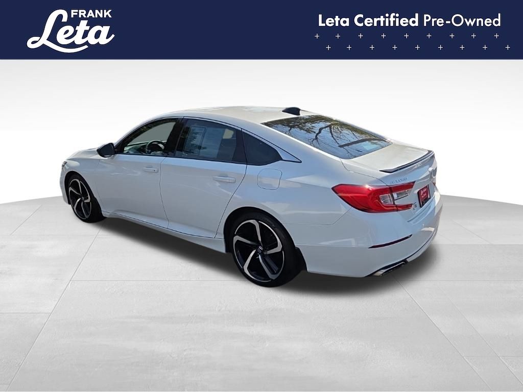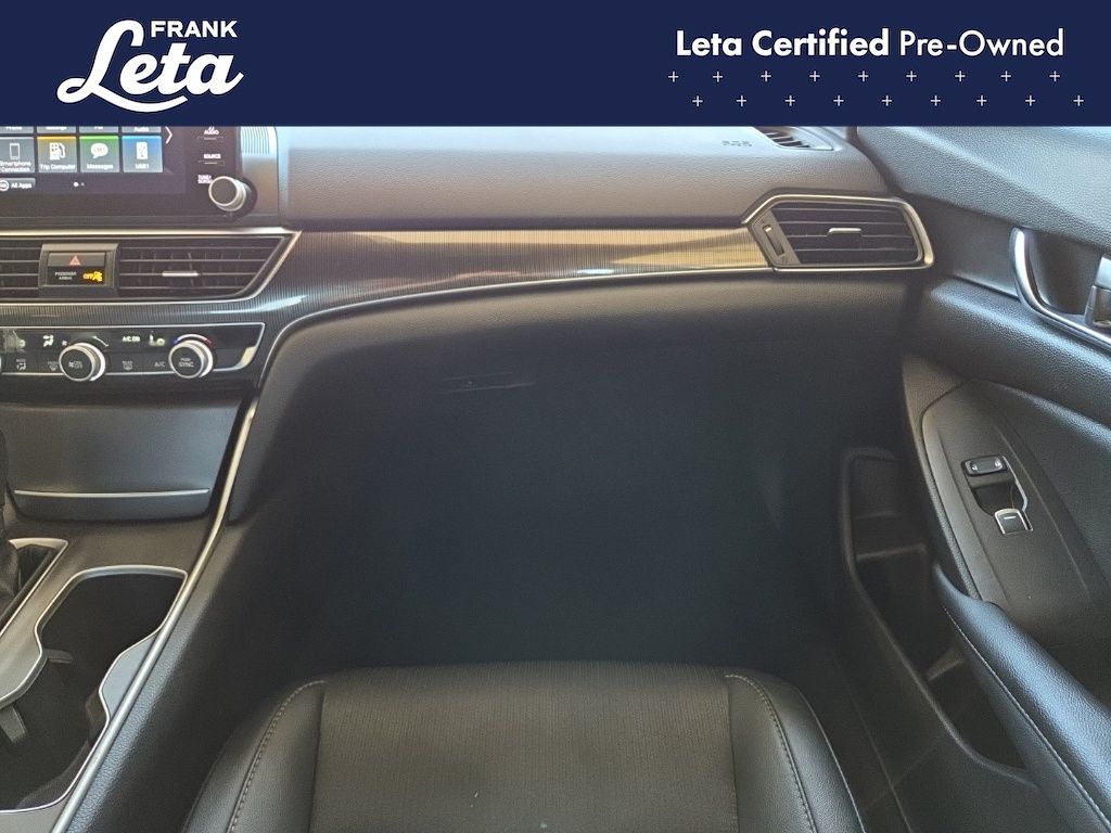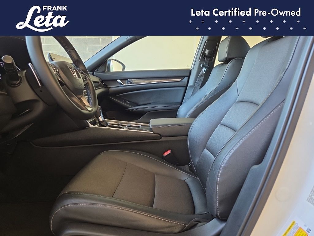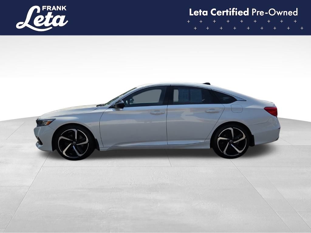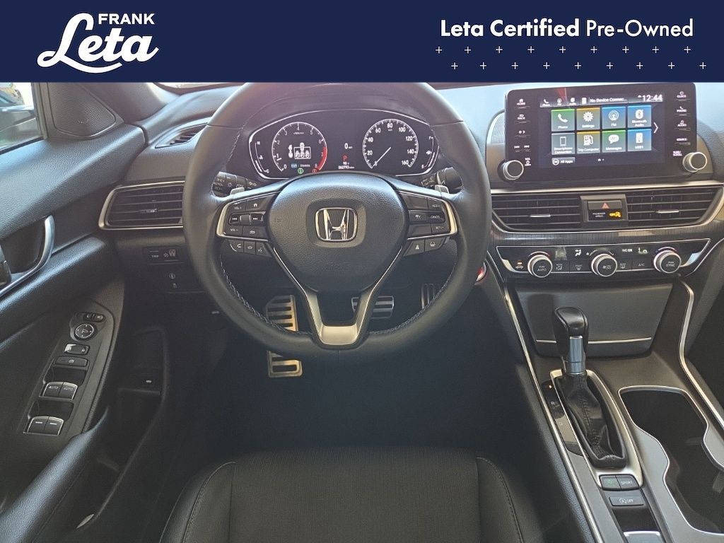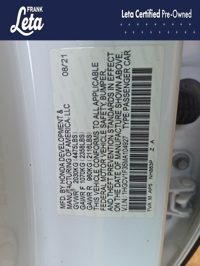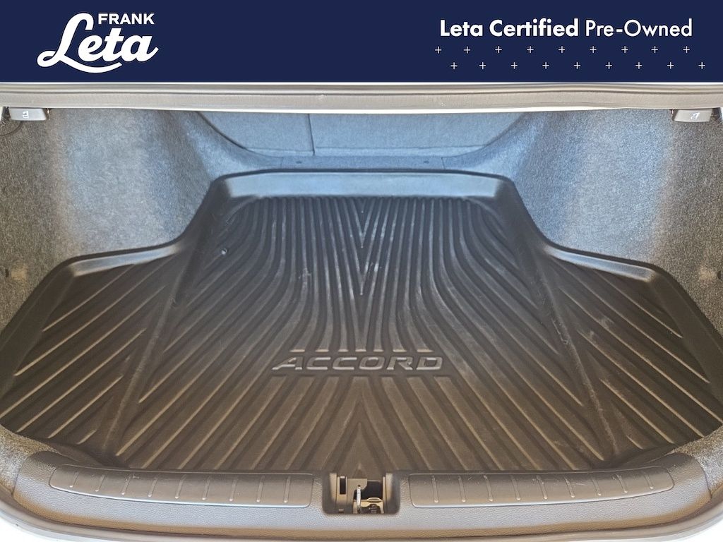 CARFAX One-Owner. 2021 Honda Accord Sport Platinum White Pearl Accord Sport, Frank Leta Certified Certified, 1.5T I4 DOHC 16V Turbocharged VTEC, FWD, Platinum White Pearl, Black w/Cloth Seat Trim, Adaptive Cruise Control: Adaptive Cruise Control (ACC) with Low-Speed Follow, Apple CarPlay/Android Auto, Brake assist, Exterior Parking Camera Rear, Forward collision: Collision Mitigation Braking System (CMBS) + FCW mitigation, Front dual zone A/C, Front fog lights, Fully automatic headlights, Lane Departure Warning System, Wheels: 19" Machine-Finished Alloy w/Black Inserts, 4-Wheel Disc Brakes, 8 Speakers, ABS brakes, Air Conditioning, AM/FM radio, Auto High-beam Headlights, Automatic temperature control, Bumpers: body-color, Cloth Seat Trim, Delay-off headlights, Driver door bin, Driver vanity mirror, Dual front impact airbags, Dual front side impact airbags, Electronic Stability Control, Emergency communication system: HondaLink, Four wheel independent suspension, Front anti-roll bar, Front Bucket Seats, Front Center Armrest, Front reading lights, Illuminated entry, Knee airbag, Leather Shift Knob, Leather steering wheel, Low tire pressure warning, Occupant sensing airbag, Outside temperature display, Overhead airbag, Overhead console, Panic alarm, Passenger door bin, Passenger vanity mirror, Power door mirrors, Power driver seat, Power steering, Power windows, Radio data system, Radio: 180-Watt AM/FM Audio System, Rear anti-roll bar, Rear seat center armrest, Rear window defroster, Remote keyless entry, Security system, Speed control, Speed-sensing steering, Speed-Sensitive Wipers, Split folding rear seat, Spoiler, Steering wheel mounted audio controls, Tachometer, Telescoping steering wheel, Tilt steering wheel, Traction control, Trip computer, Variably intermittent wipers, Accord Sport, 1.5T I4 DOHC 16V Turbocharged VTEC, FWD, Platinum White Pearl, Black w/Cloth Seat Trim, Adaptive Cruise Control: Adaptive Cruise Control (ACC) with Low-Speed Follow, Apple CarPlay/Android Auto, Brake assist, Exterior Parking Camera Rear, Forward collision: Collision Mitigation Braking System (CMBS) + FCW mitigation, Front dual zone A/C, Front fog lights, Fully automatic headlights, Lane Departure Warning System, Wheels: 19" Machine-Finished Alloy w/Black Inserts. 1.5T I4 DOHC 16V Turbocharged VTEC CVT FWD 4D Sedan 29/35 City/Highway MPG