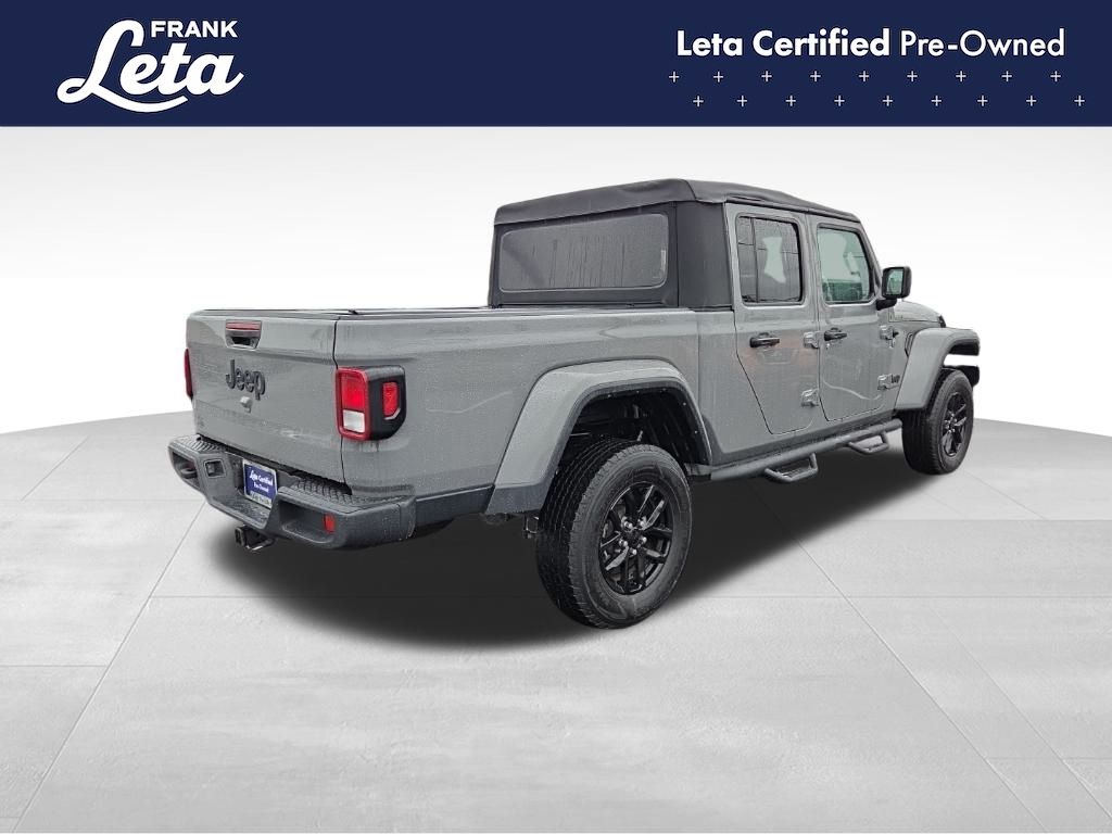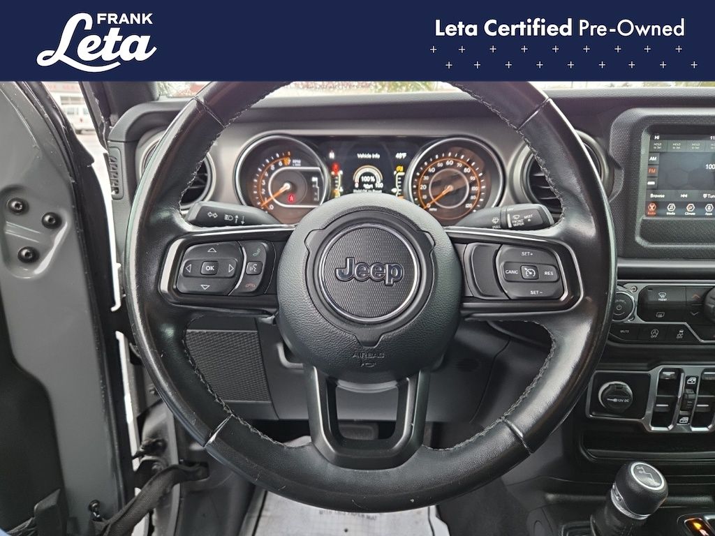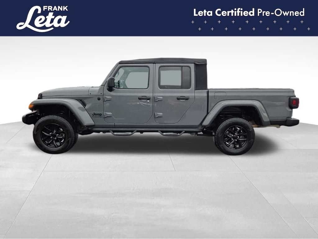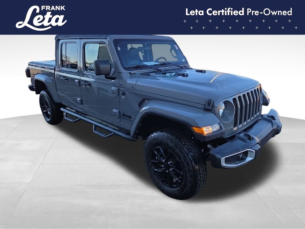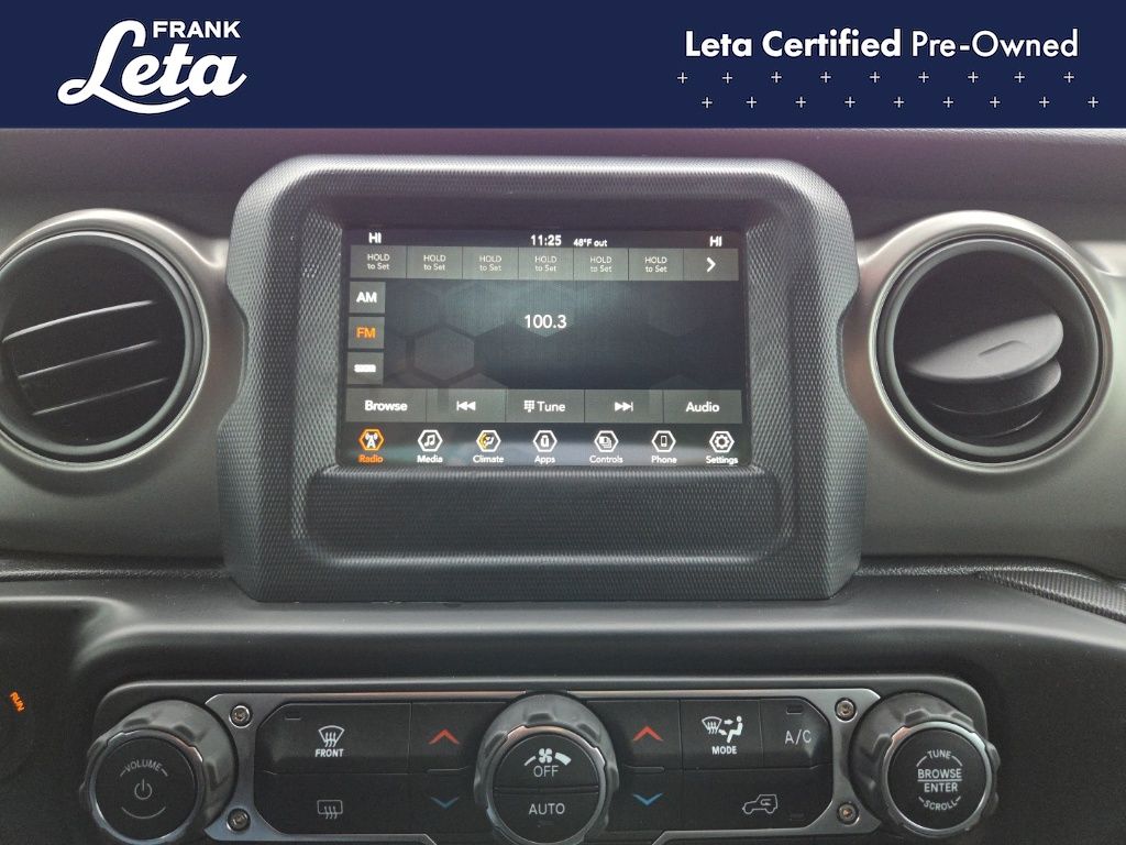 2021 Jeep Gladiator Sport Sting-Gray Clearcoat Gladiator Sport, Frank Leta Certified Certified, 4D Crew Cab, 4WD, Sting-Gray Clearcoat, Black w/Cloth Low-Back Bucket Seats or Leather Trimmed Bucket Seats, 220 Amp Alternator, Alpine Premium Audio System, Anti-Spin Differential Rear Axle, Apple CarPlay, Bluetooth Wireless Speaker, Front fog lights, Google Android Auto, Integrated Voice Command w/Bluetooth, MOPAR Spray In Bedliner, ParkView Rear Back-Up Camera, Wheels: 17" x 7.5" Gloss Black Aluminum, 110 mph Vehicle Max Speed Calibration, 240 Amp Alternator, 3.73 Rear Axle Ratio, 4-Wheel Disc Brakes, 7.0" Touch Screen Display, 8 Speakers, ABS brakes, Air Conditioning, Air Conditioning w/Auto Temperature Control, AM/FM radio, Anti-Lock 4-Wheel Disc Heavy Duty Brakes, Automatic Headlamps, Body Color Fender Flares (2-Piece), Brake assist, Class IV Hitch Receiver, Cloth Low-Back Bucket Seats, Cluster 7.0" TFT Color Display, Compass, Convenience Group, Corning Gorilla Glass, Daytime Running Lamp System, Deep Tint Sunscreen Windows, Delay-off headlights, Driver door bin, Driver vanity mirror, Dual front impact airbags, Dual front side impact airbags, Electronic Stability Control, Front 1-Touch Down Power Windows, Front anti-roll bar, Front Bucket Seats, Front Center Armrest w/Storage, Front reading lights, GPEC 5 Engine Controller, GPS Antenna Input, Heavy-Duty Engine Cooling, Integrated Center Stack Radio, Integrated roll-over protection, Leather Wrapped Steering Wheel, Low tire pressure warning, Molded in Color Bumper w/Accent Color, MOPAR 1941 Hood Decal, Normal Duty Plus Suspension, Normal Duty Suspension, Occupant sensing airbag, Outside temperature display, Passenger door bin, Passenger vanity mirror, Power Heated Mirrors, Power steering, Power Tailgate Lock, Premium Black Sunrider Soft Top, Quick Order Package 24S Sport S, Radio data system, Radio: Uconnect 4 w/7" Display, Rear anti-roll bar, Rear reading lights, Remote Keyless Entry, Security Alarm, SiriusXM Radio Service, SiriusXM Satellite Radio, Speed control, Speed Sensitive Power Locks, Split folding rear seat, Sport S, Steering wheel mounted audio controls, Sun Visors w/Illuminated Vanity Mirrors, Tachometer, Technology Group, Telescoping steering wheel, Tilt steering wheel, Traction control, Trailer Hitch Zoom, Trailer Tow Package, Trip computer, USB Host Flip, Variably intermittent wipers, Gladiator Sport, 4D Crew Cab, 4WD, Sting-Gray Clearcoat, Black w/Cloth Low-Back Bucket Seats or Leather Trimmed Bucket Seats, 220 Amp Alternator, Alpine Premium Audio System, Anti-Spin Differential Rear Axle, Apple CarPlay, Bluetooth Wireless Speaker, Front fog lights, Google Android Auto, Integrated Voice Command w/Bluetooth, MOPAR Spray In Bedliner, ParkView Rear Back-Up Camera, Wheels: 17" x 7.5" Gloss Black Aluminum. 3.6L V6 24V VVT 8-Speed Automatic 4WD 4D Crew Cab