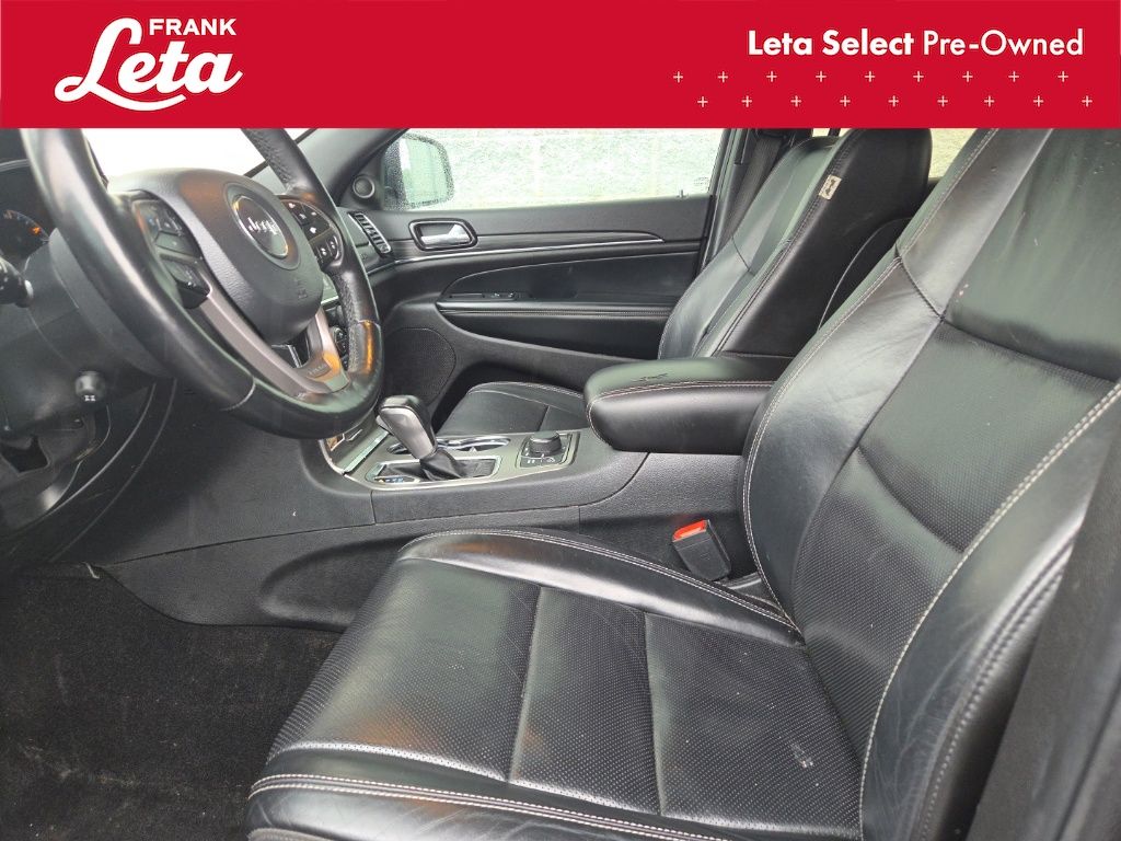 2021 Jeep Grand Cherokee 80th Anniversary Edition Granite Crystal Metallic Clearcoat Grand Cherokee 80th Anniversary Edition, Frank Leta Select Certified, 4WD, Granite Crystal Metallic Clearcoat, Black w/Leather Trimmed Bucket Seats or Leather Trimmed Seats w/Perforated Inserts or Leather Trimmed Bucket Seats (JY) or Leather Trimmed Seats, 506 Watt Amplifier, 80th Anniversary Luxury Group, Active Noise Control System, Adaptive Cruise Control w/Stop, Apple CarPlay, Dual-Pane Panoramic Sunroof, Front dual zone A/C, Front fog lights, Fully automatic headlights, Garage door transmitter, Google Android Auto, Heated front seats, Heated Second Row Seats, Heated steering wheel, Memory seat, Navigation System, ParkView Rear Back-Up Camera, Power Liftgate, Power Tilt/Telescope Steering Column, Premium Alpine Speaker System, Ventilated Front Seats, Wheels: 20" x 8.0" Granite Crystal Aluminum, 1-Year SiriusXM Guardian Trial, 230MM Rear Axle, 3.45 Rear Axle Ratio, 4-Wheel Disc Brakes, 4G LTE Wi-Fi Hot Spot, 6 Speakers, 8.4" Touchscreen Display, ABS brakes, Advanced Brake Assist, Air Conditioning, AM/FM radio: SiriusXM, Anti-whiplash front head restraints, Apple CarPlay/Android Auto, Audio memory, Auto-dimming door mirrors, Auto-dimming Rear-View mirror, Automatic temperature control, Berber Floor Mats w/80th Anniversary Tag, Black Roof Molding, Body Color Claddings, Body Color Door Handles, Body Color Shark Fin Antenna, Brake assist, Bumpers: body-color, Compass, Dark Day Light Opening Moldings, Dark Headlamp Bezel Finish, Dark Lens Taillamps, Delay-off headlights, Driver door bin, Driver vanity mirror, Dual front impact airbags, Dual front side impact airbags, Electronic Stability Control, Emergency communication system: SiriusXM Guardian, Four wheel independent suspension, Front Accent/Body Color Fascia, Front anti-roll bar, Front Bucket Seats, Front Center Armrest w/Storage, Front License Plate Bracket, Front reading lights, Full Speed FWD Collision Warn Plus, GPS Antenna Input, GPS Navigation, Granite Crystal Exterior Accents, Granite Crystal Exterior Badging, Granite Crystal Exterior Mirror Caps, Granite Crystal/Black Grille, HD Radio, Heated door mirrors, Illuminated entry, Integrated Voice Command w/Bluetooth, Jeep 80th Anniversary Badges, Jeep 80th Anniversary Edition, Knee airbag, Lane Departure Warning Plus, Leather Shift Knob, Leather Trimmed Bucket Seats, Leather Trimmed Bucket Seats (JY), Low tire pressure warning, LT. Tungsten Interior Accent Stitching, Normal Duty Suspension, Occupant sensing airbag, Outside temperature display, Overhead airbag, Overhead console, Panic alarm, Parallel & Perp Park Assist w/Stop, Passenger door bin, Passenger vanity mirror, Piano Black/Anod. Gunmetal Interior Accents, Power door mirrors, Power driver seat, Power passenger seat, Power steering, Power windows, Quick Order Package 2BK 80th, Radio data system, Radio: Uconnect 4C Nav w/8.4" Display, Rain Sensitive Windshield Wipers, Rear Accent/Body Color Fascia, Rear anti-roll bar, Rear reading lights, Rear seat center armrest, Rear window defroster, Rear window wiper, Remote keyless entry, Roof rack: rails only, Security system, SiriusXM Satellite Radio, SiriusXM Traffic Plus, SiriusXM Travel Link, Speed control, Speed-sensing steering, Speed-Sensitive Wipers, Split folding rear seat, Spoiler, Steering wheel mounted audio controls, Tachometer, Telescoping steering wheel, Tilt steering wheel, Traction control, Trip computer, Turn signal indicator mirrors, Variably intermittent wipers, Voltmeter